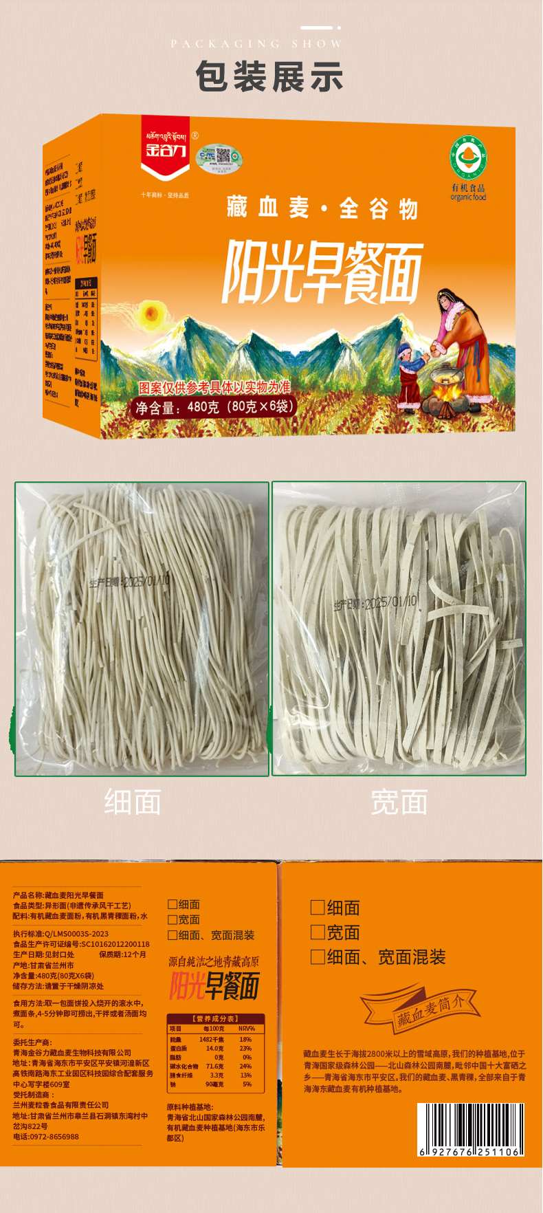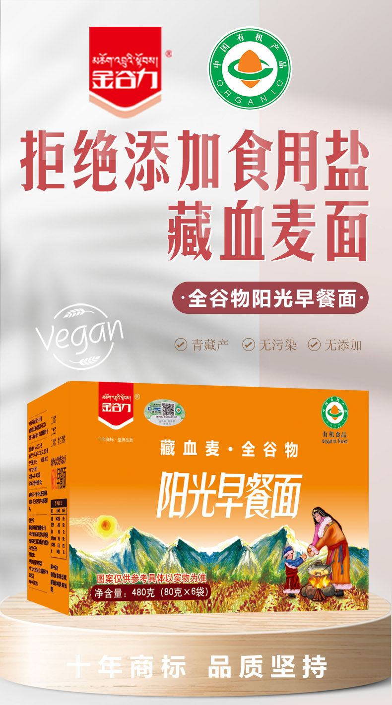 藏血麦阳光早餐面条纯素汤面凉拌 480克/盒【京东快递送货上门】