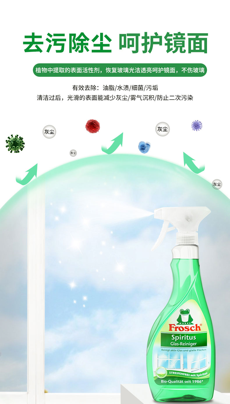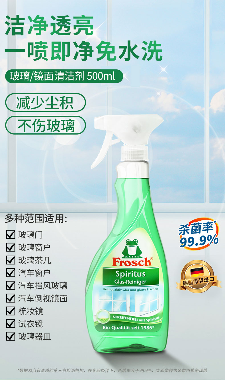 【德国进口 玻璃清洁剂】玻璃/镜面专业清洁喷剂 500ml 一喷即净免水洗