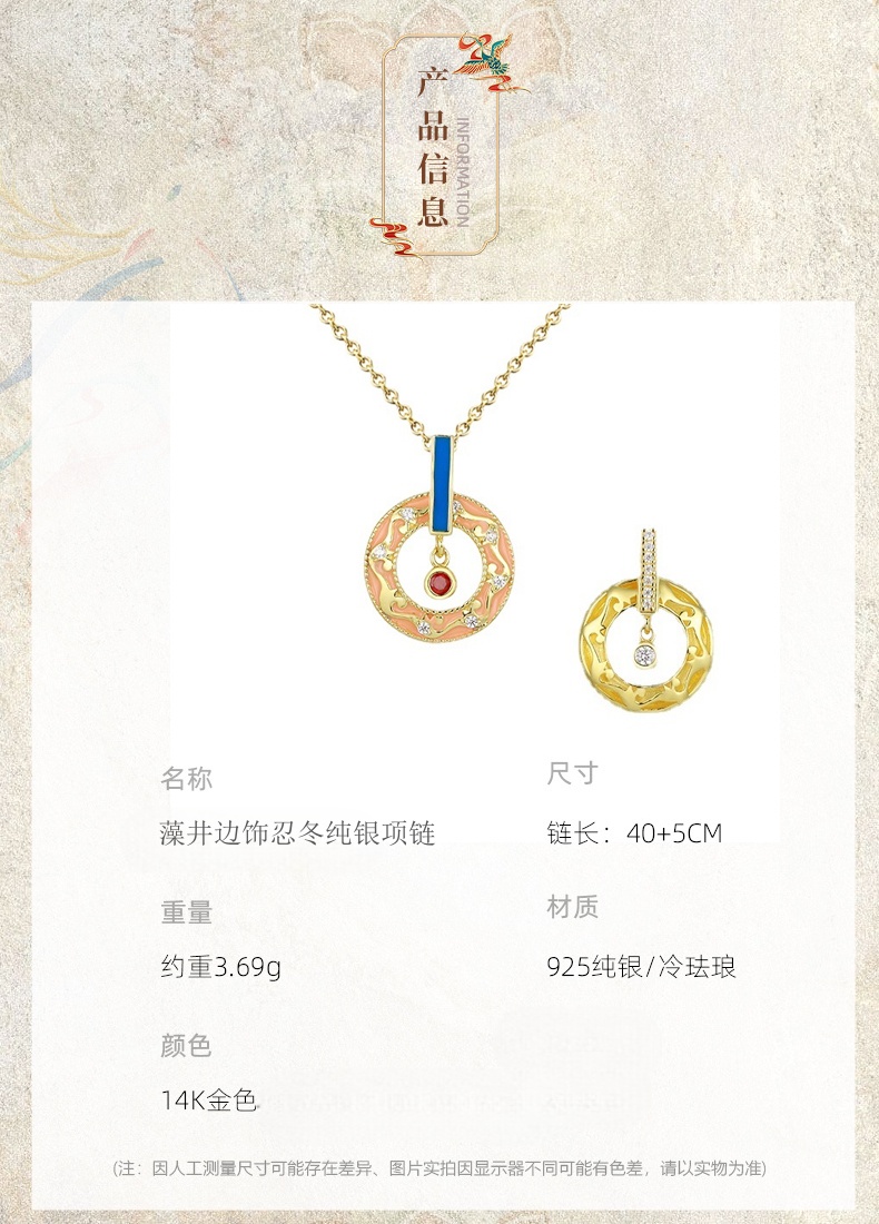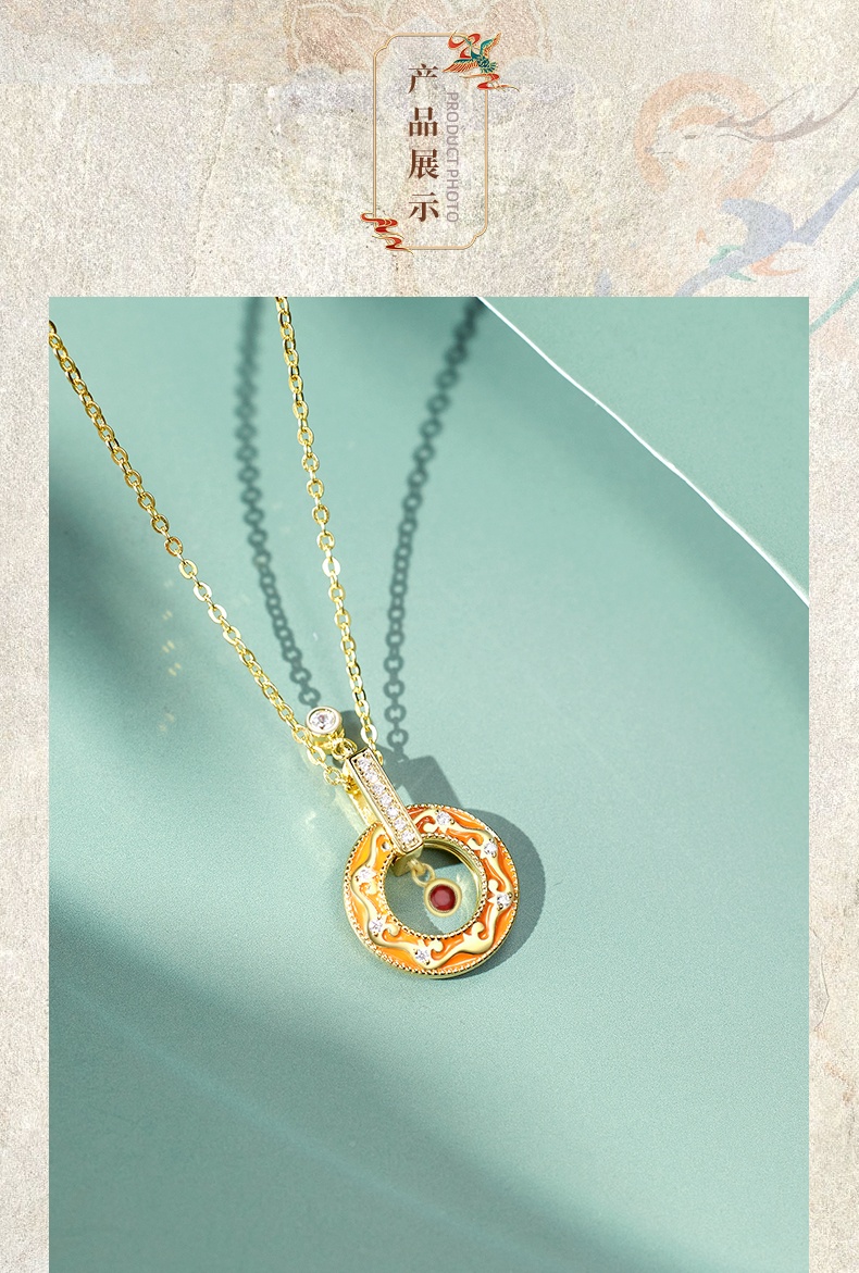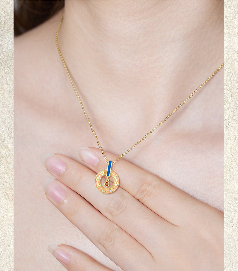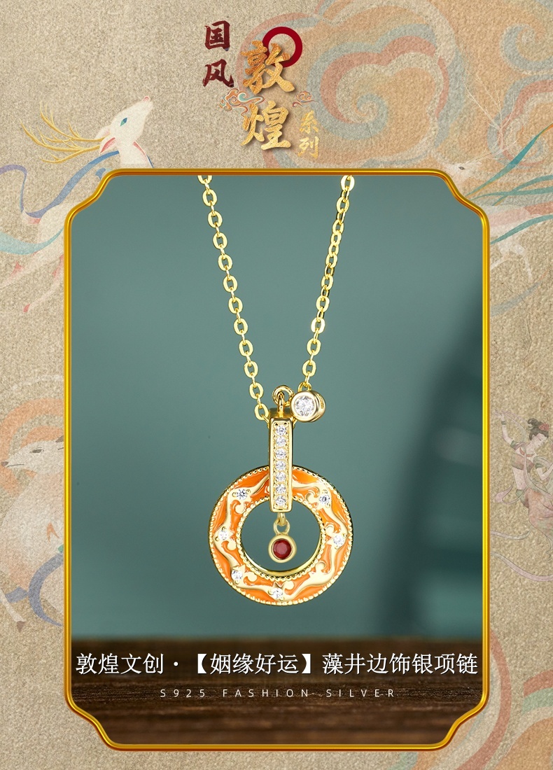 敦煌文创 藻井边饰纯银项链(双面)