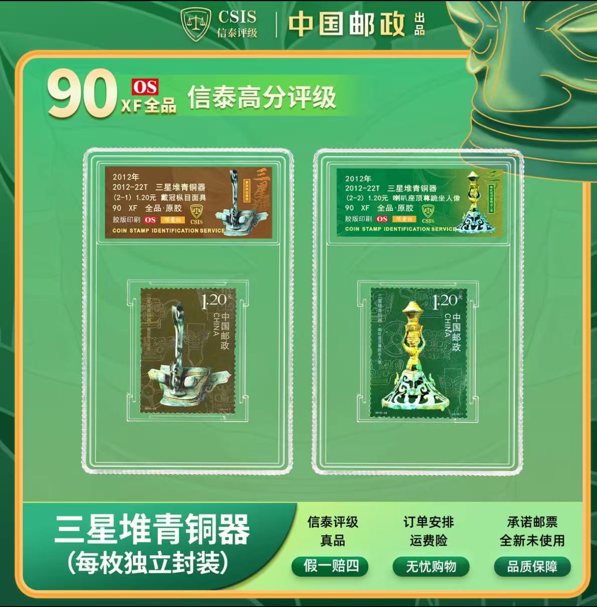 2012年2012-22T三星堆青铜器 套票 (一套2枚)封装评级90分
