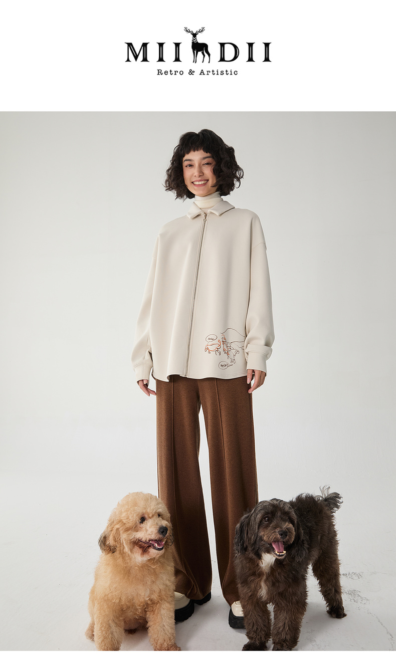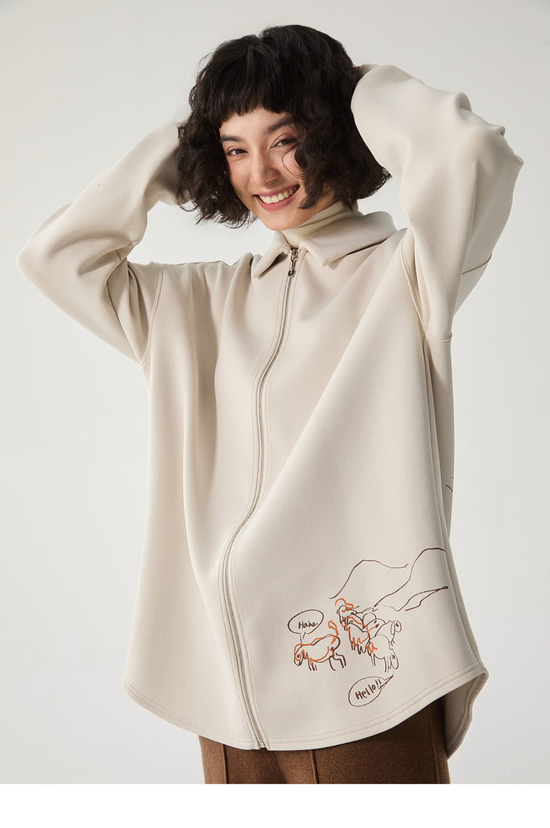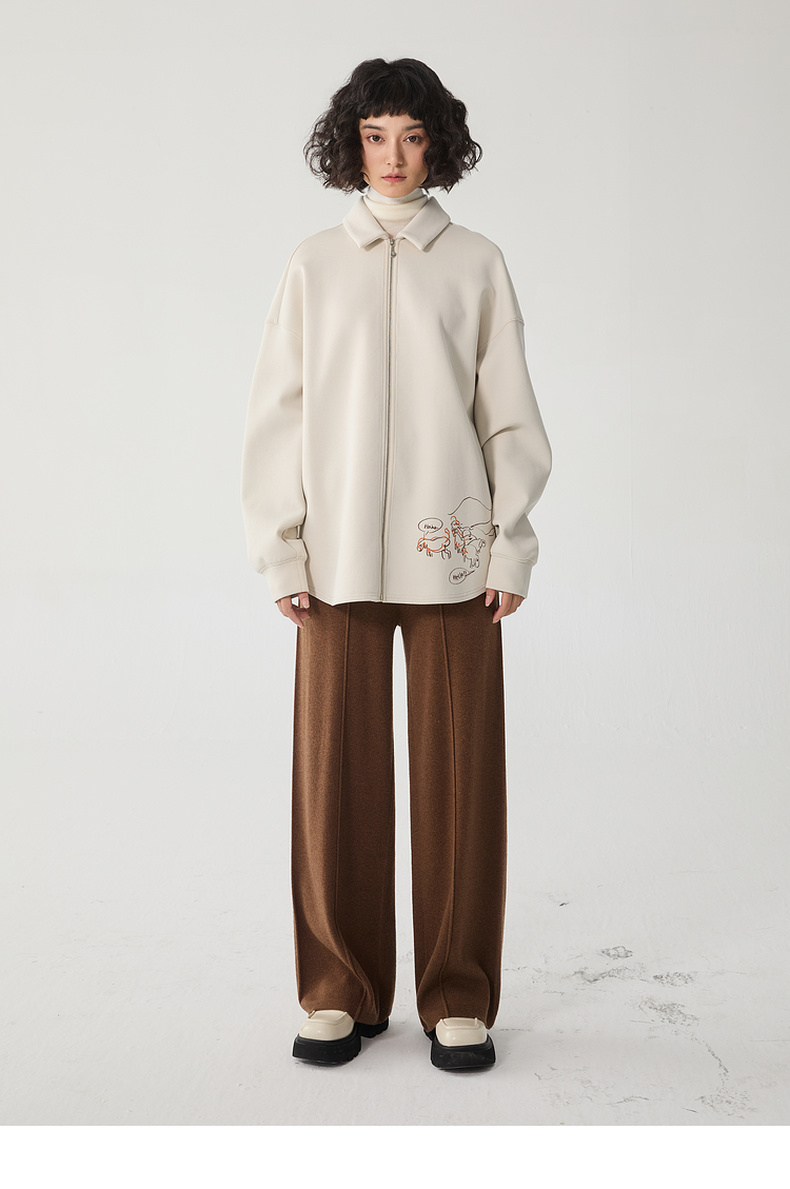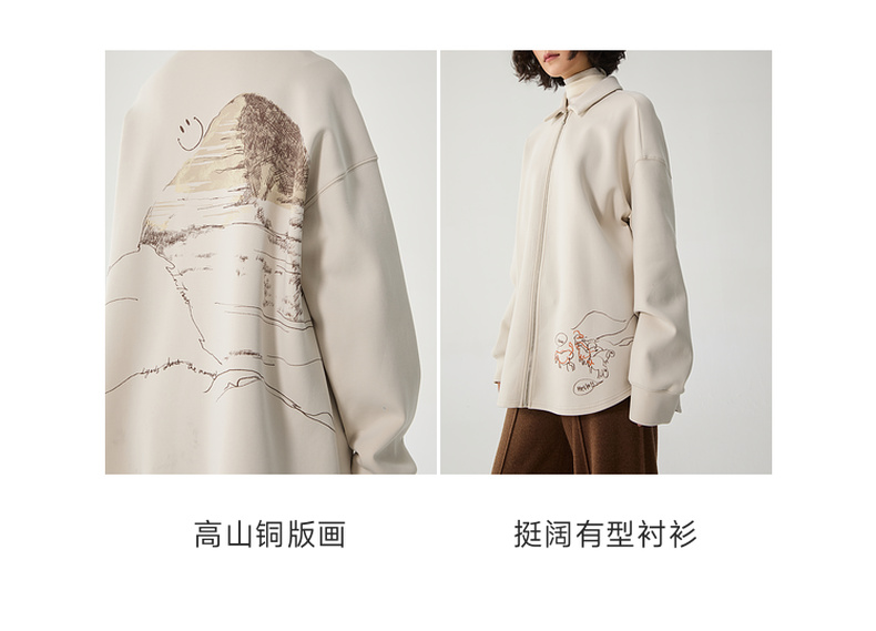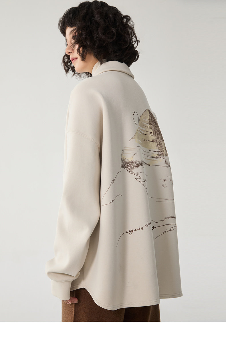 谜底大廓形衬衫长袖女2024冬新品BF风宽松后背印花衬衣244MC1664
