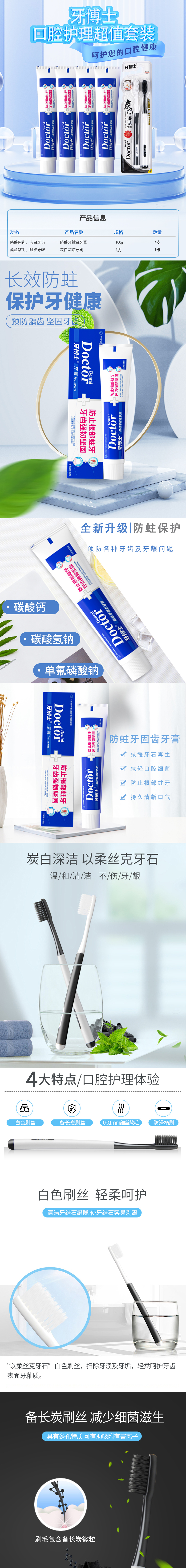 牙博士防蛀牙固齿牙膏160g*4支+送2支牙刷 WY