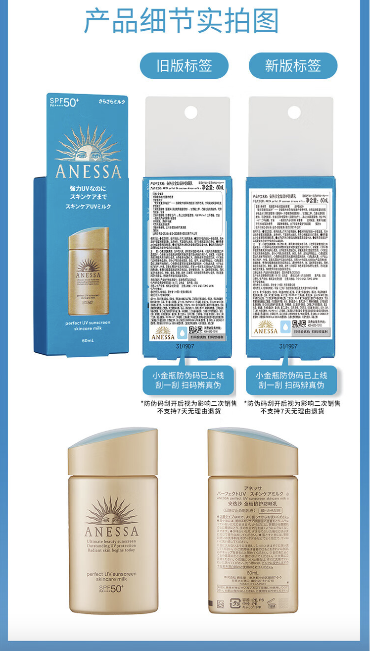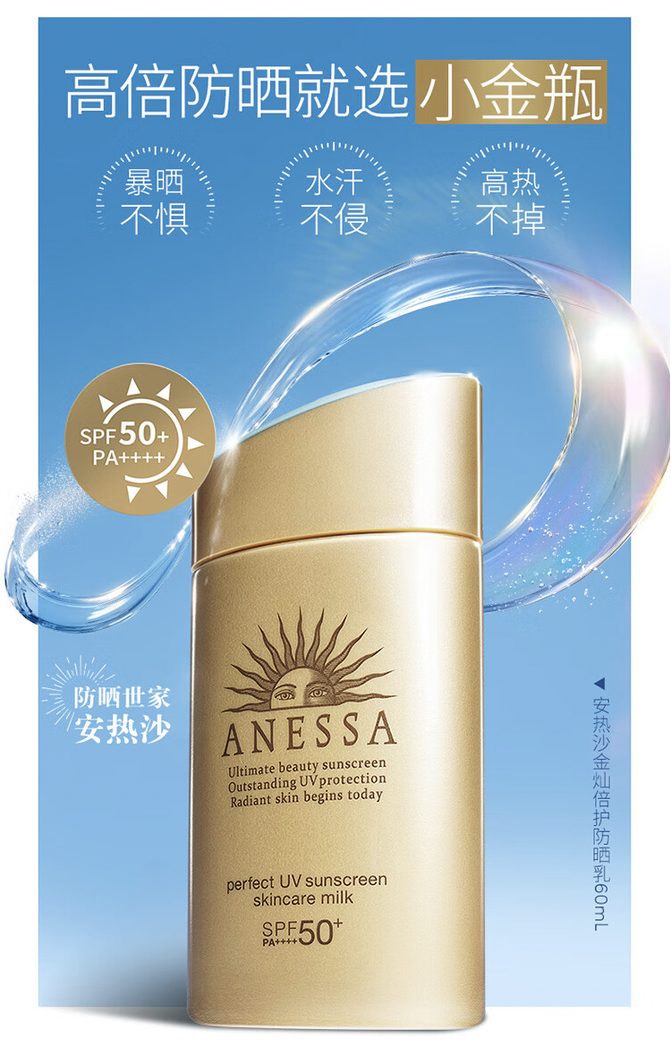 安热沙(Anessa)金灿倍护防晒乳60mL小金瓶安耐晒高倍防晒防水防汗