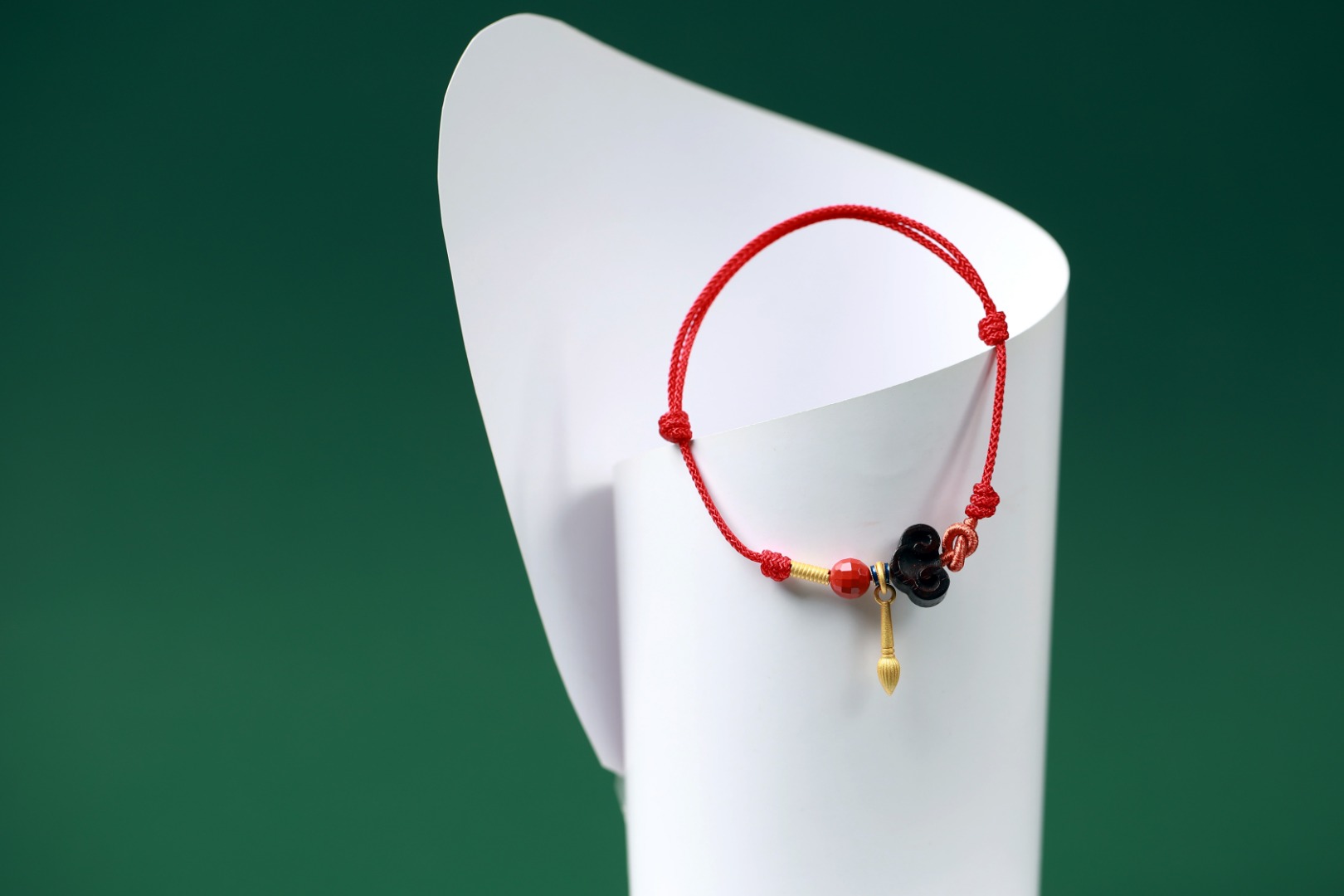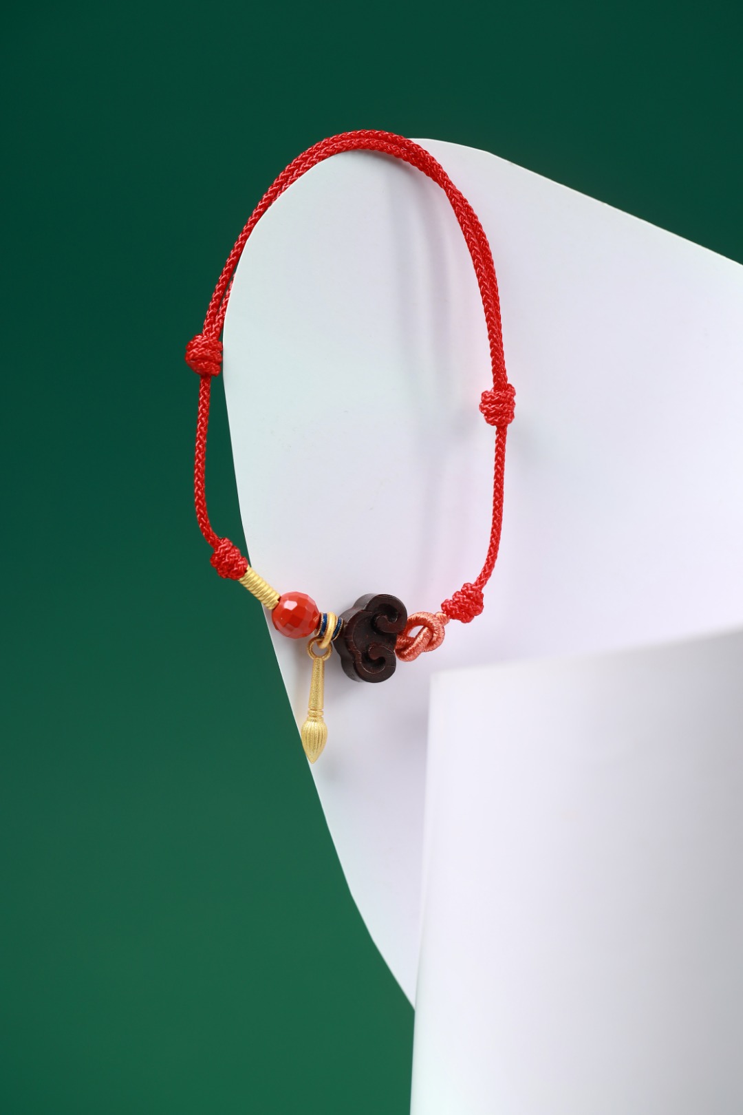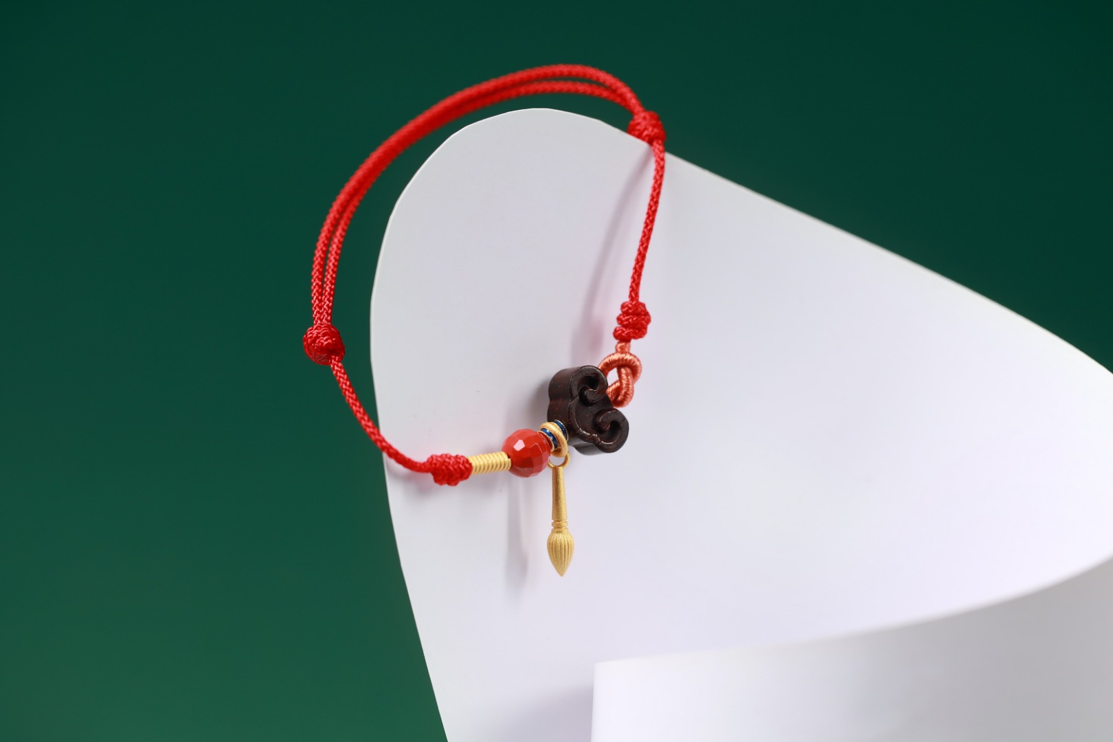 朱砂切面珠/紫檀四种云/烧蓝隔珠/银镀24K:文昌笔/小长柱
