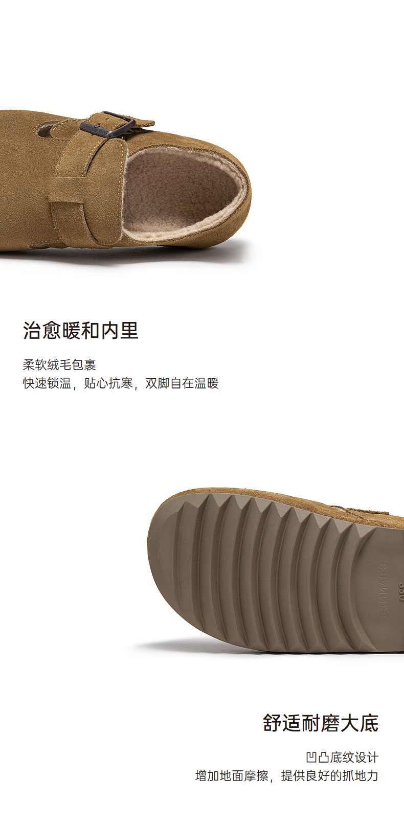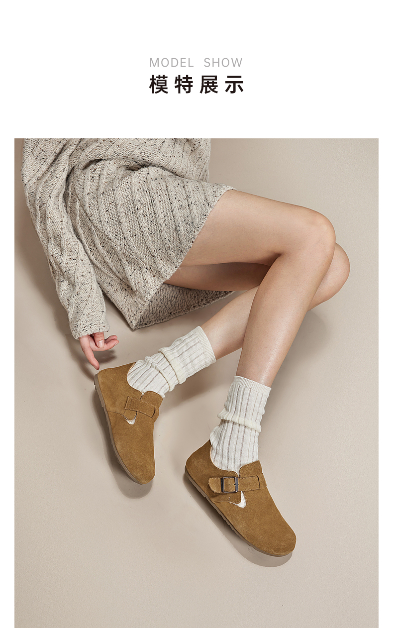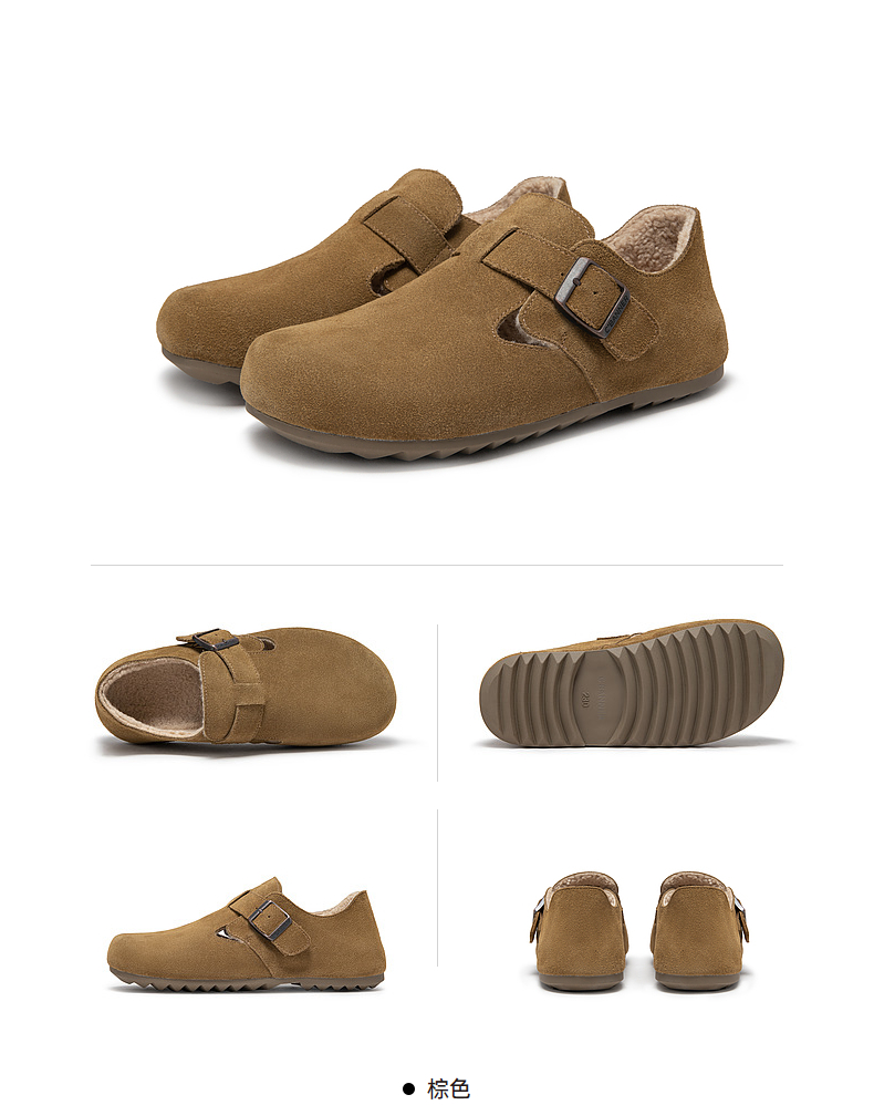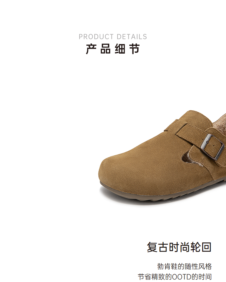 千百度时尚加绒全包勃肯鞋女款冬季内增高半拖鞋贝果系列雪地靴A24637005