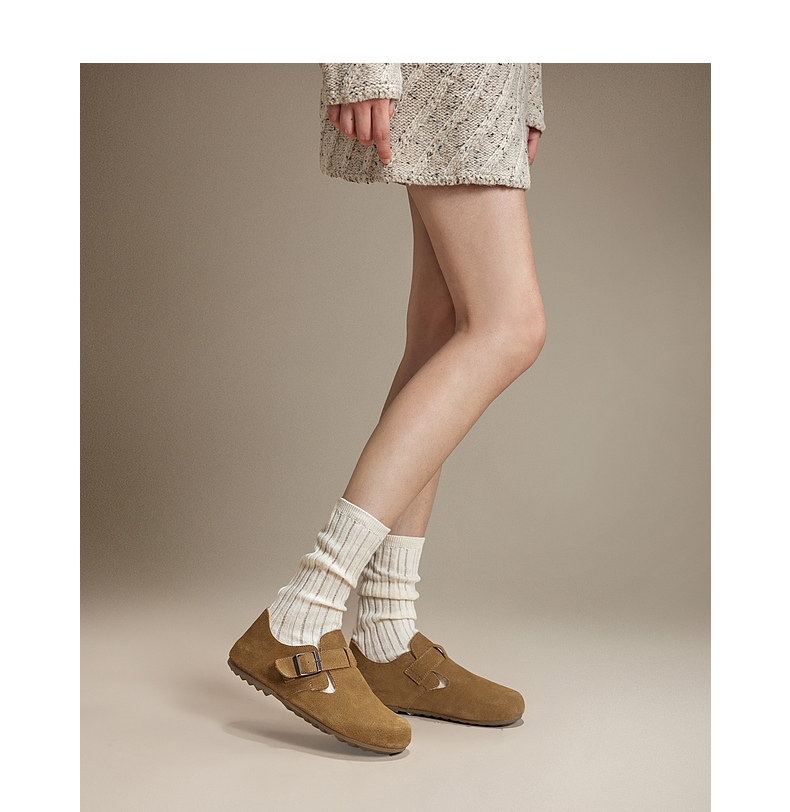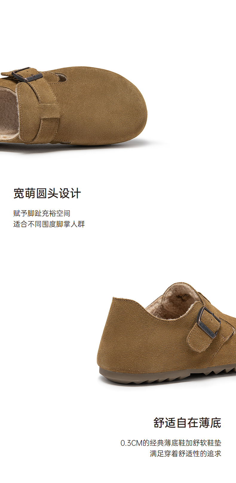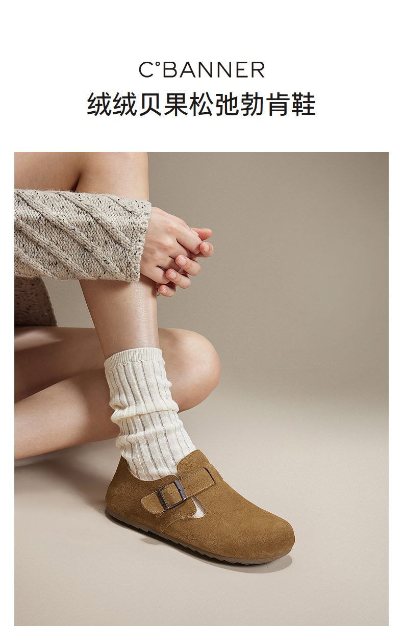 千百度时尚加绒全包勃肯鞋女款冬季内增高半拖鞋贝果系列雪地靴A24637005