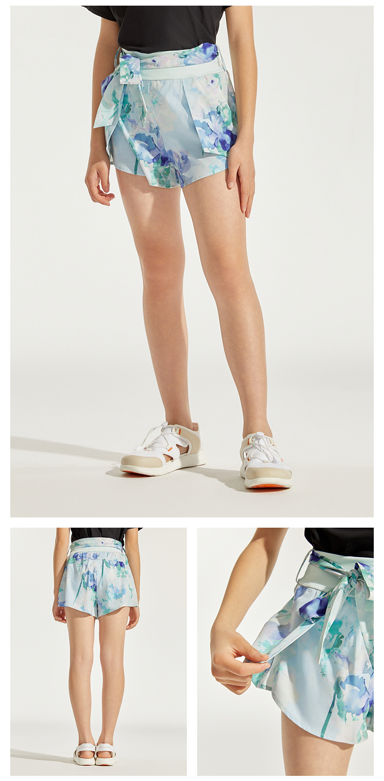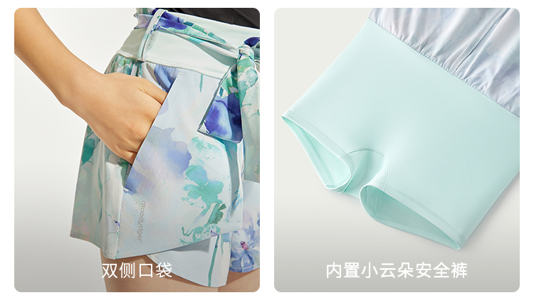 moodytiger女童运动裤24夏季新款个性印花宽松透气假两件裤子42211603【DR】