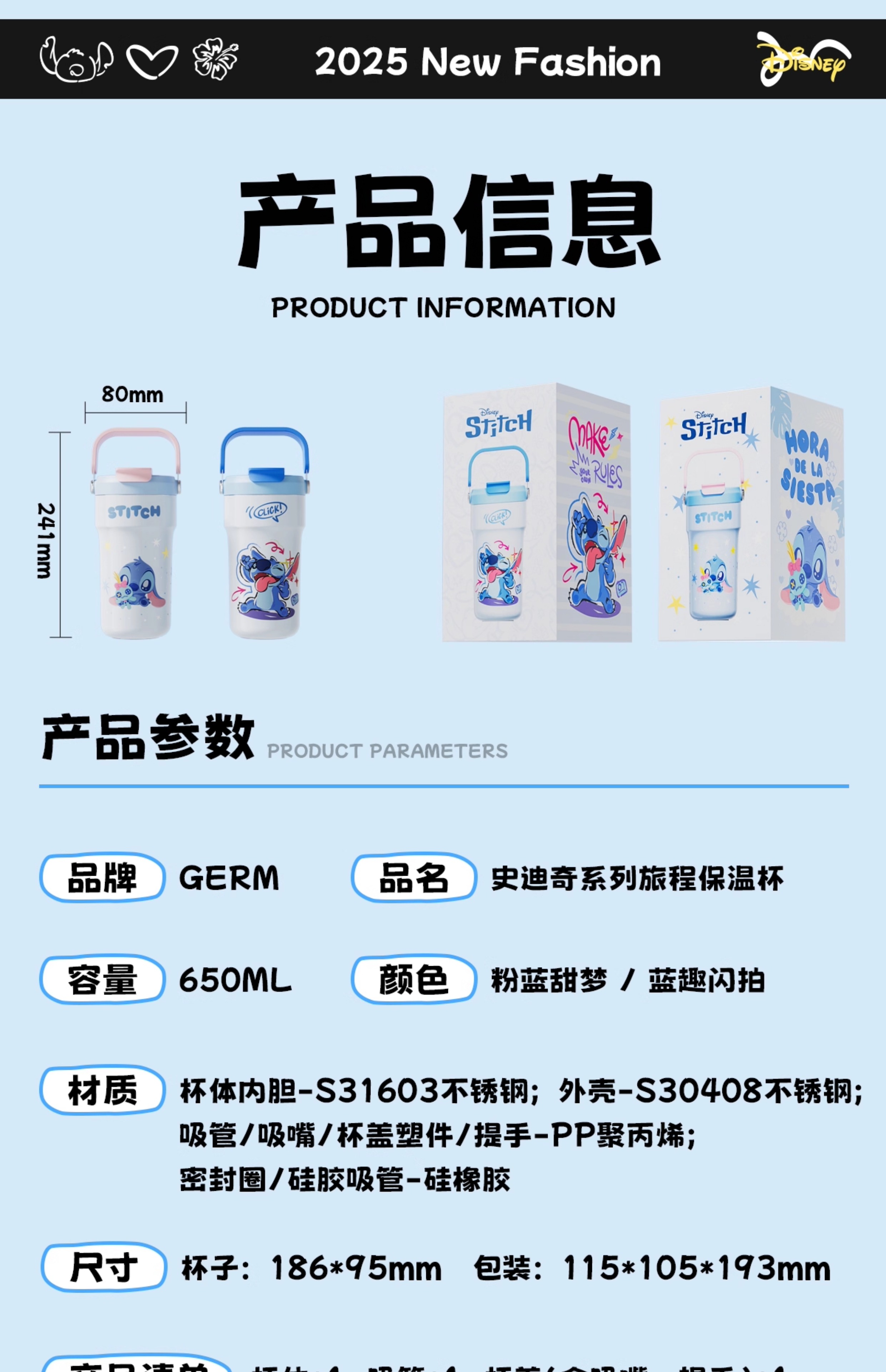GERM 格米史迪奇系列旅程保温杯 蓝趣闪拍650ml