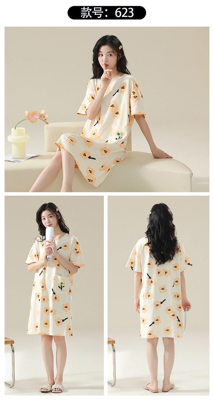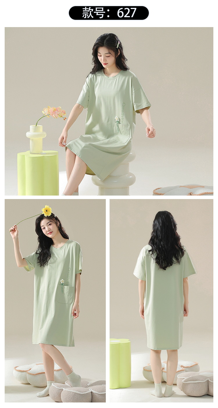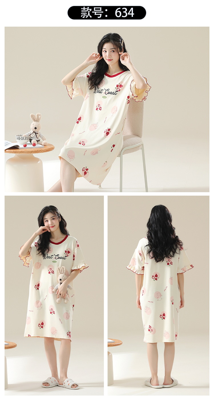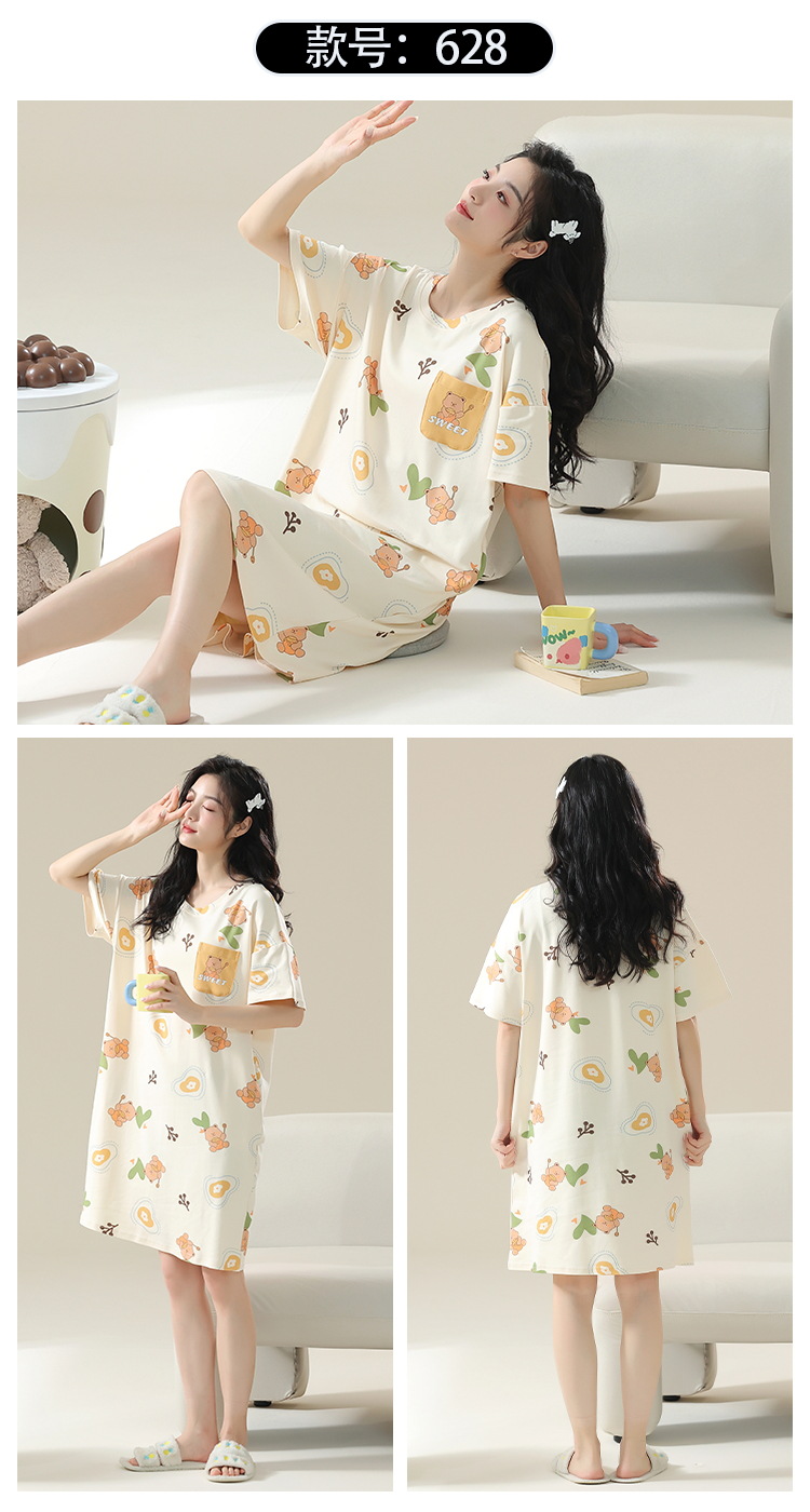 睡裙女夏季纯棉女士性感短袖孕妇春秋款清淡睡衣女款夏天2025新款