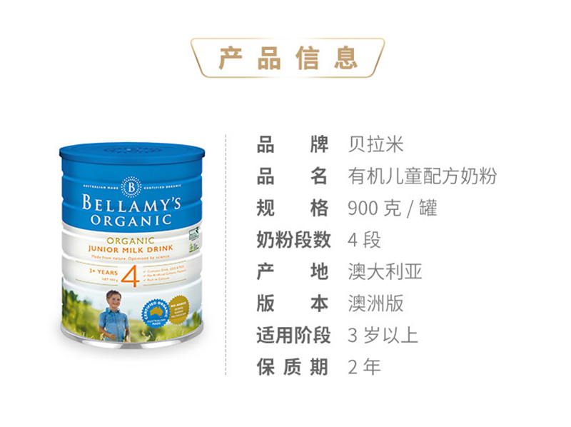 贝拉米Bellamy's 白金版婴幼儿配方奶粉系列