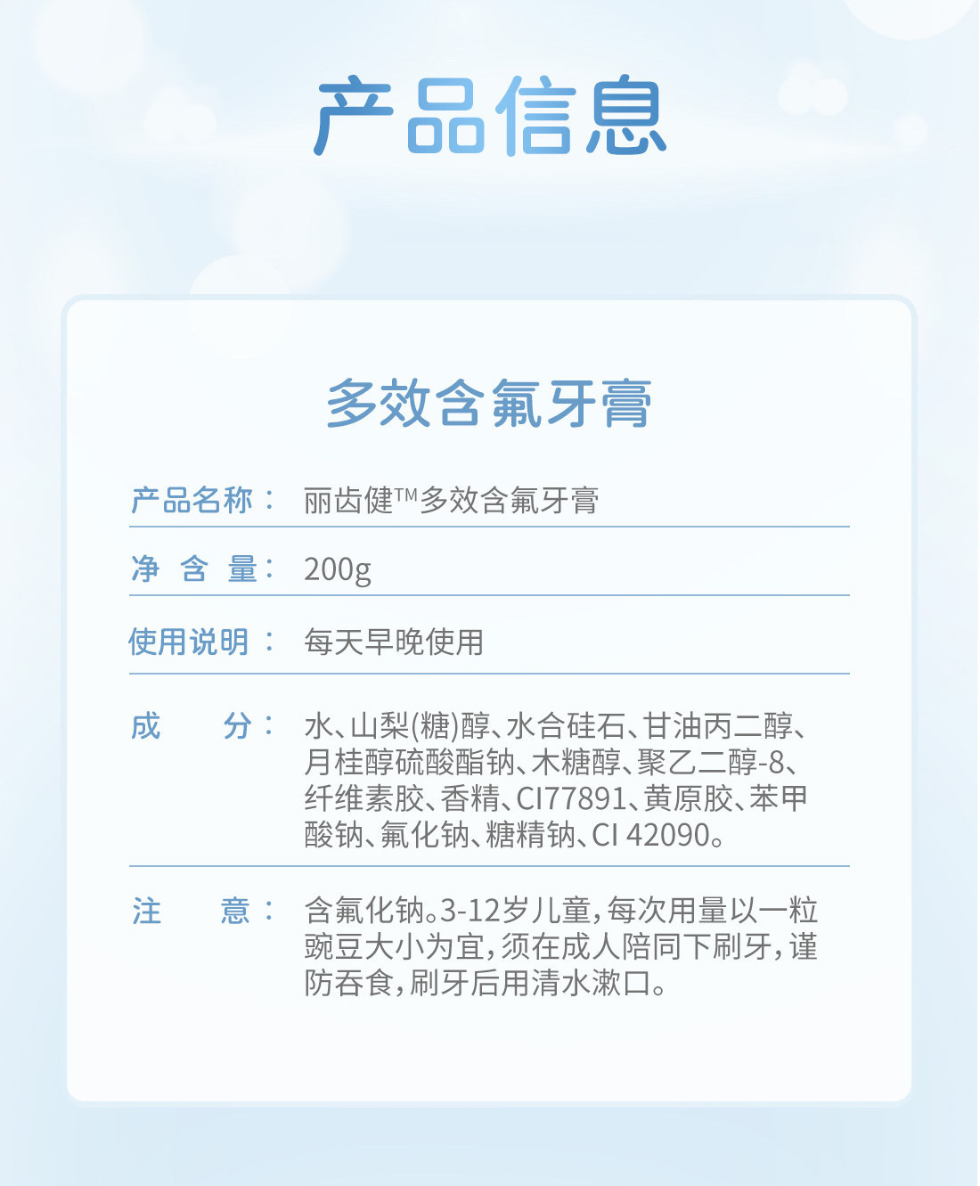 安利丽齿健多效含氟牙膏 200g[固齿防蛙小灯泡]