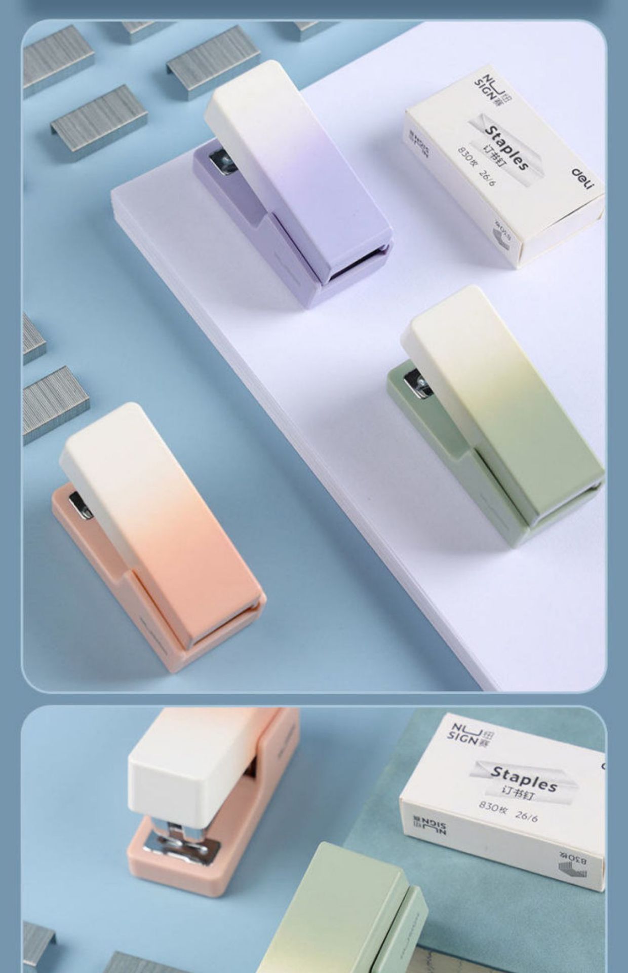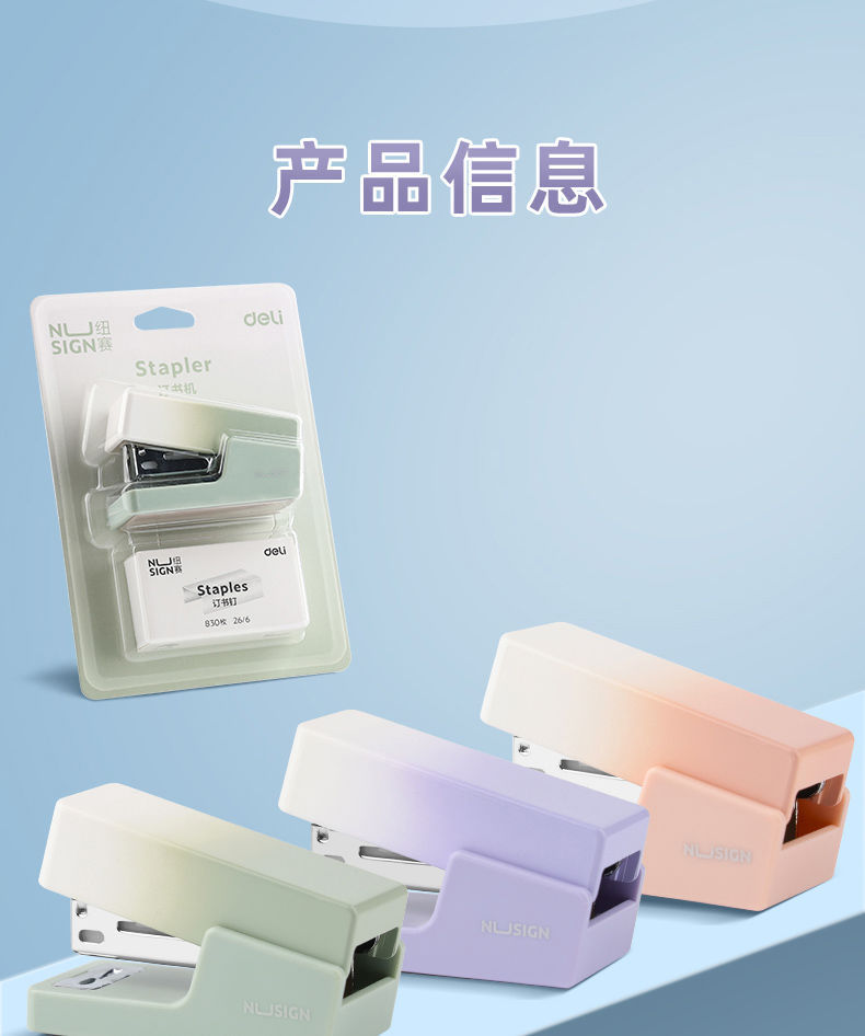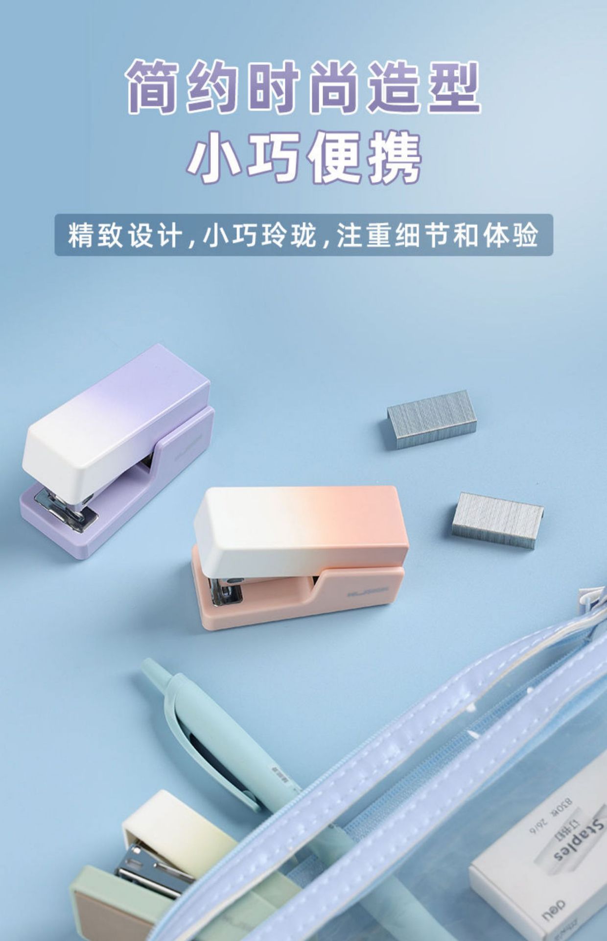 得力系列【小巧便携!得力迷你订书机】便携式小型学生新款马卡龙色高颜值办公神器高中生,TPE防滑底垫,使用不易滑动。ry