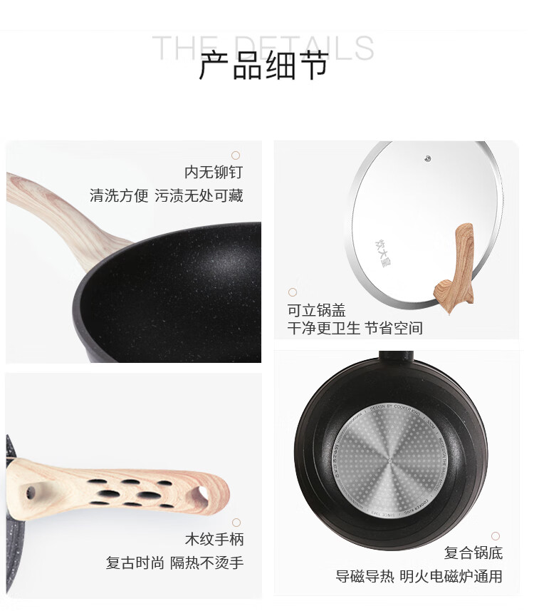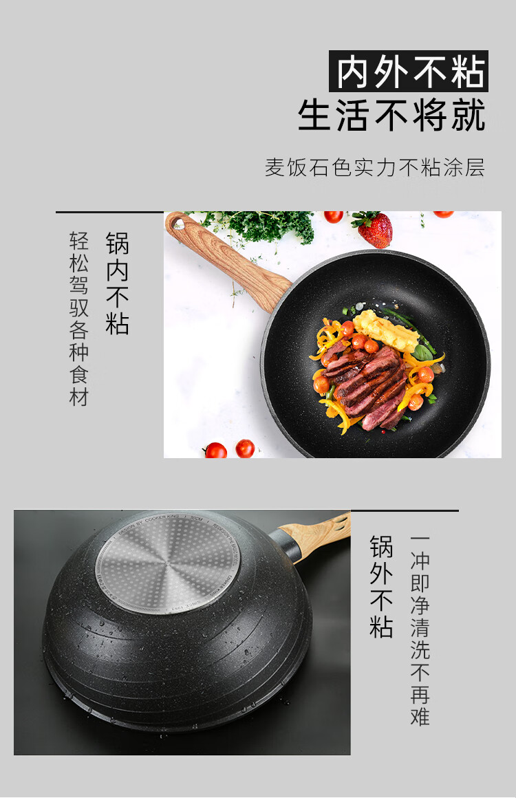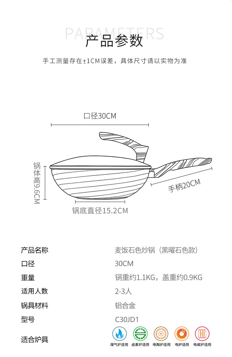 炊大皇 麦饭石炒锅30cm (黑曜石)C30JD1