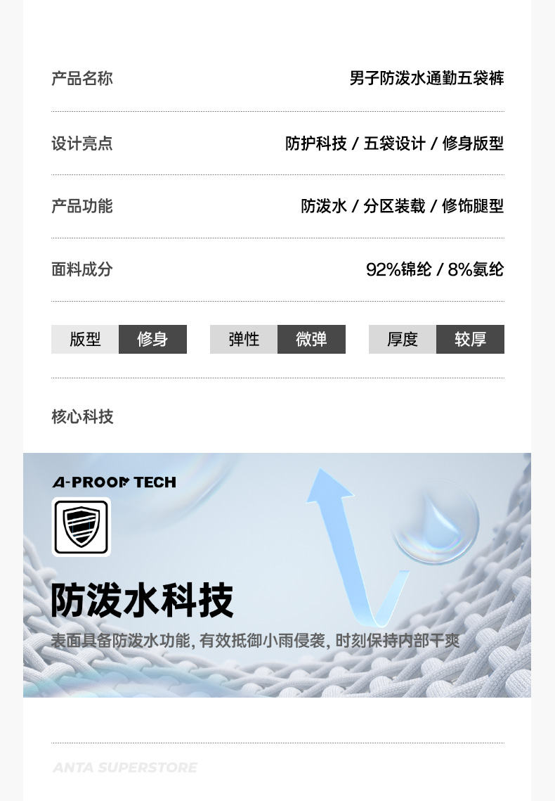超级安踏男子防泼水五袋通勤裤秋冬商务休闲裤运动长裤152548504U