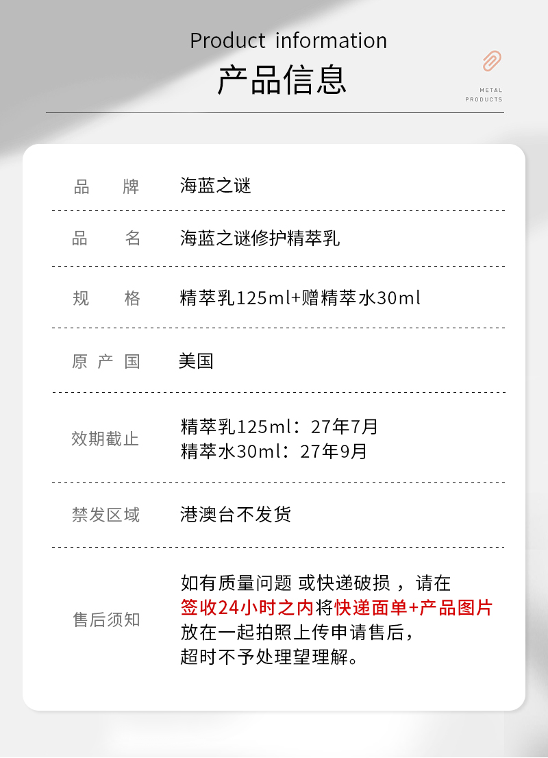 【LAMER/海蓝之谜】海蓝之谜精萃水、乳双重滋养(精萃乳125ml+精萃水30ml)(下单后72h发货)