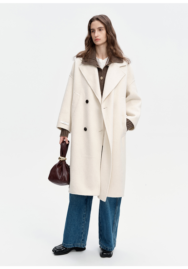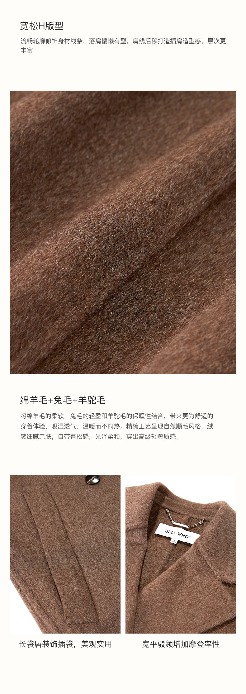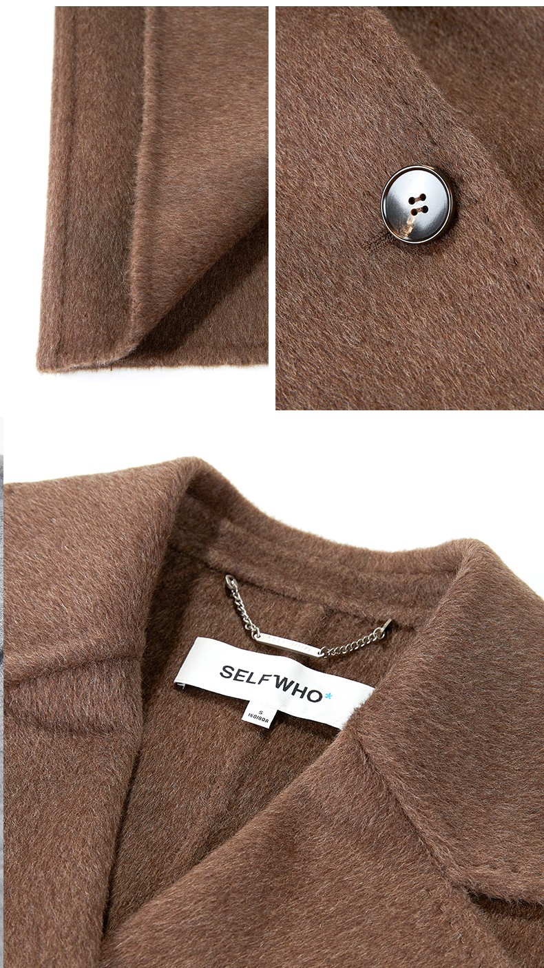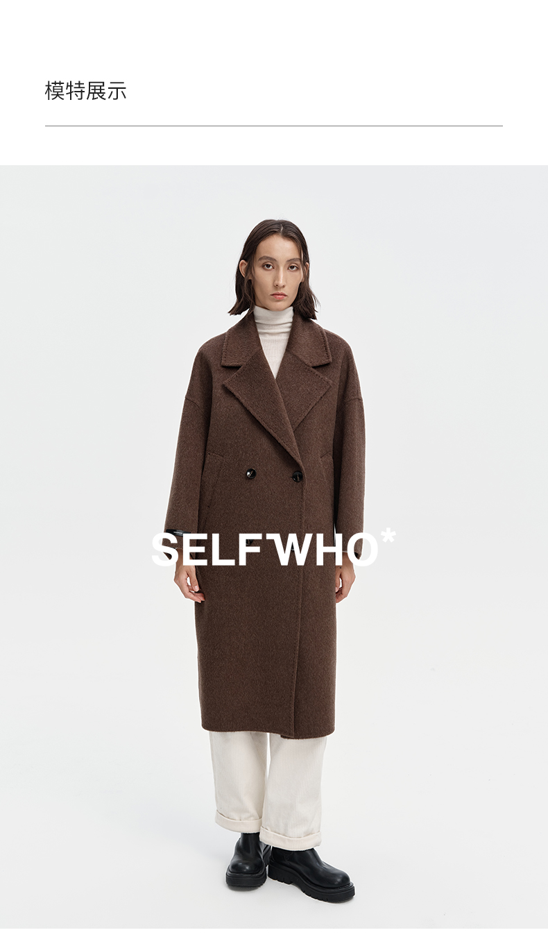 SELFWHO绵羊毛羊驼毛经典毛呢大衣2024新款高级宽松保暖长款外套