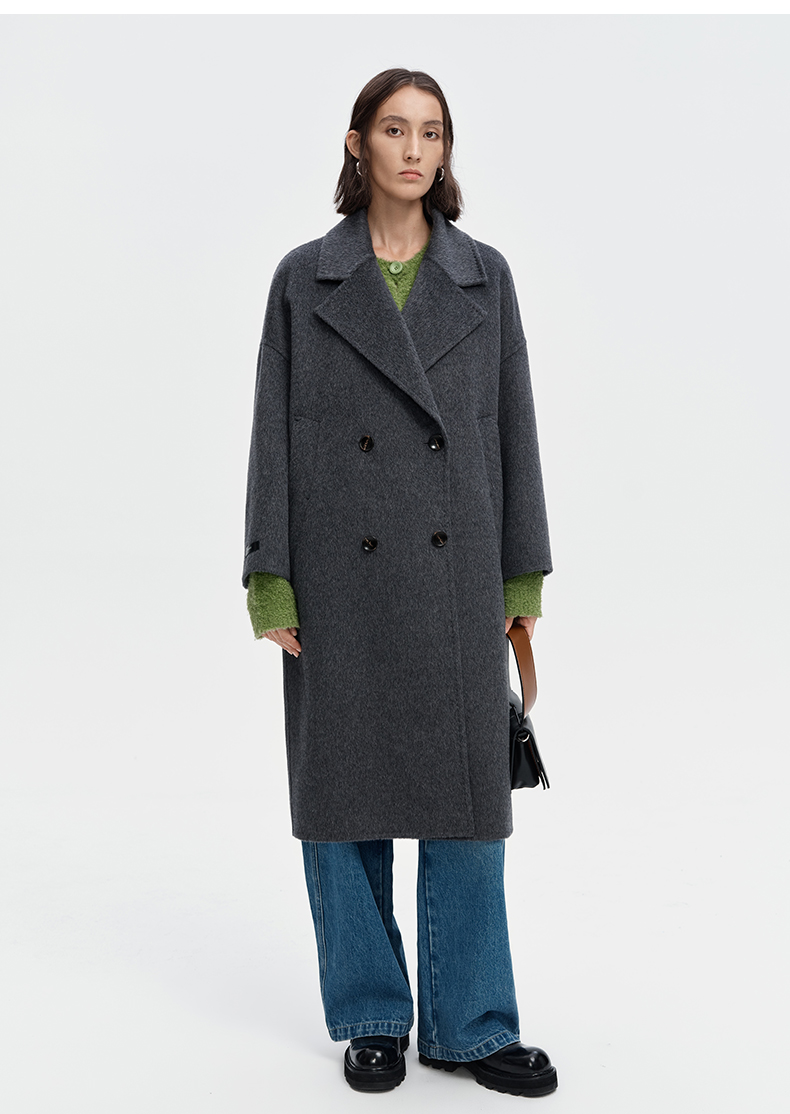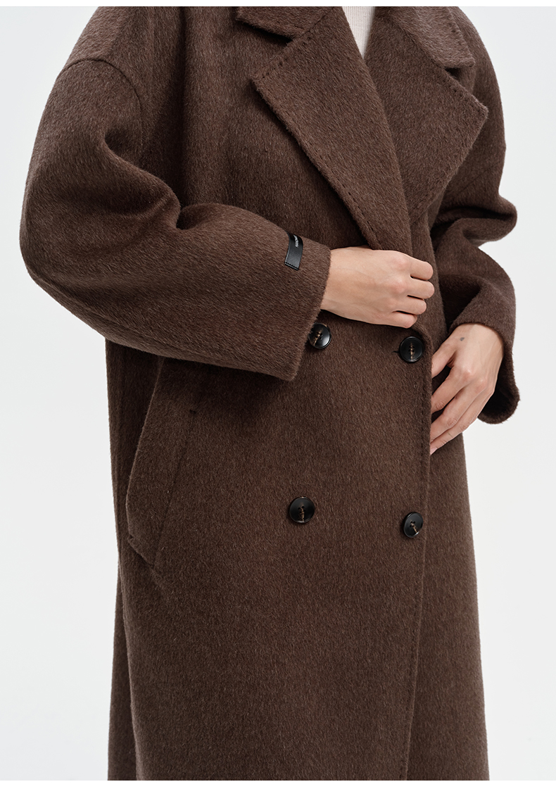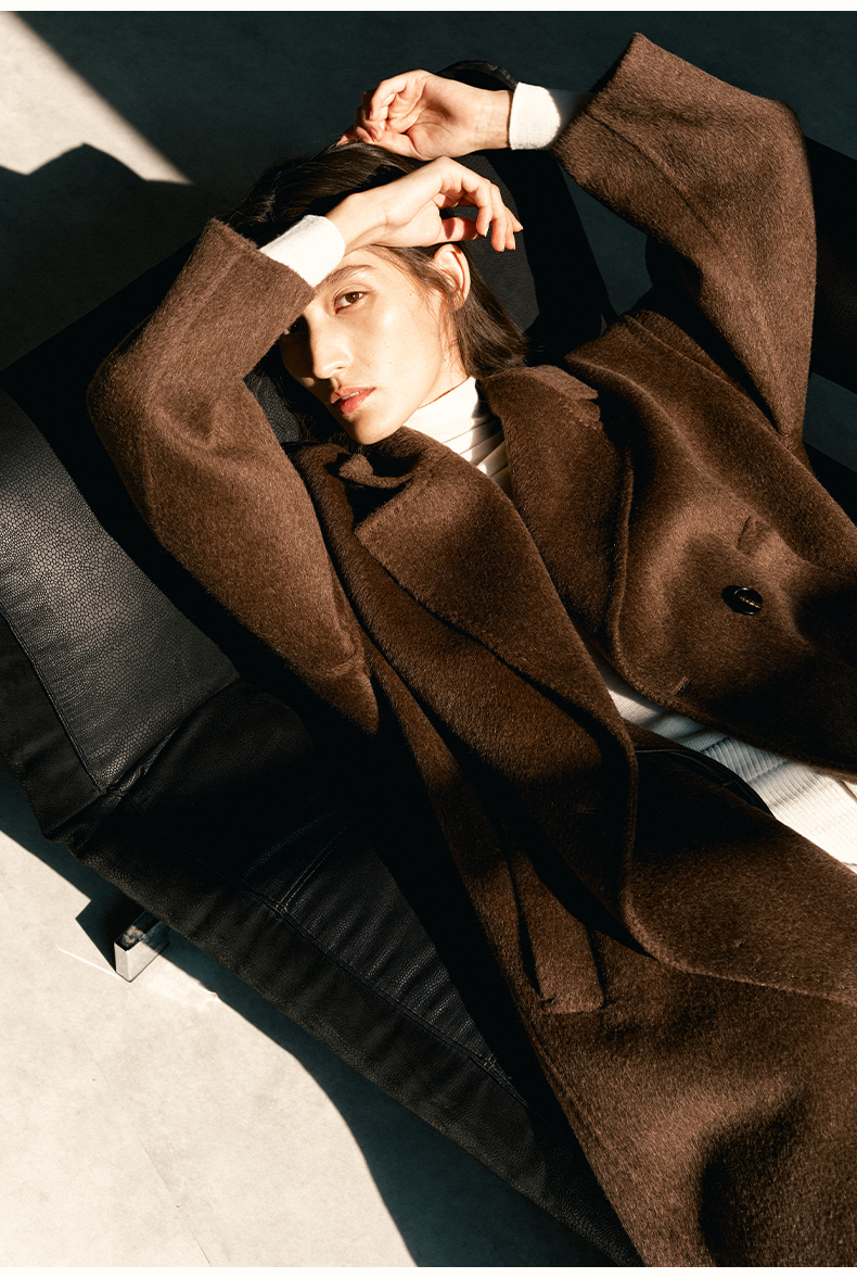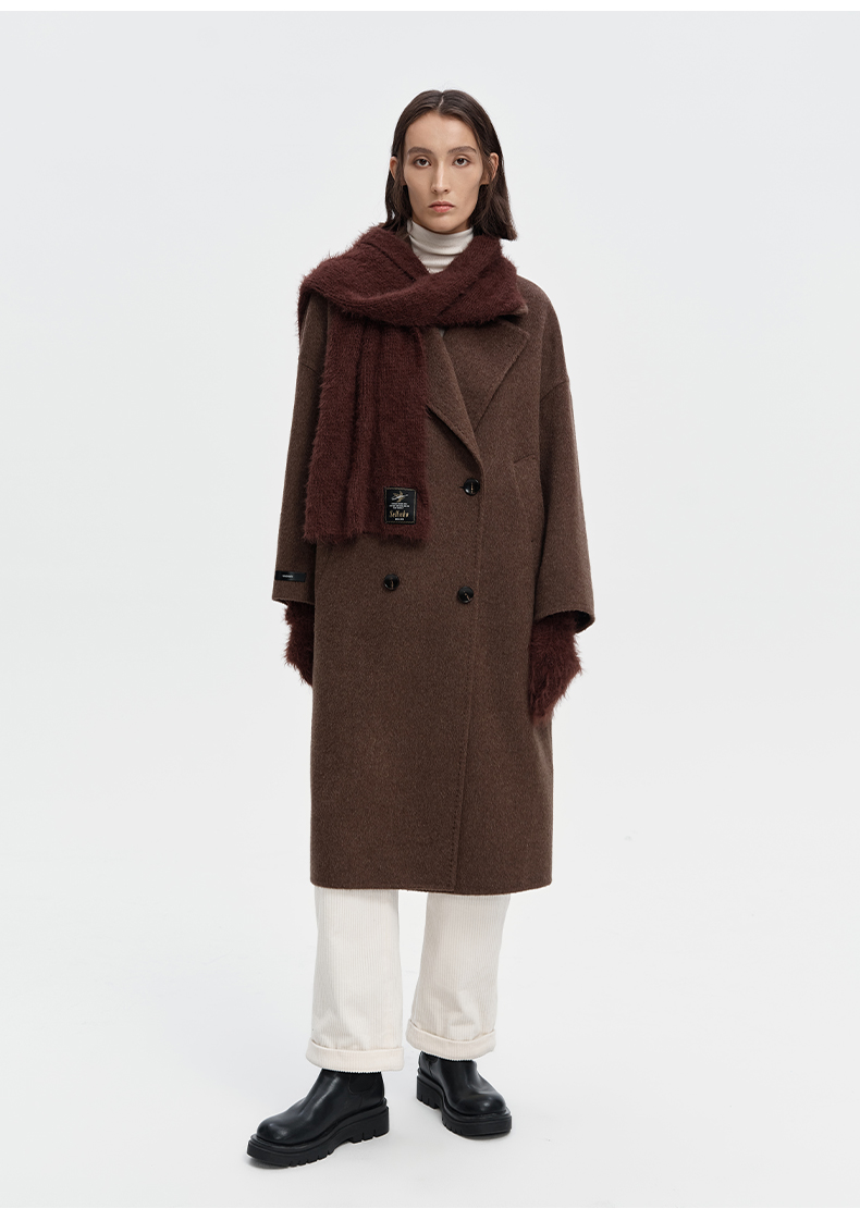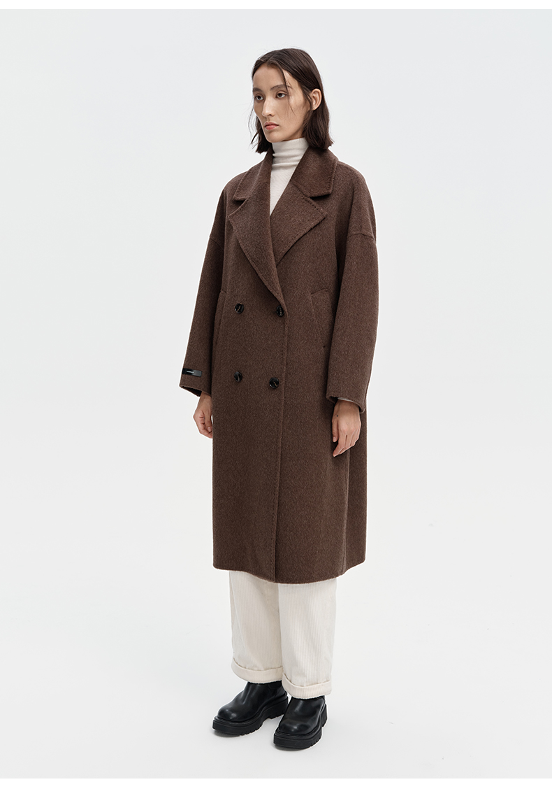 SELFWHO绵羊毛羊驼毛经典毛呢大衣2024新款高级宽松保暖长款外套