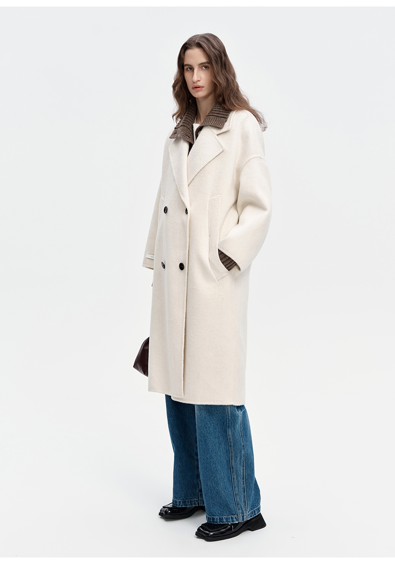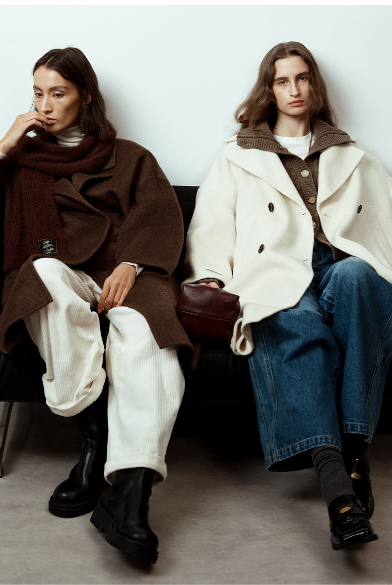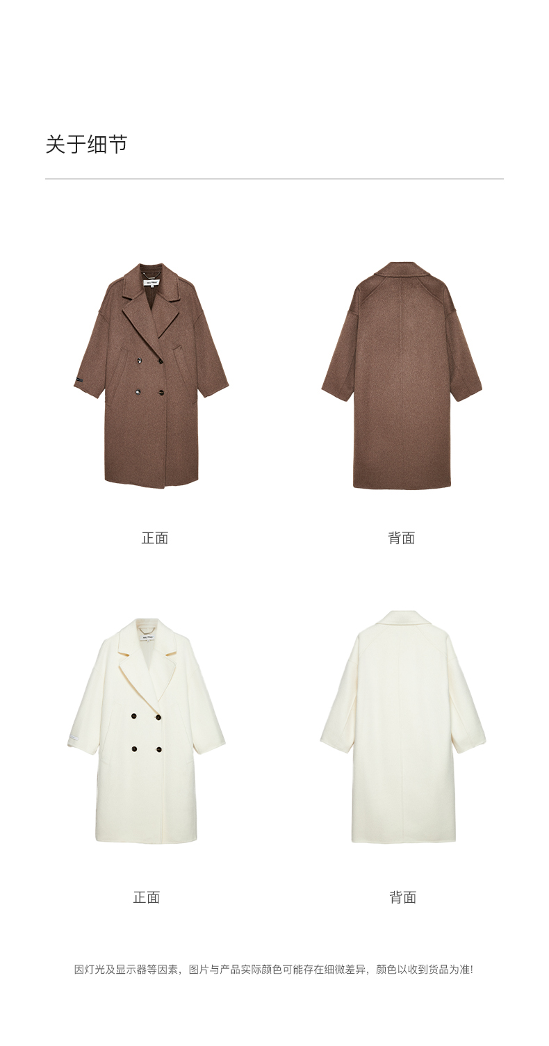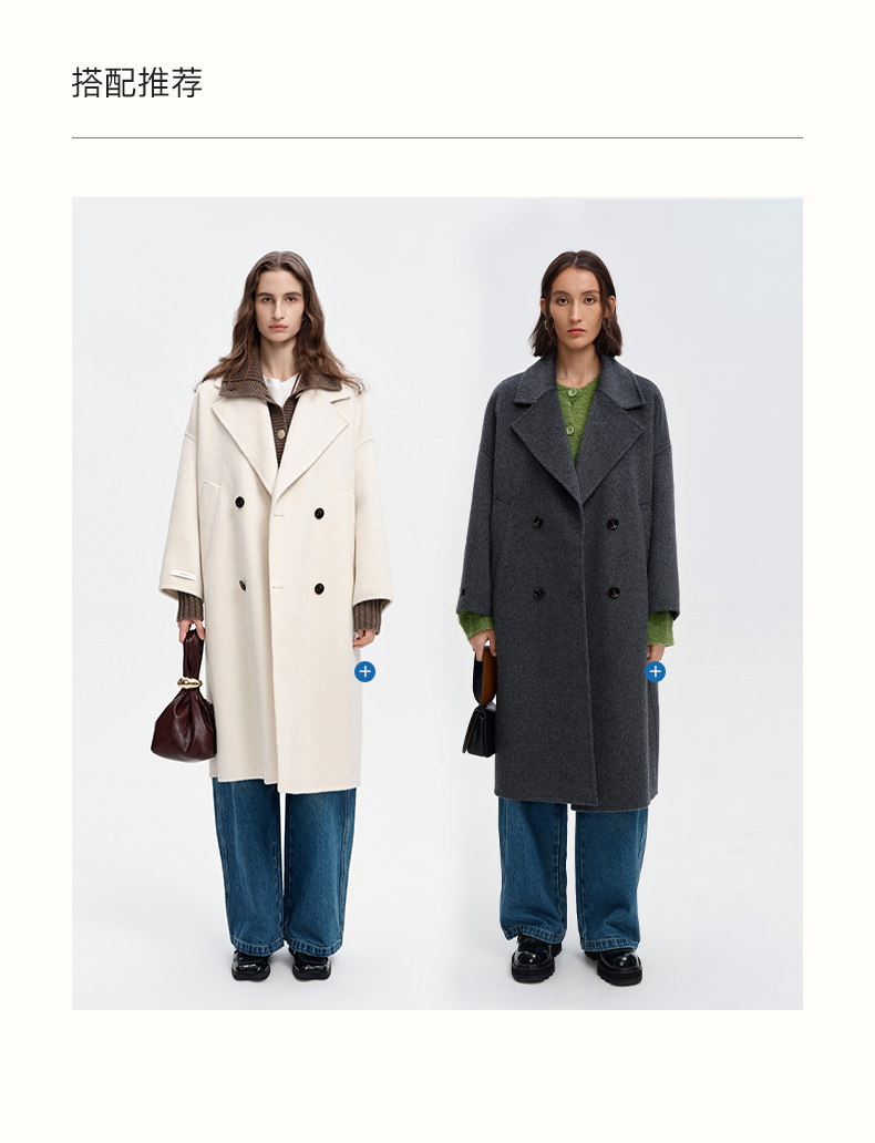 SELFWHO绵羊毛羊驼毛经典毛呢大衣2024新款高级宽松保暖长款外套