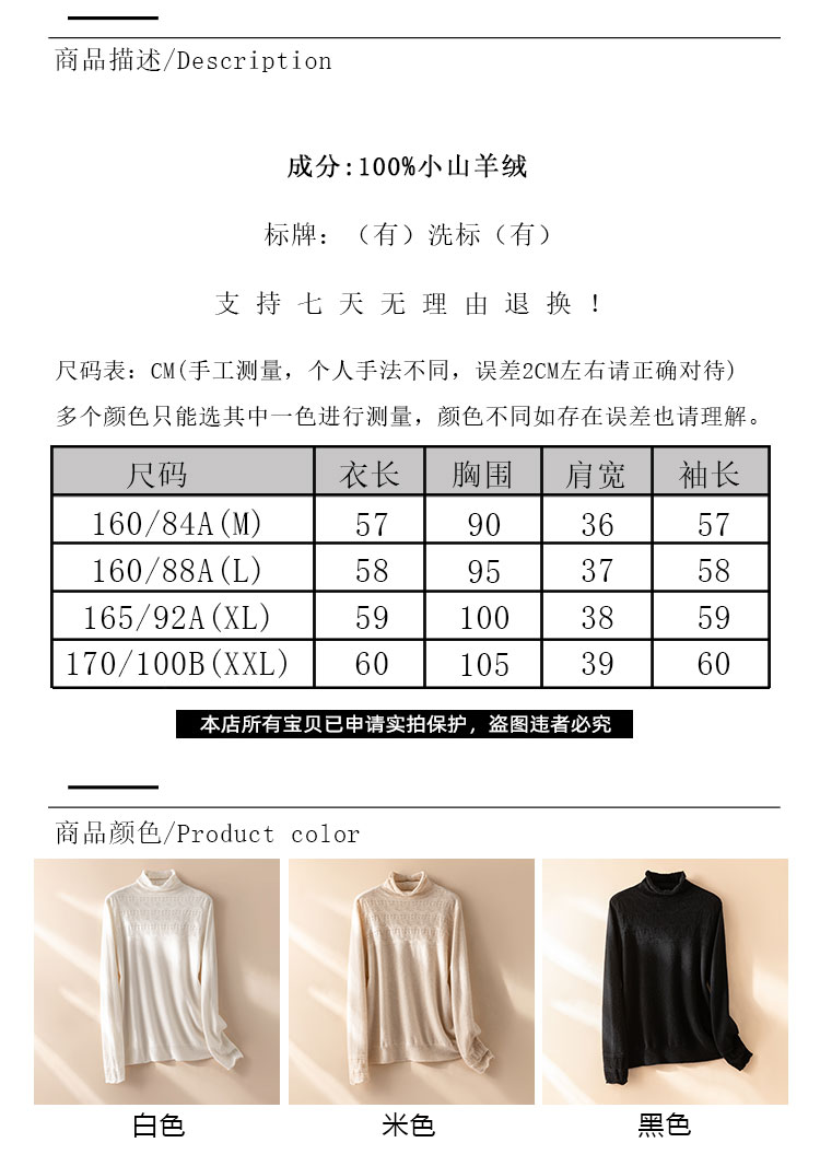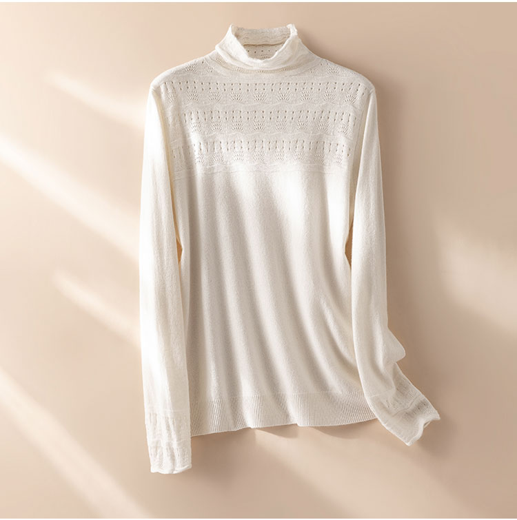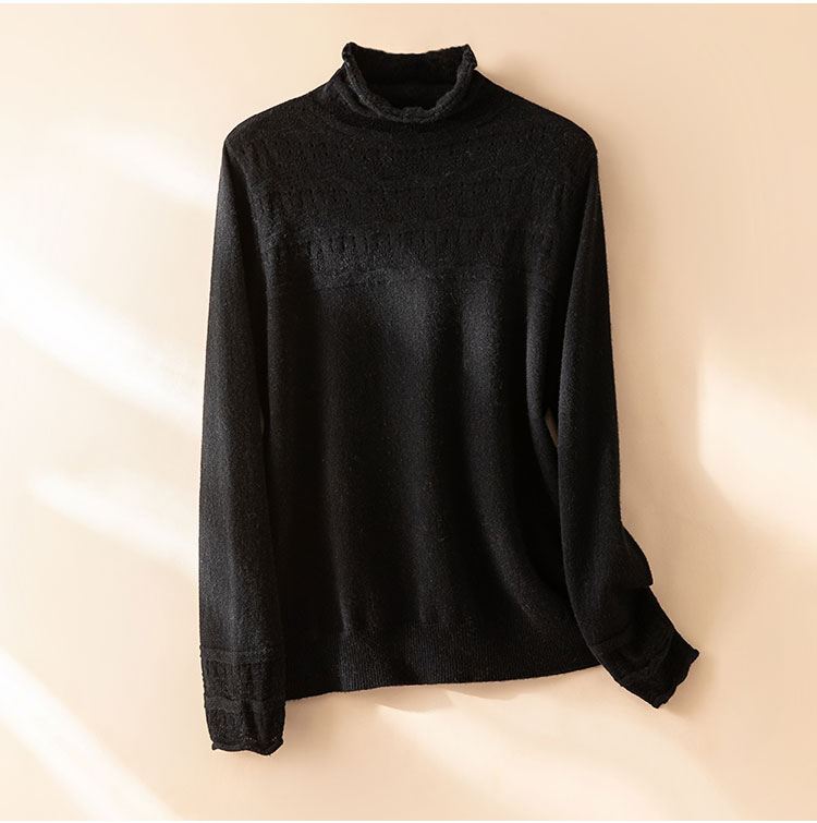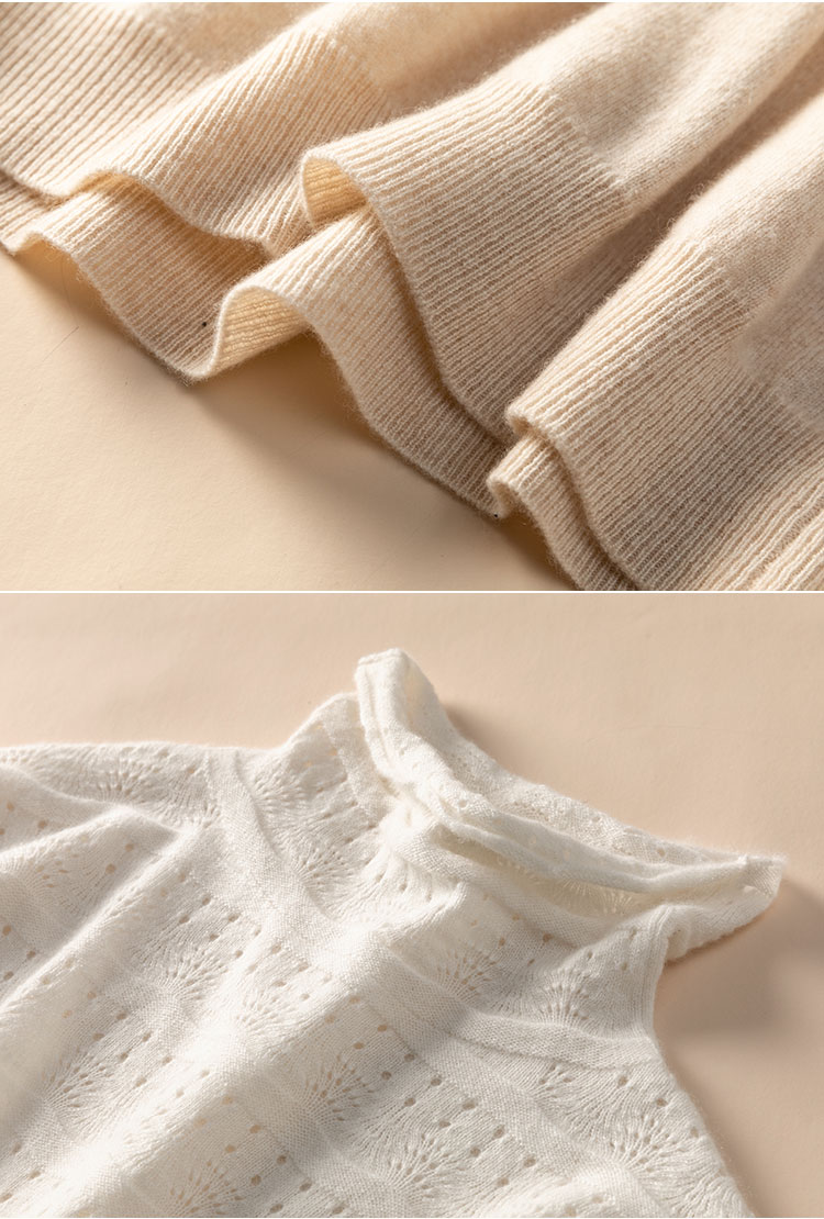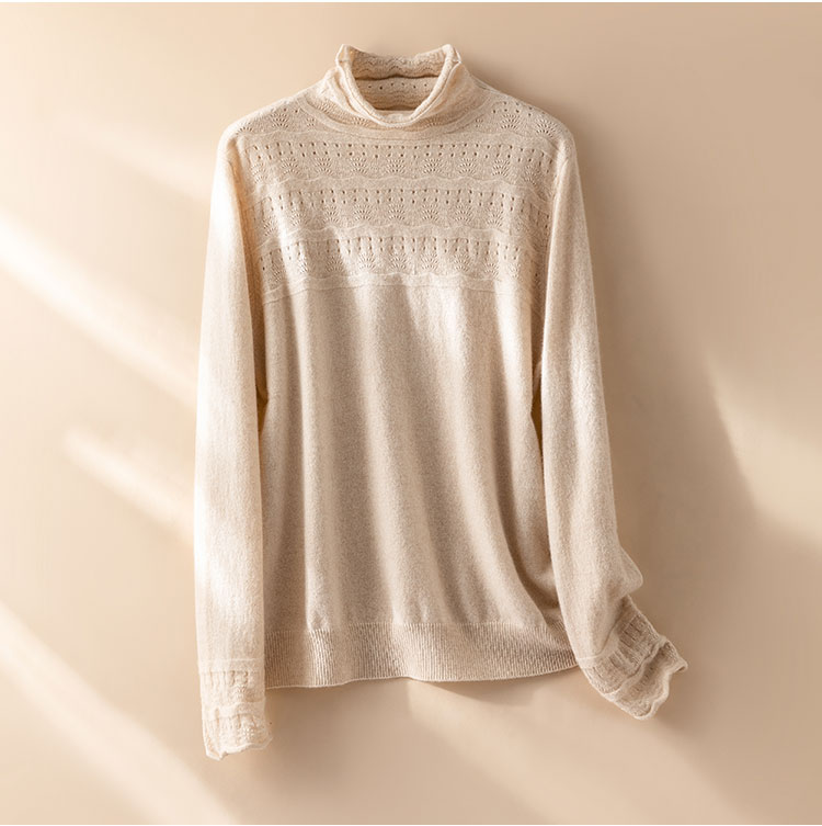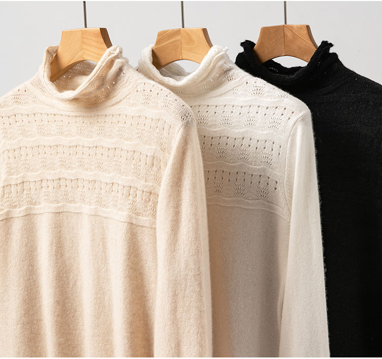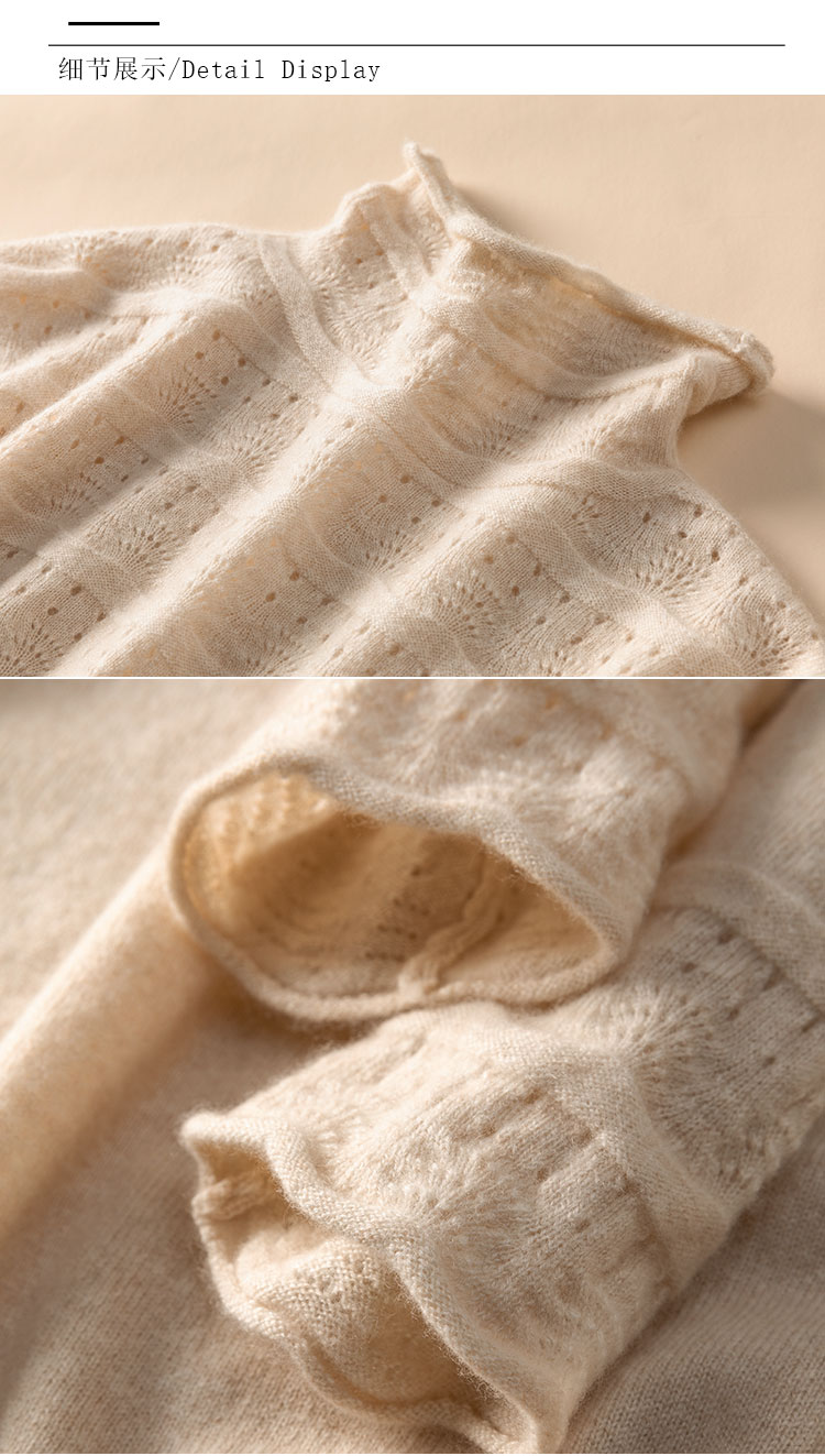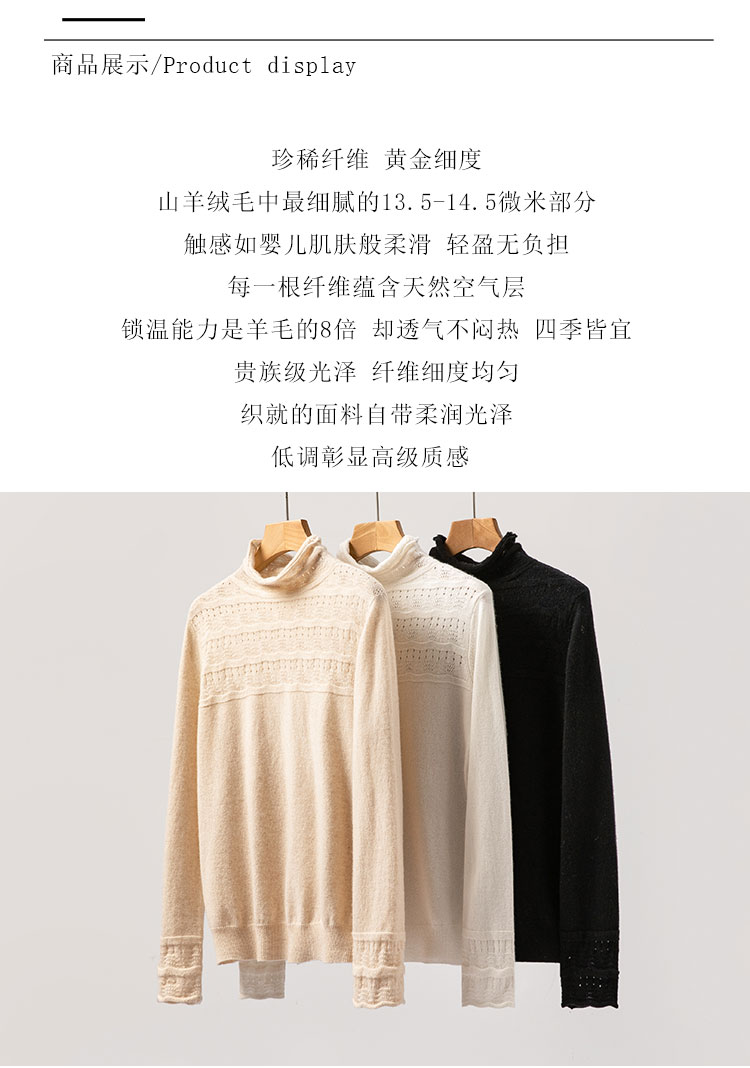 100%Baby小山羊绒~半高领镂空钩花肌理感羊绒衫女BABY260536