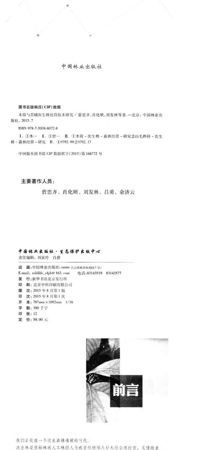 木荷与苦槠次生林经营技术研究 中国林业8072 科技