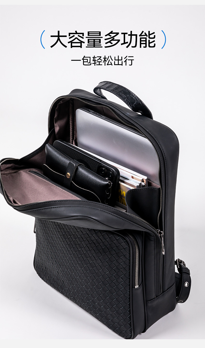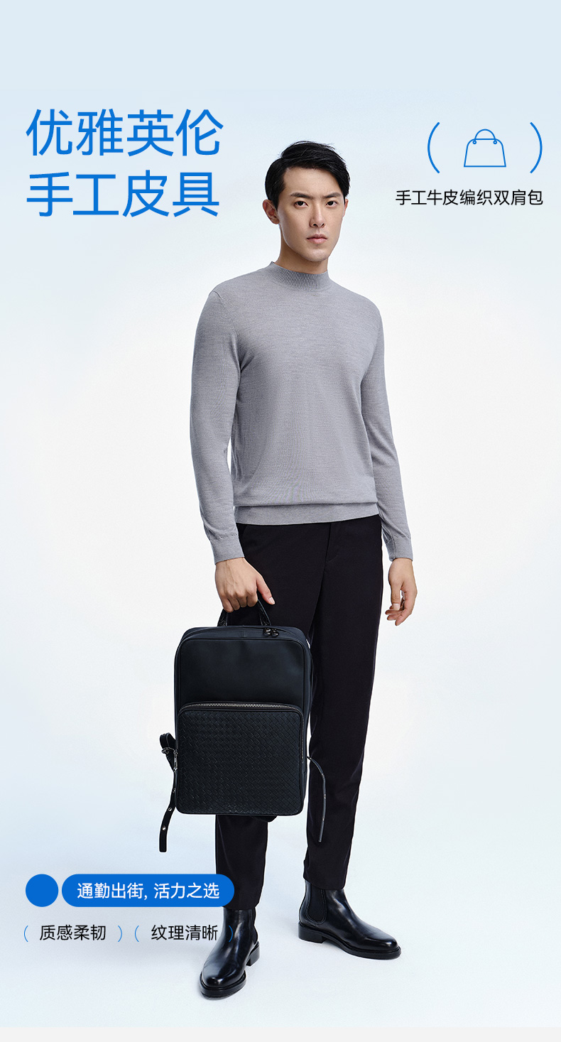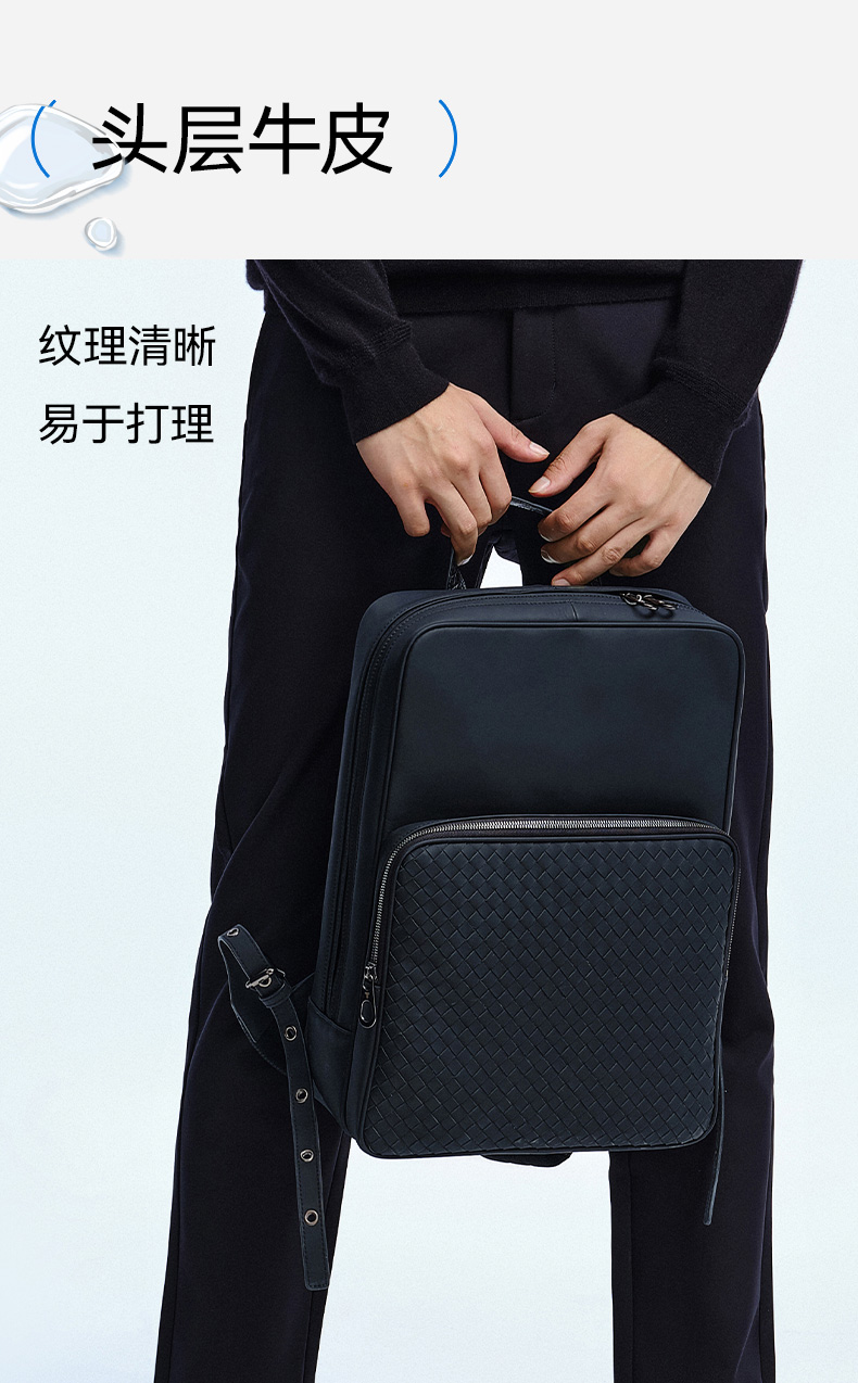 拇指白小衫手工牛皮编织双肩包至简品质系列