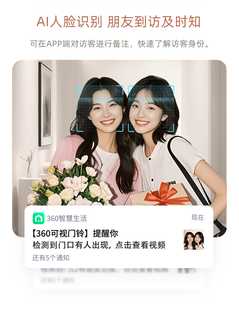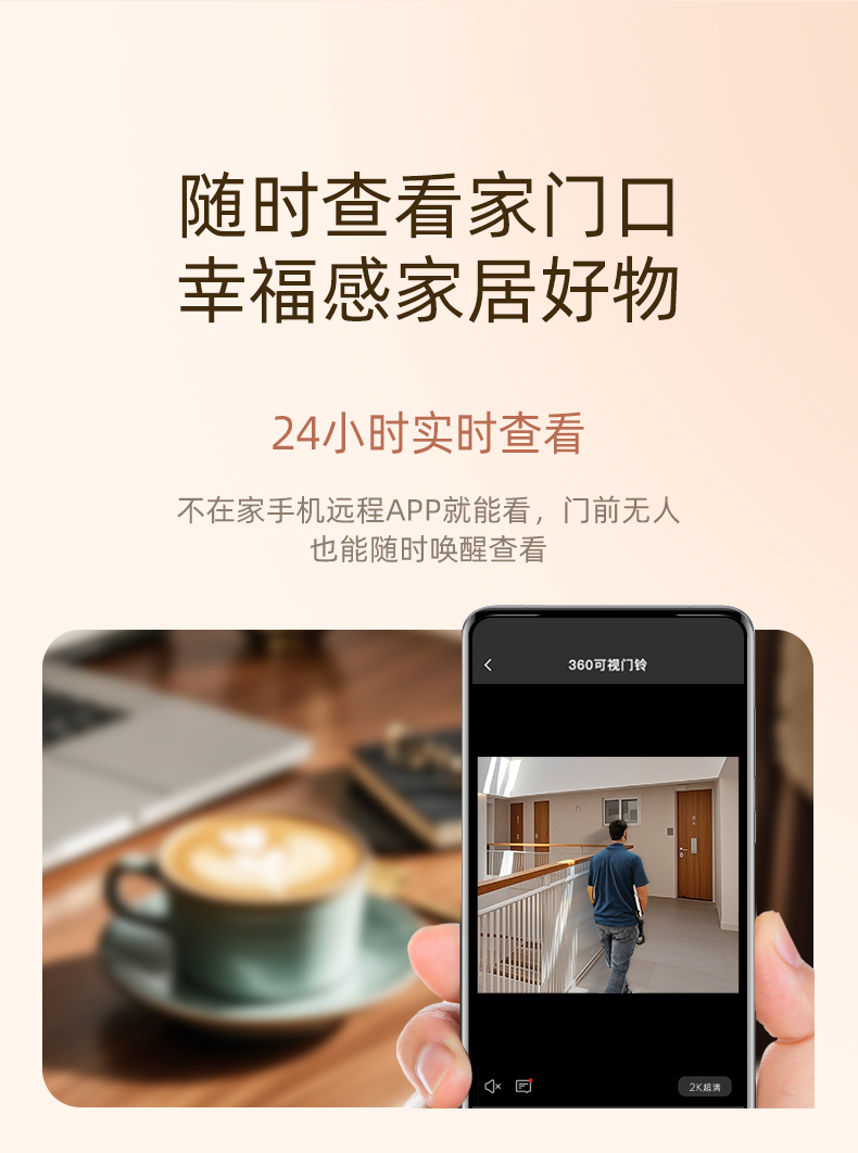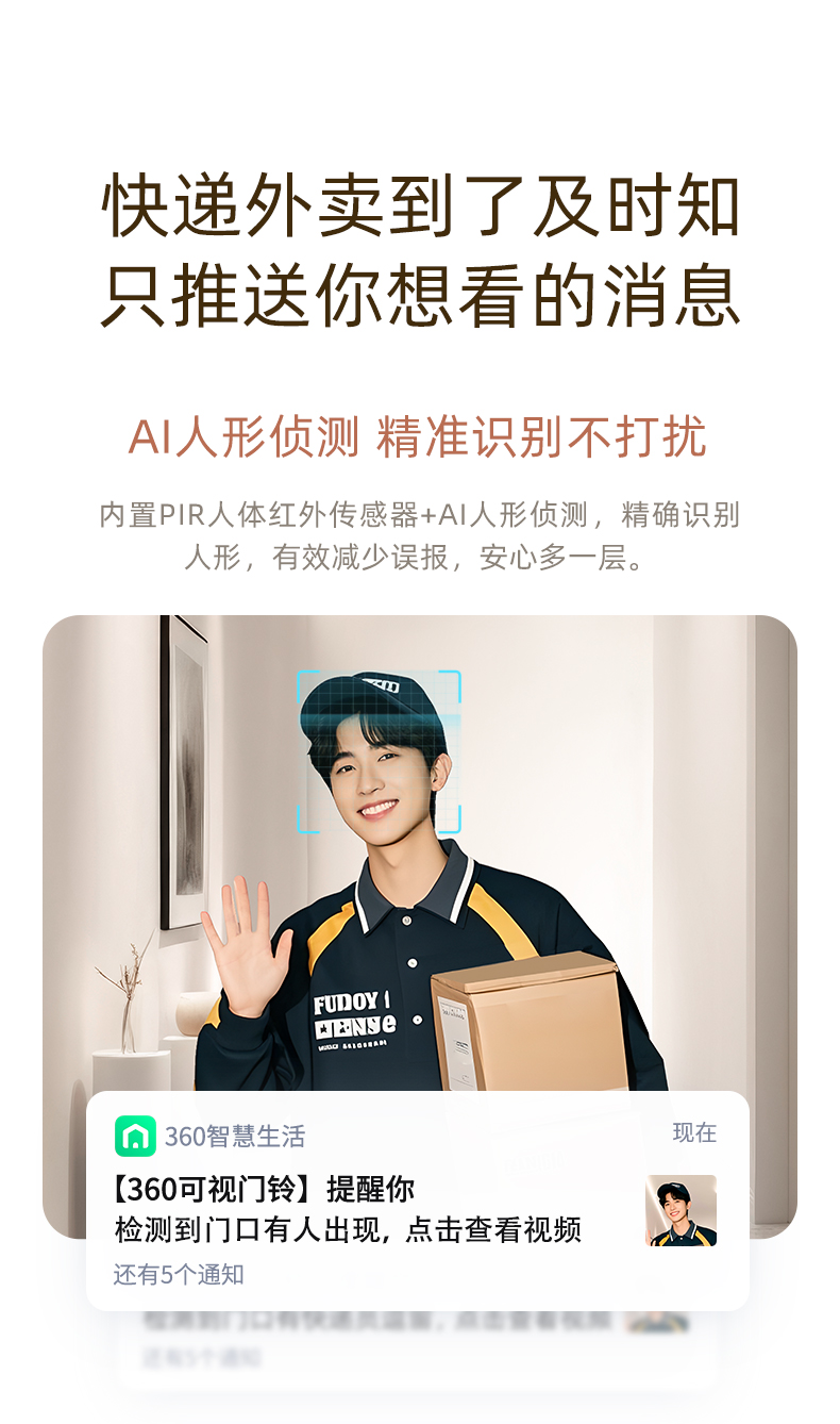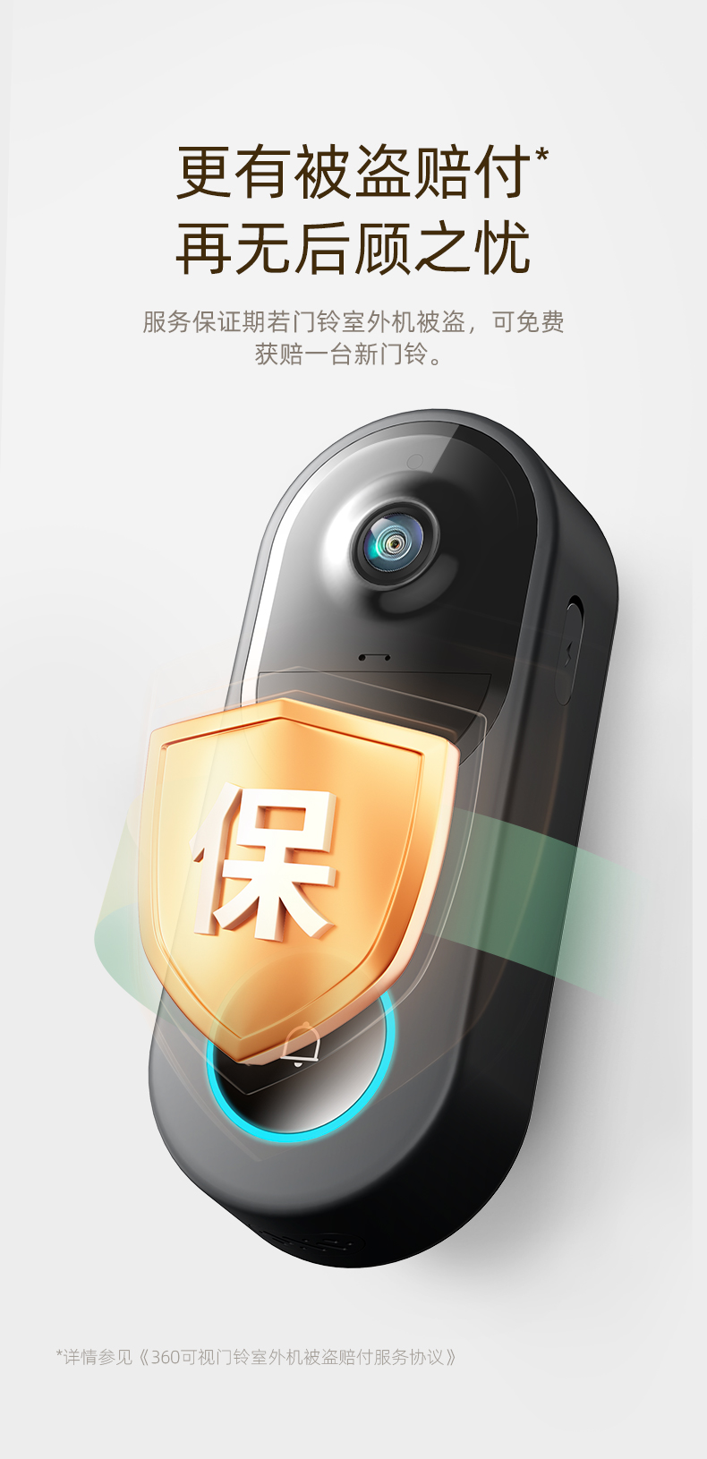 【朋友圈专享】360可视门铃6 哨兵版 哨兵模式 500万超清夜视 180°超清大广角 AI人形侦测 5米超高清红外夜视