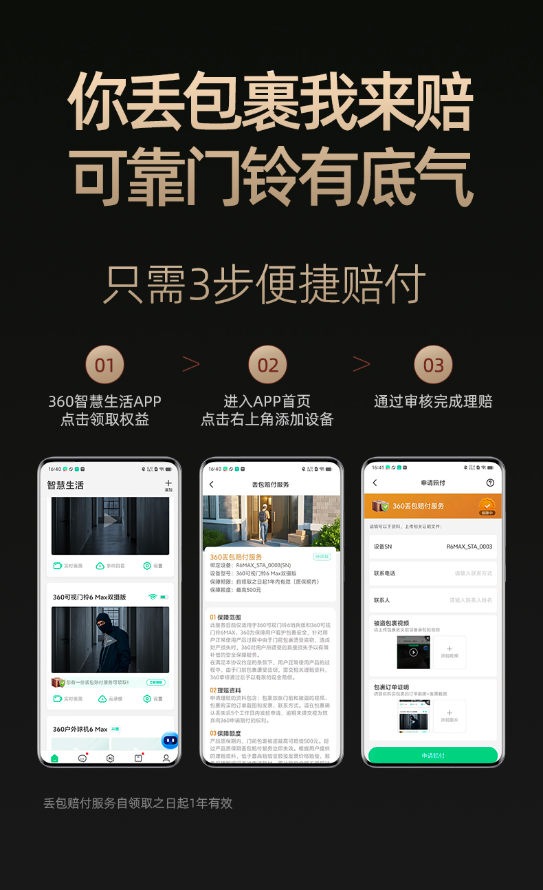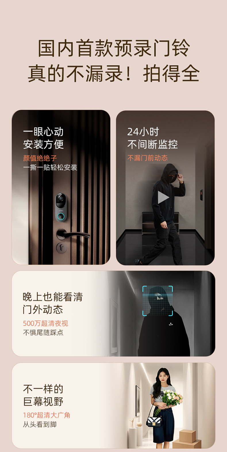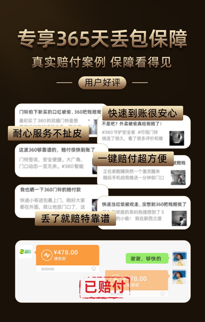 【朋友圈专享】360可视门铃6 哨兵版 哨兵模式 500万超清夜视 180°超清大广角 AI人形侦测 5米超高清红外夜视