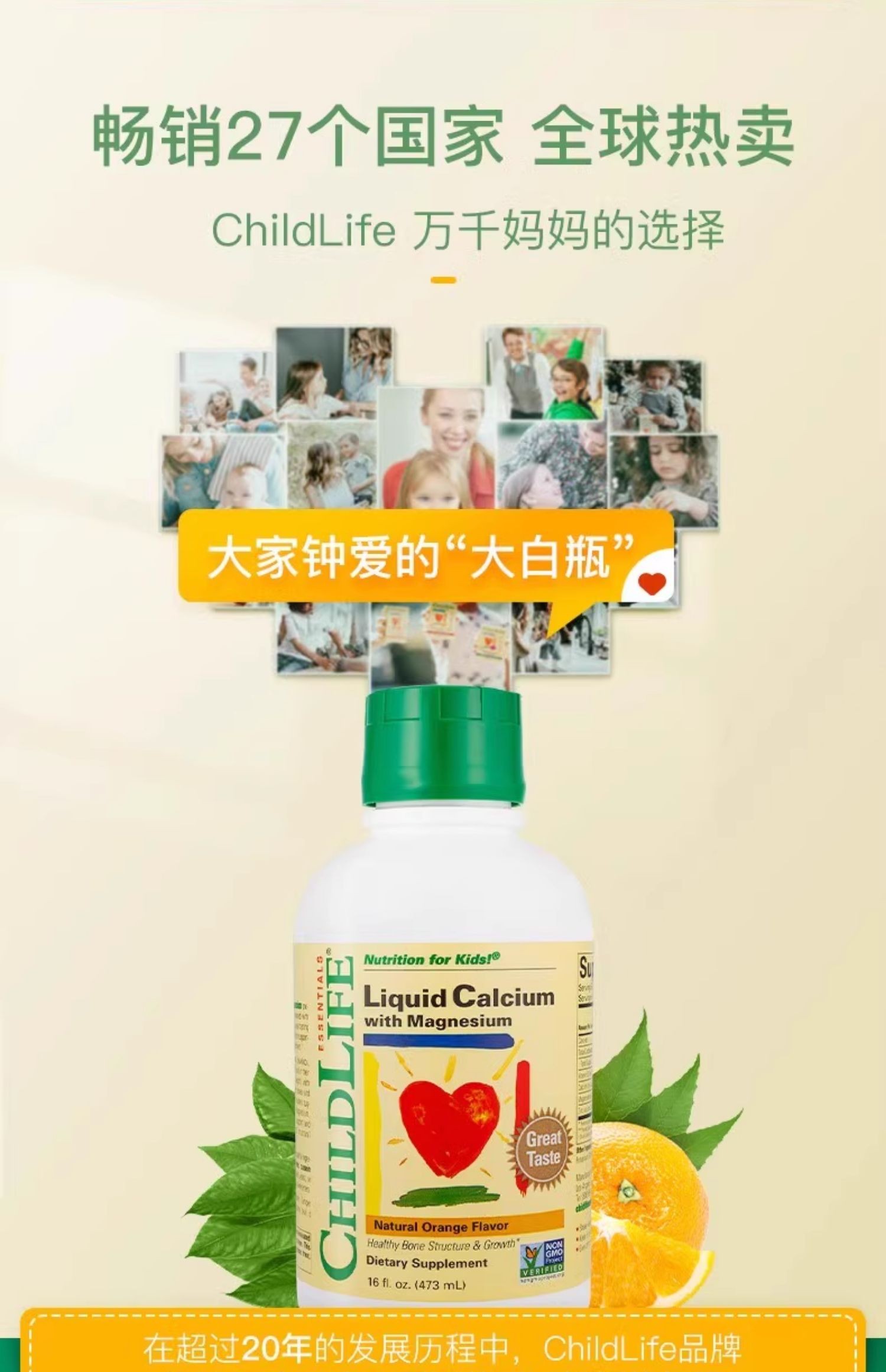 【保税仓】美国ChildLife童年时光钙镁锌 473ml/瓶 效期27.1月