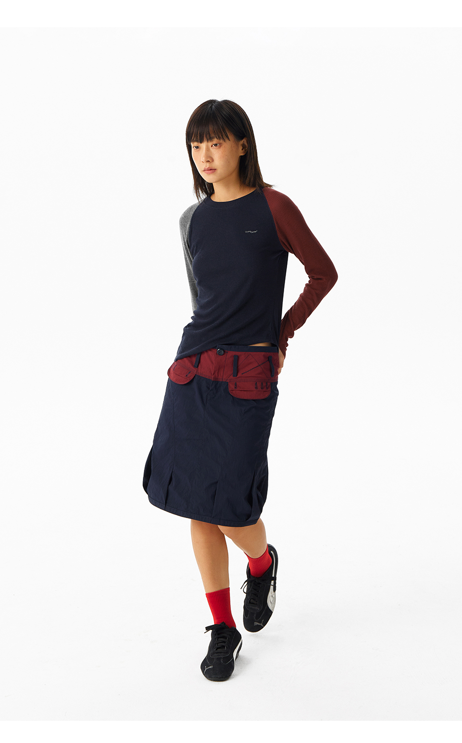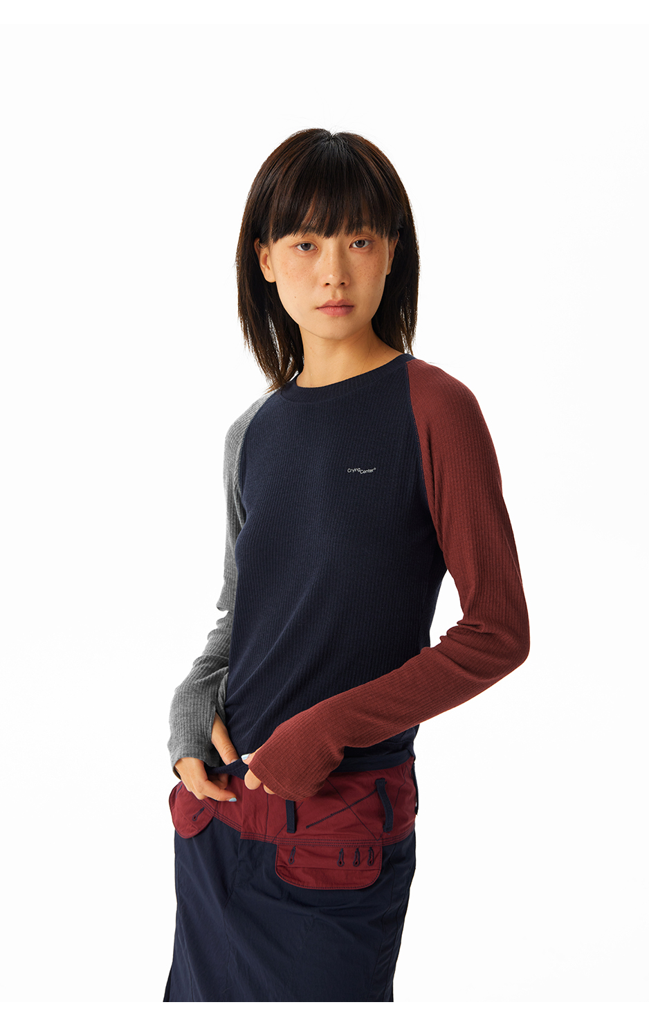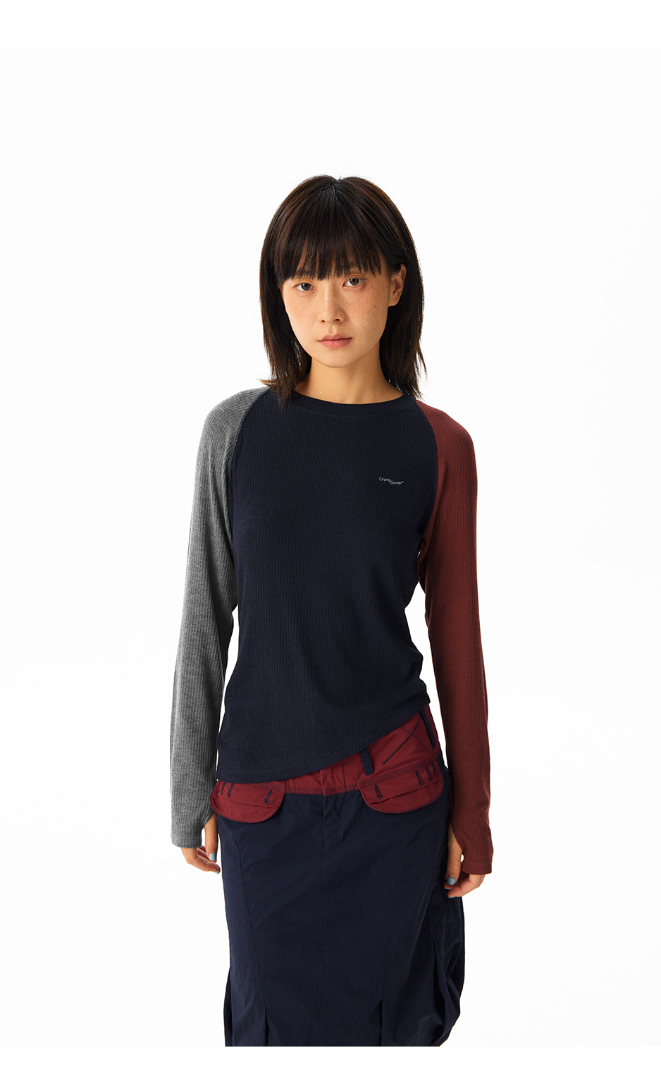 CryingCenter 圆领斜边拼色内搭打底长袖Tee 哭喊中心