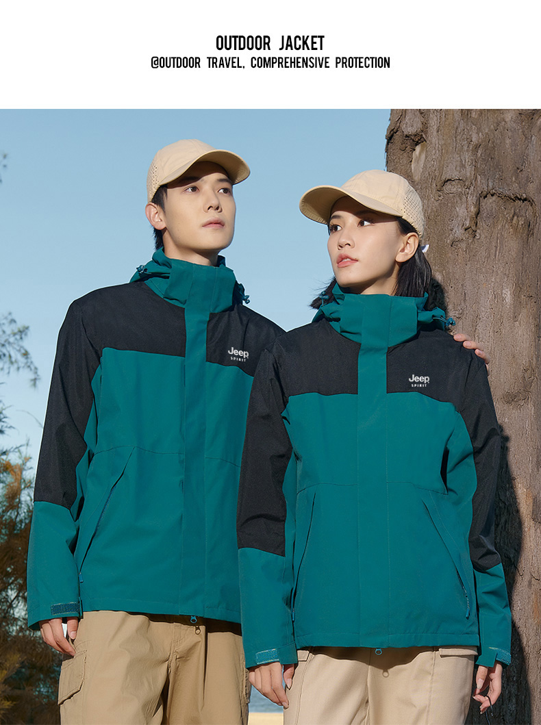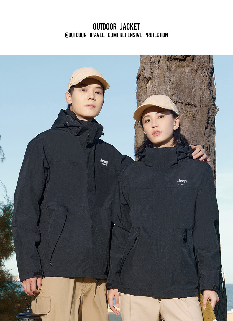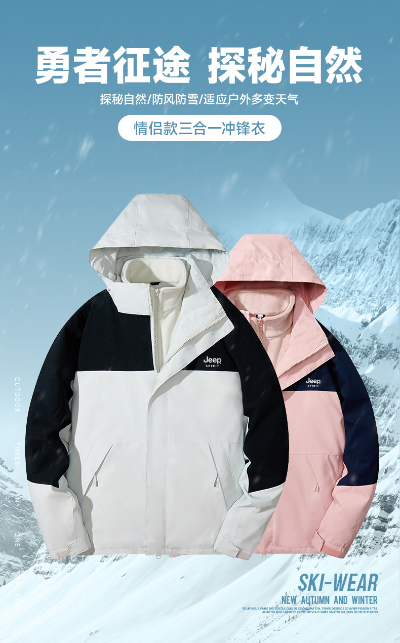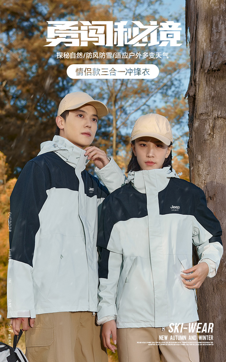 【JEEP SPIRIT三合一情侣冲锋衣】加厚可拆卸内胆外套 户外防风防水登山服 时尚百搭保暖夹克