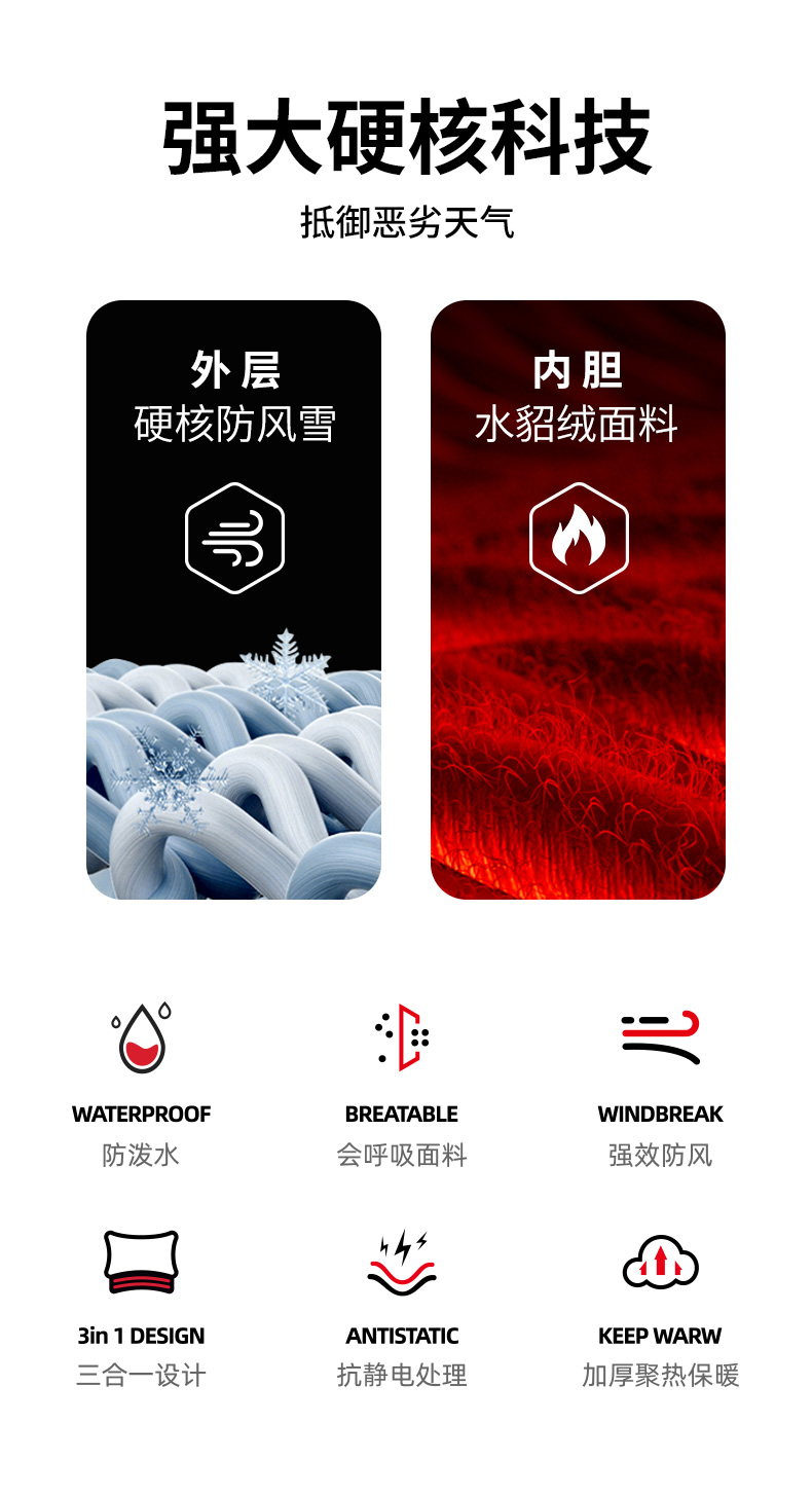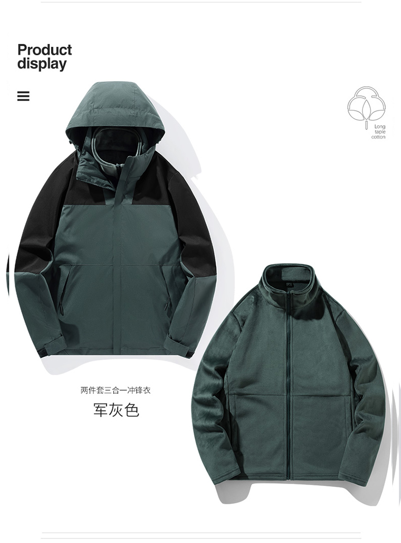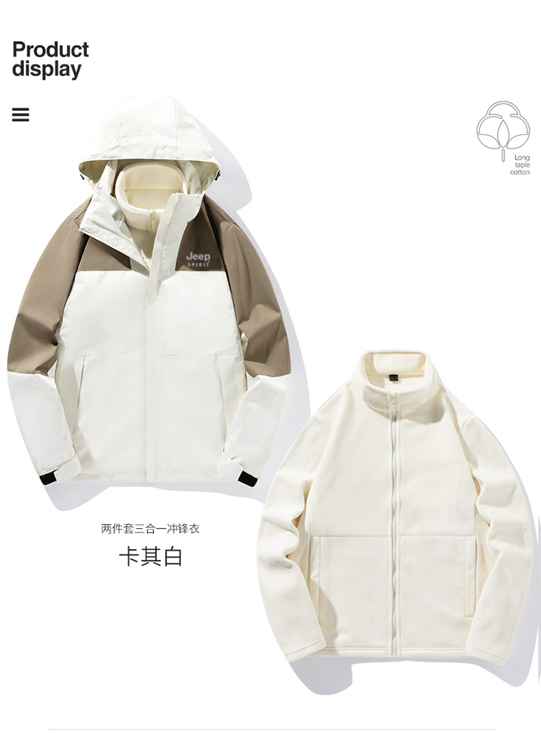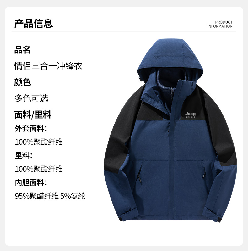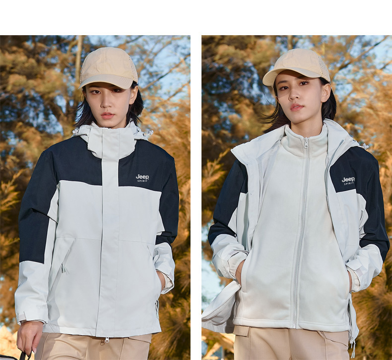 【JEEP SPIRIT三合一情侣冲锋衣】加厚可拆卸内胆外套 户外防风防水登山服 时尚百搭保暖夹克