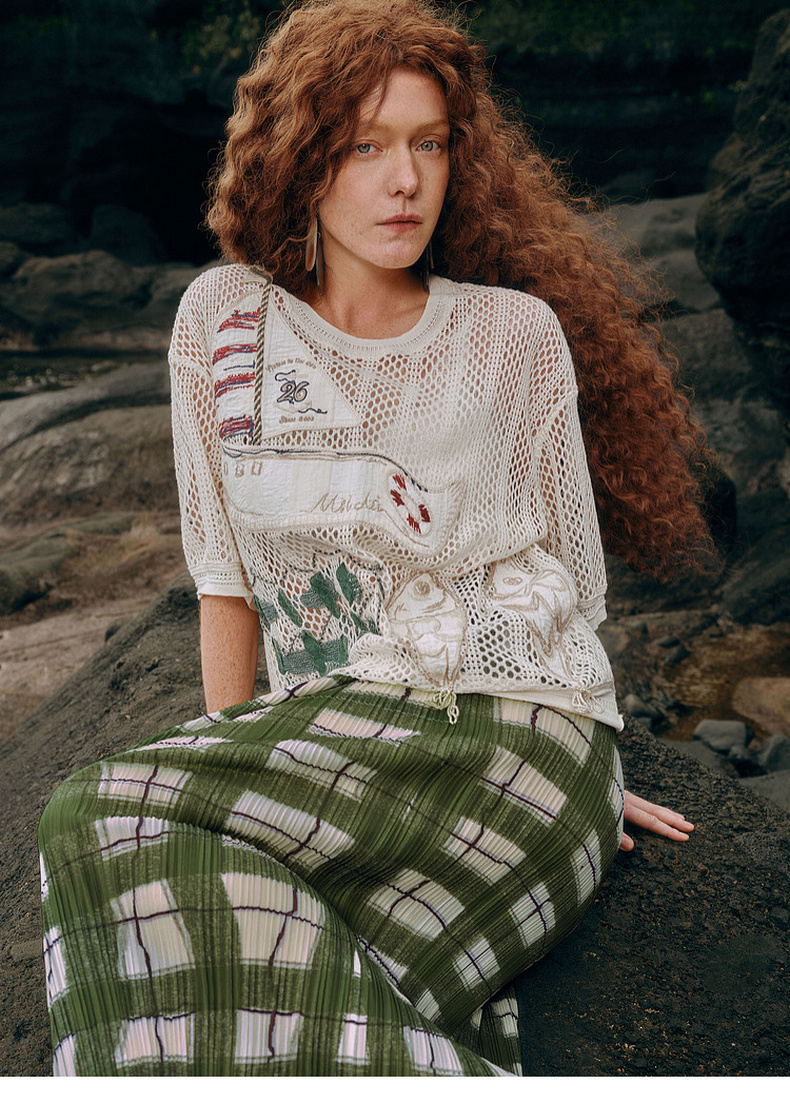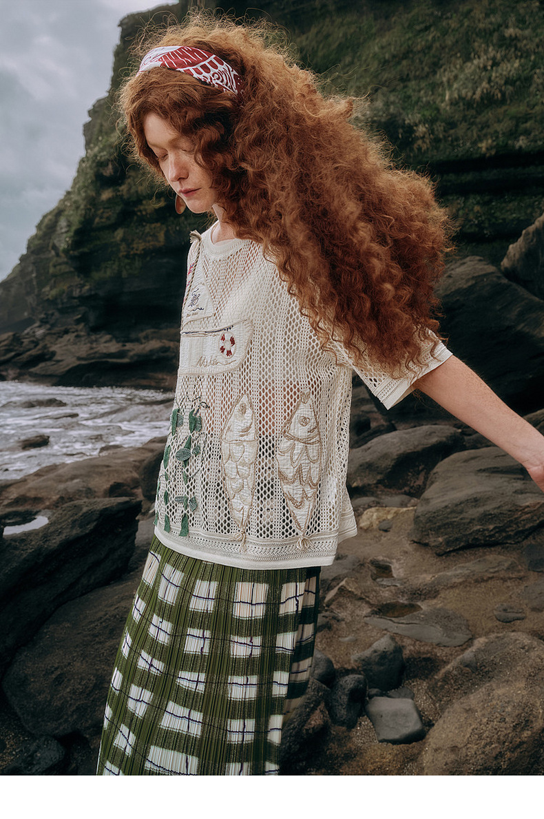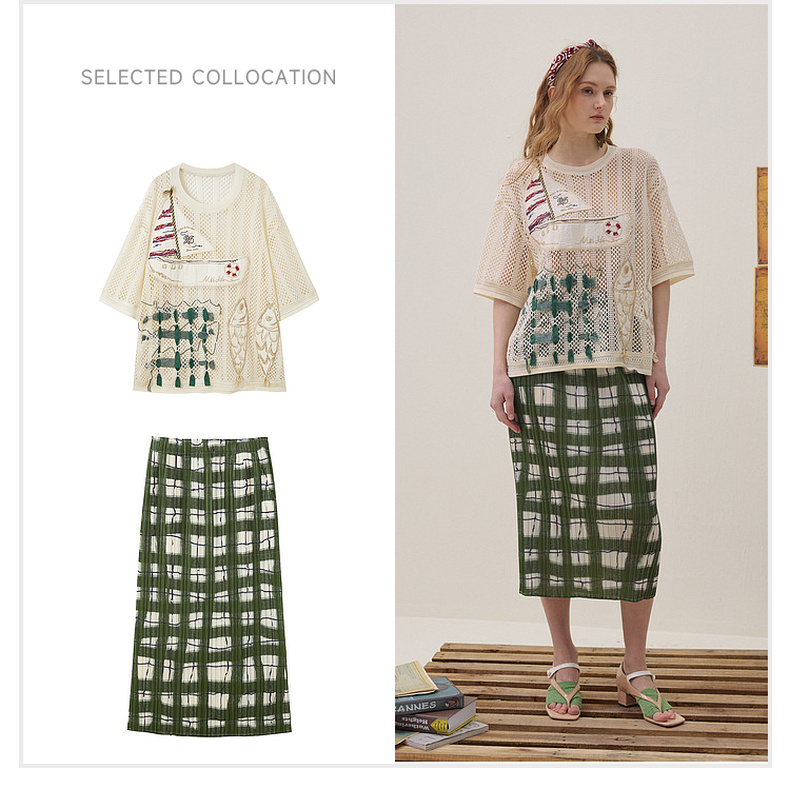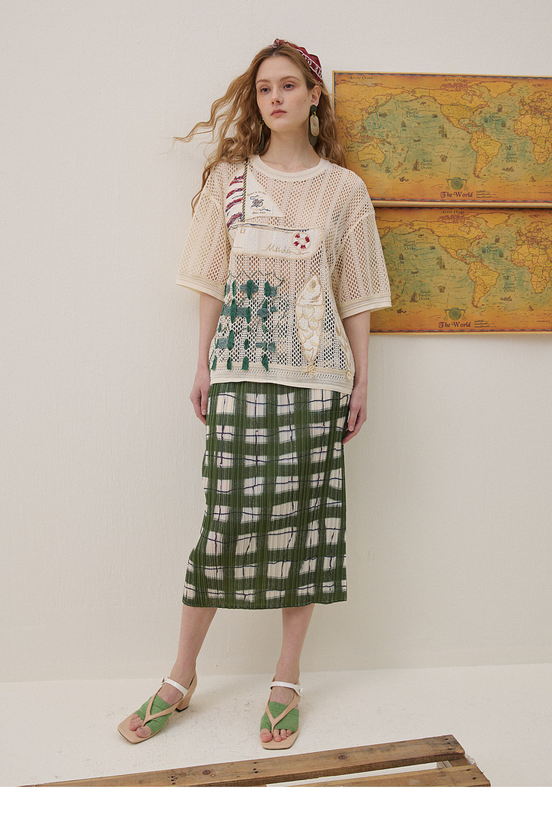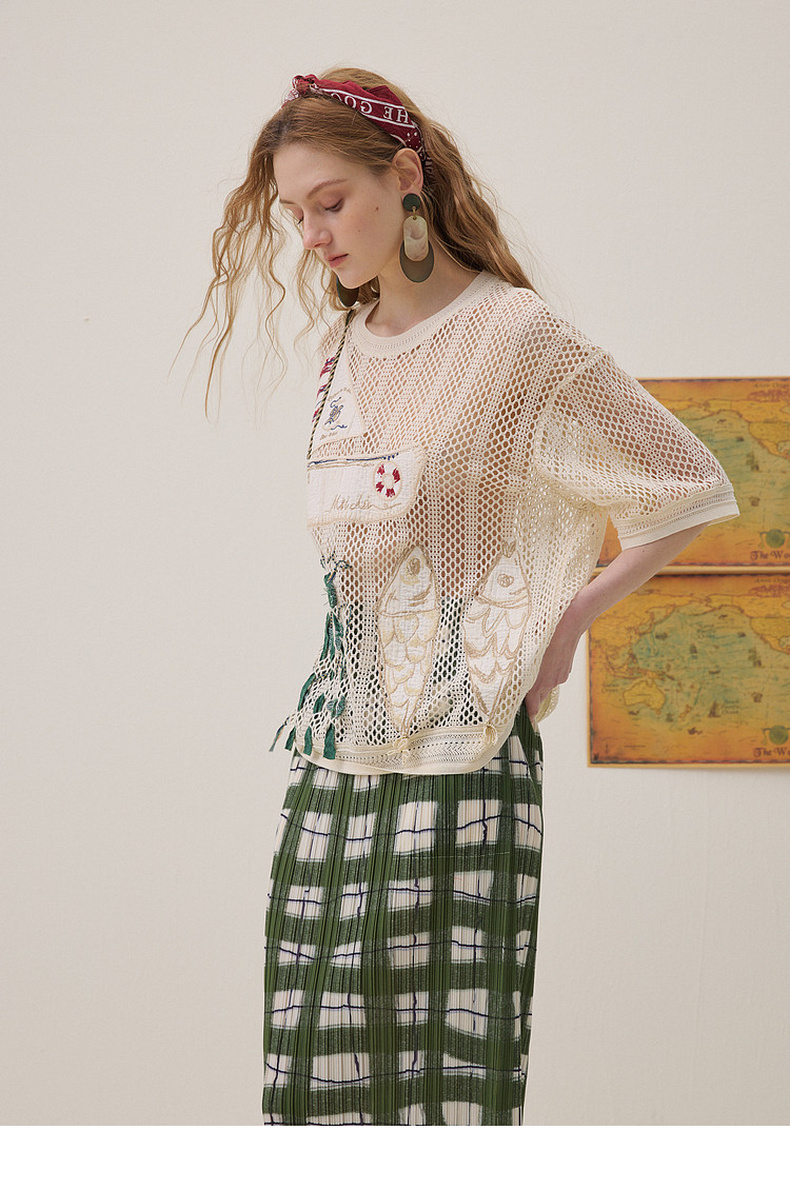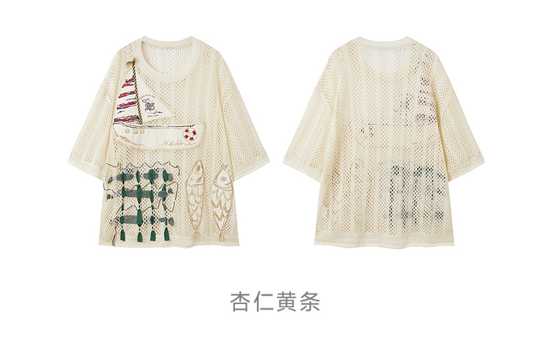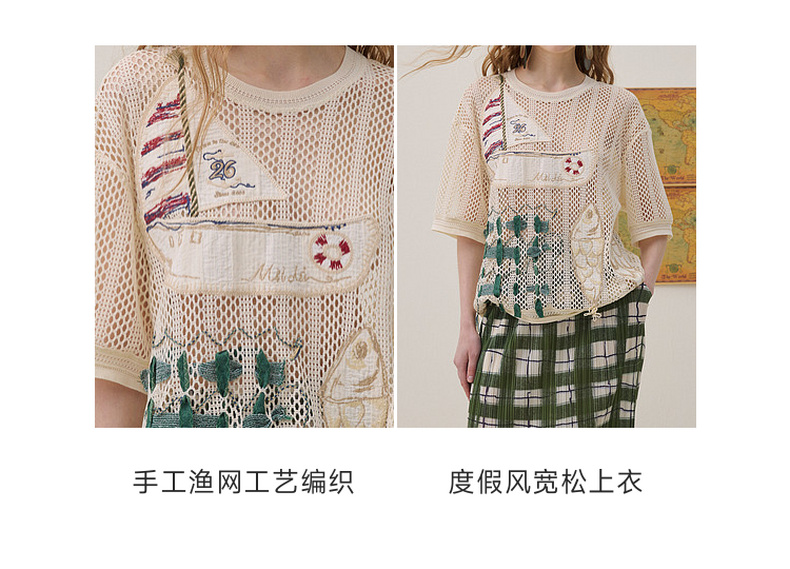 谜底套头针织衫中袖2026夏新品贴布绣编织度假风上衣女262MS0660
