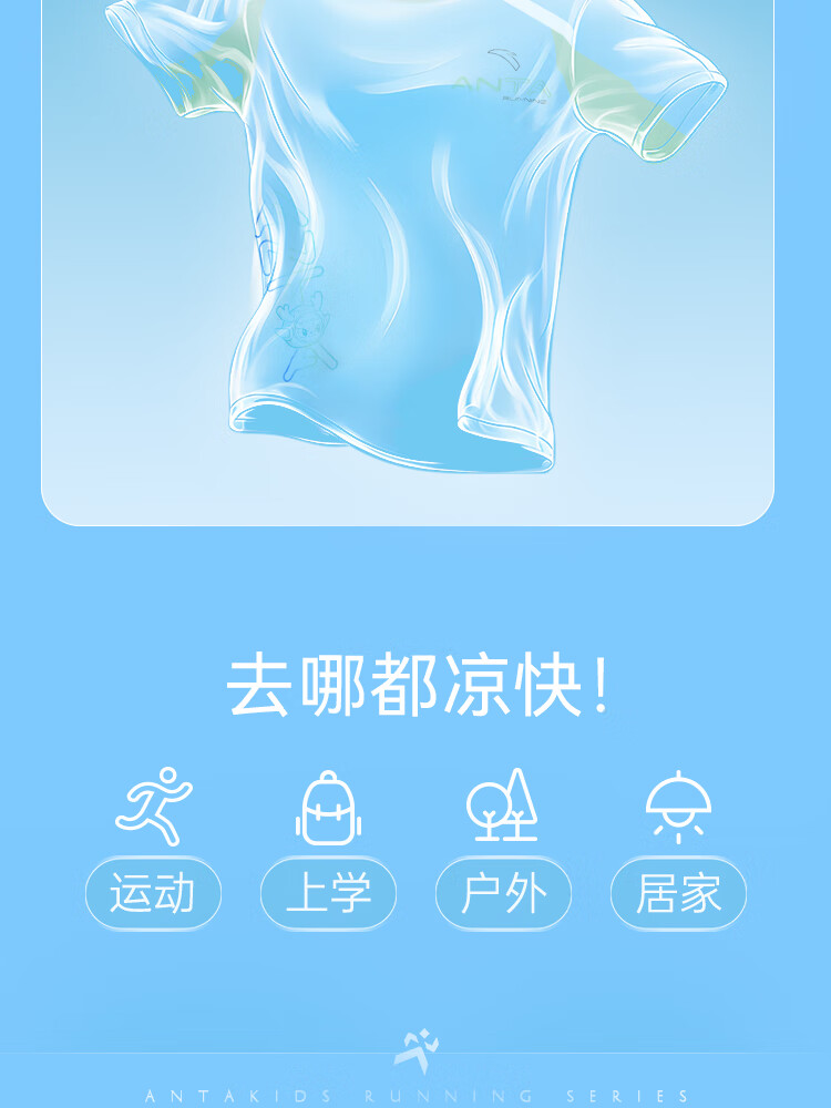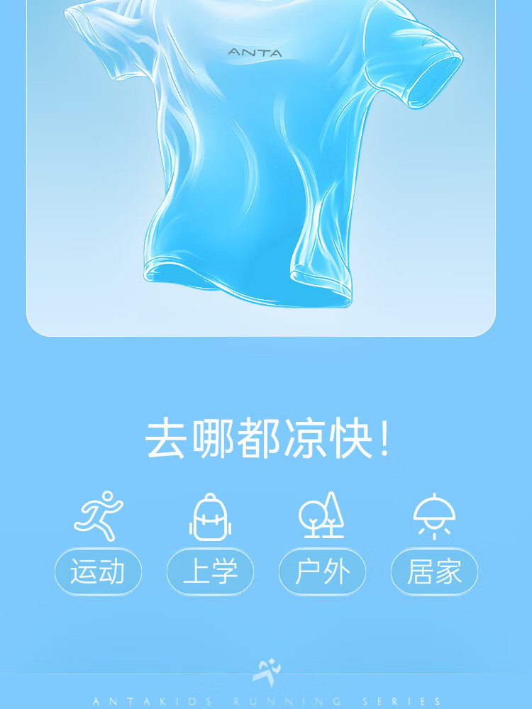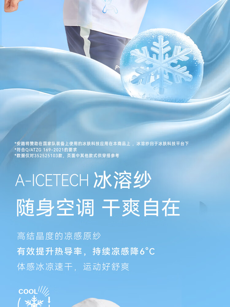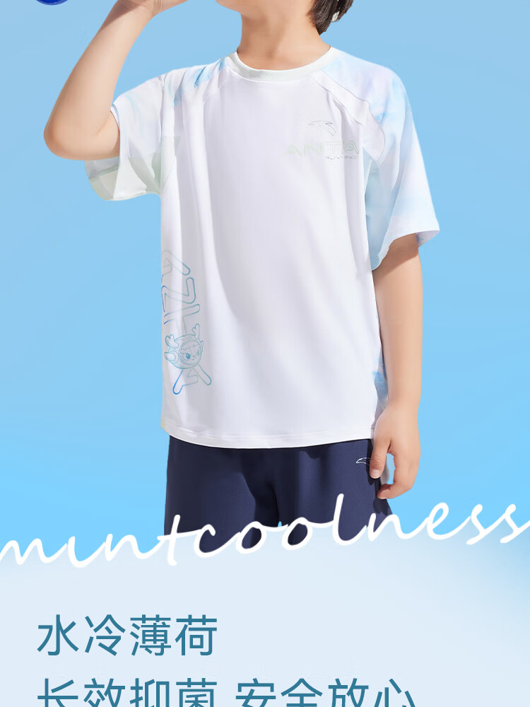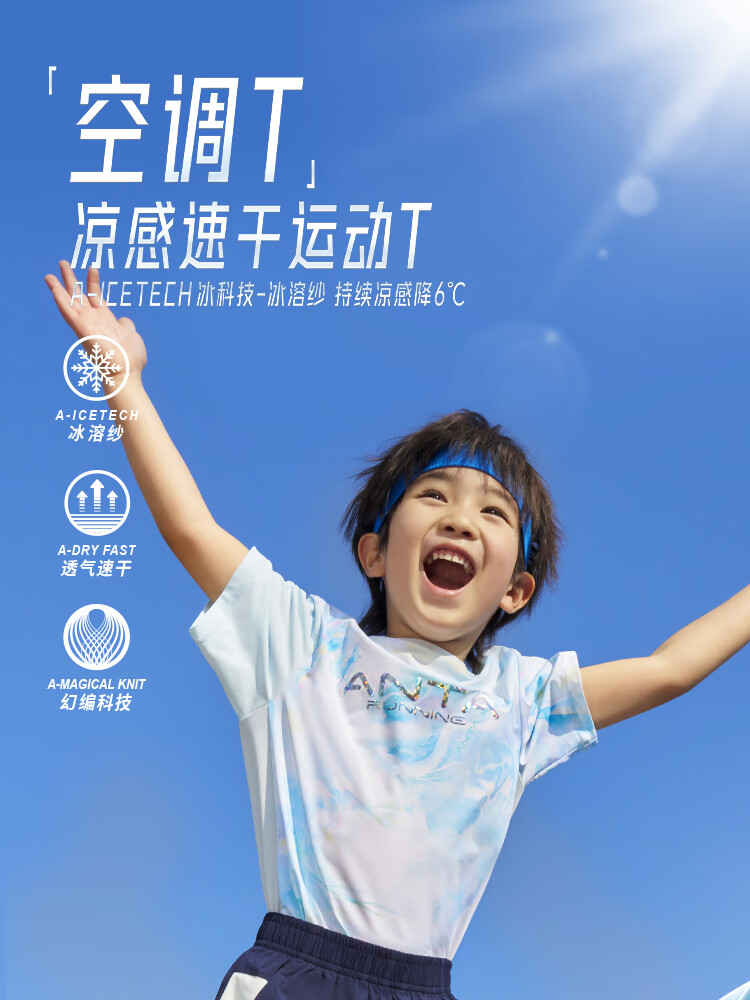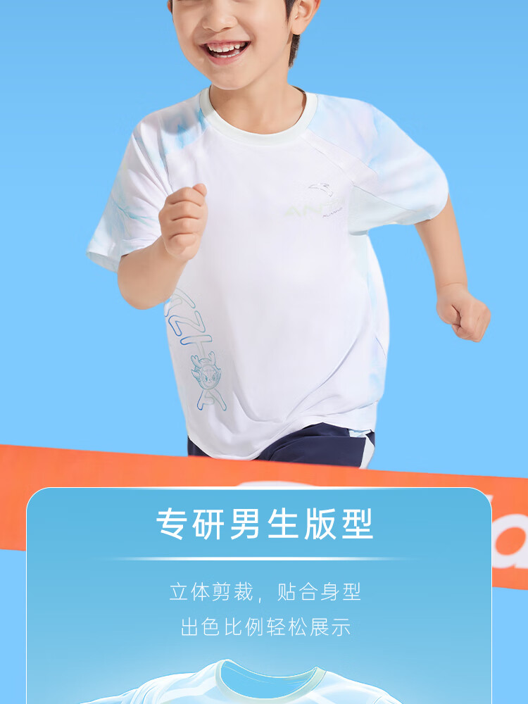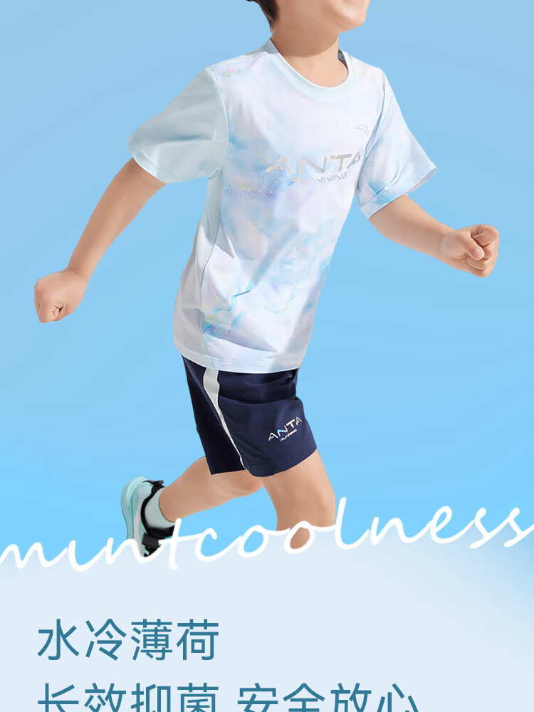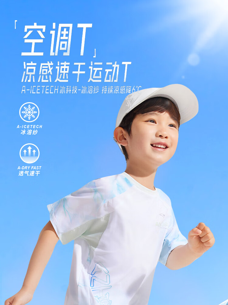 安踏儿童男小童短T恤2025夏水冷针织运动透气凉爽短袖352529102