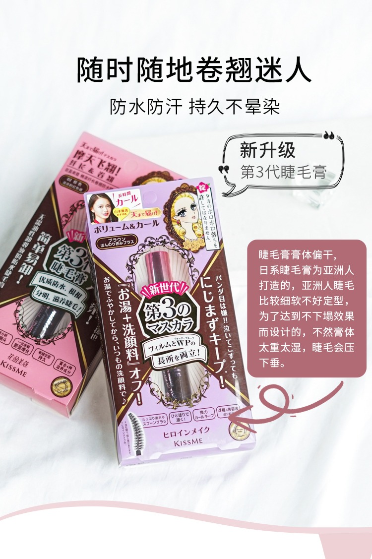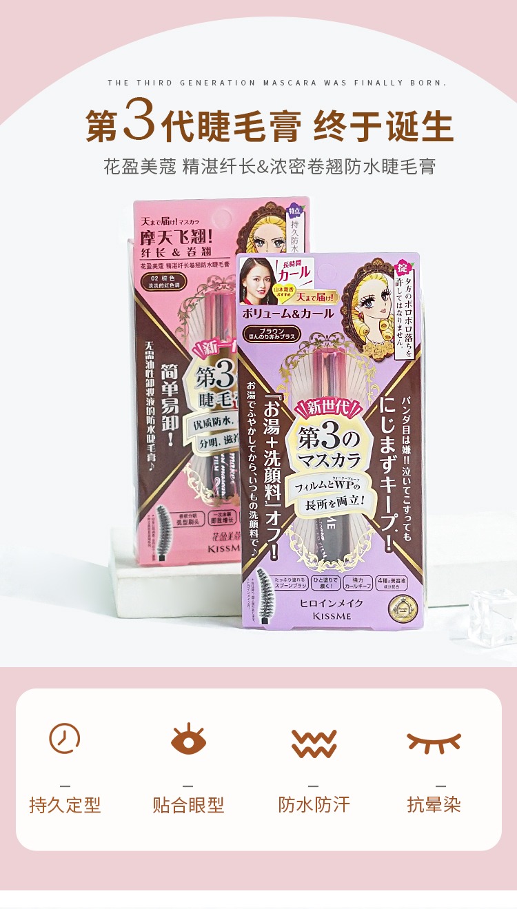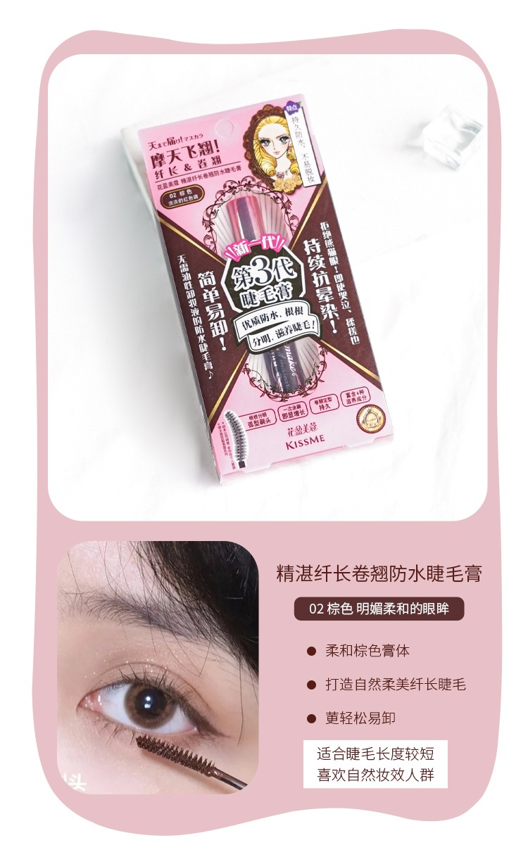 Kissme奇士美花盈美蔻精湛纤长卷翘防水睫毛膏(02棕色)6g【保质期:2027年1月10日】