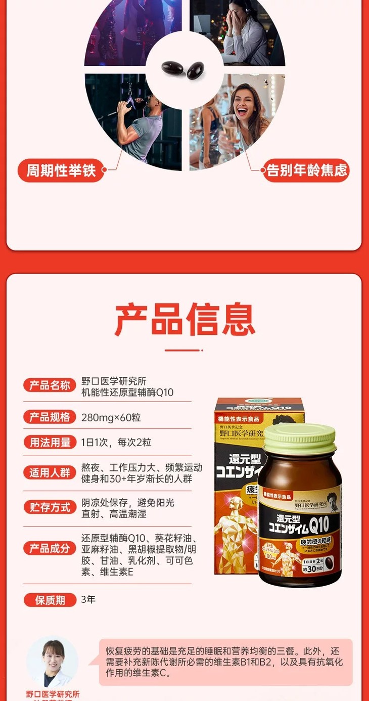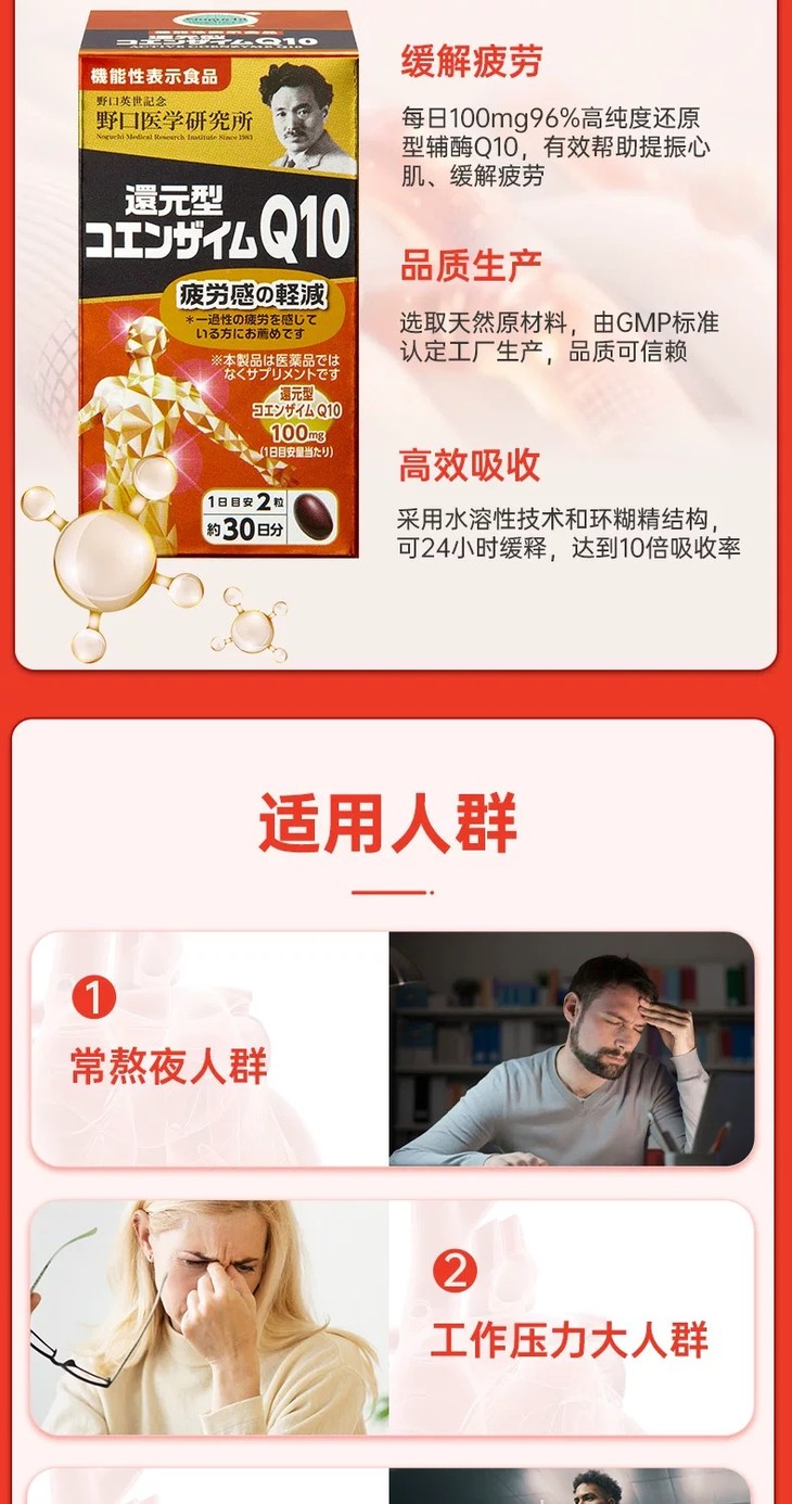 【日本直邮】Noguchi 野口医学研究所 高分散还元型心肌辅酶Q10软胶囊 60粒