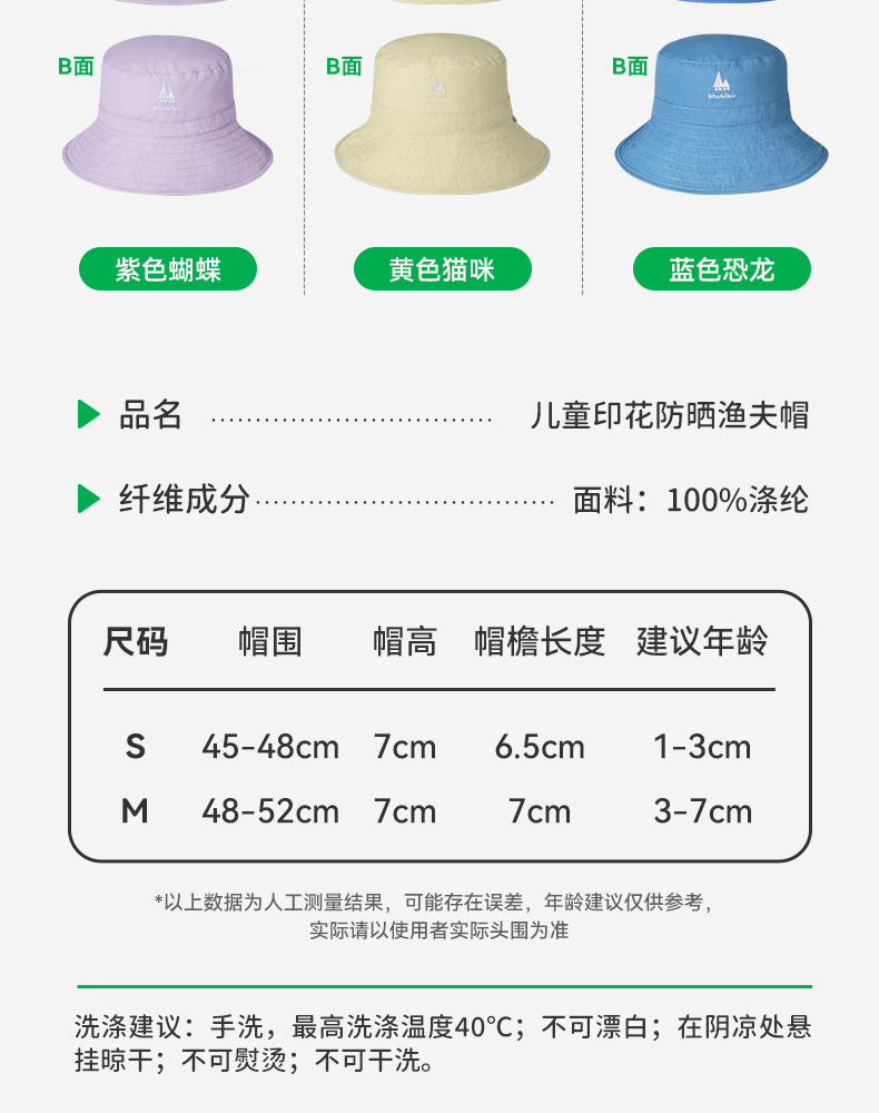shukiku 儿童印花防晒渔夫帽 蓝色恐龙 M码(48-52cm)3-5岁