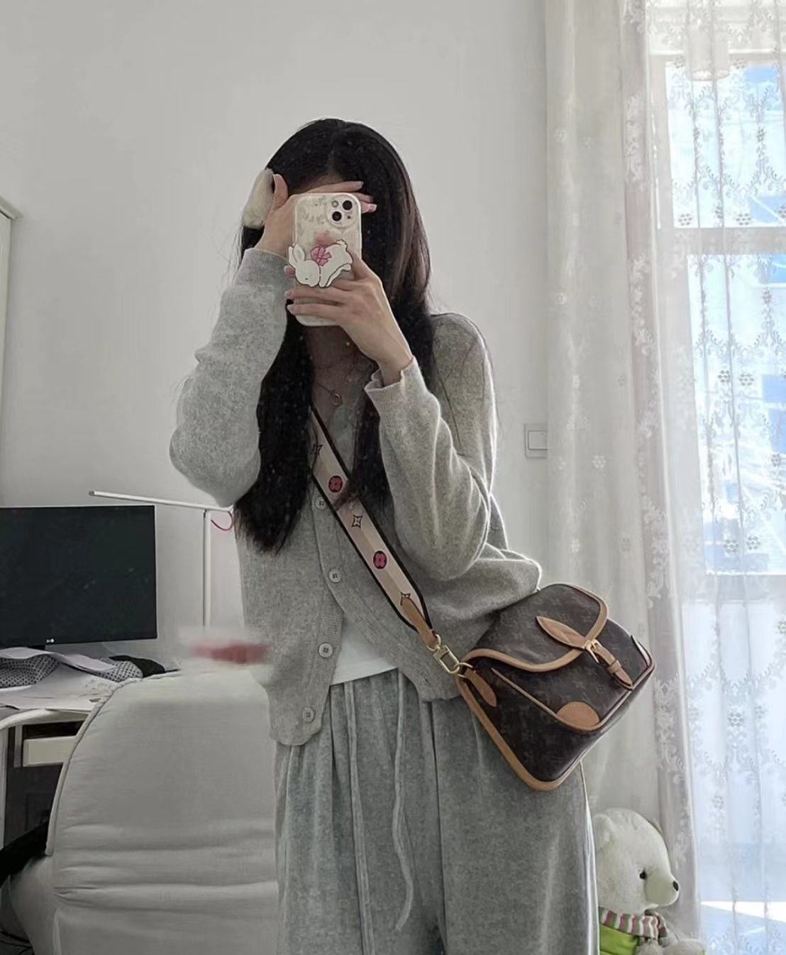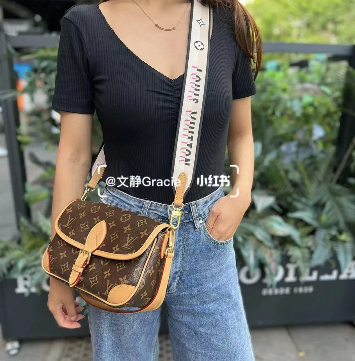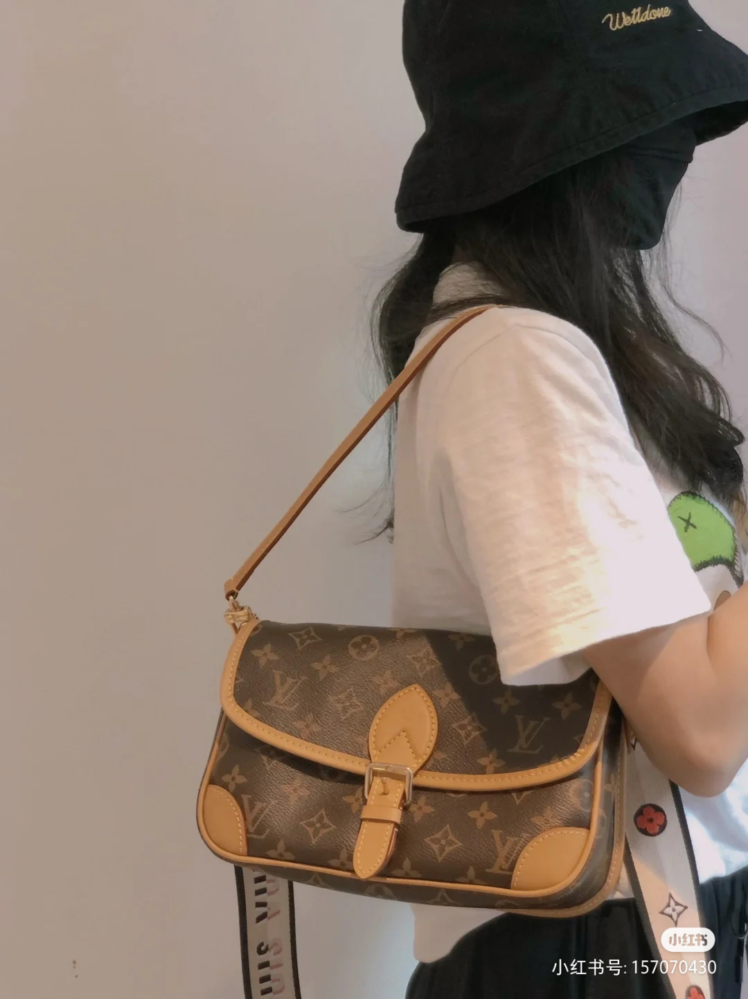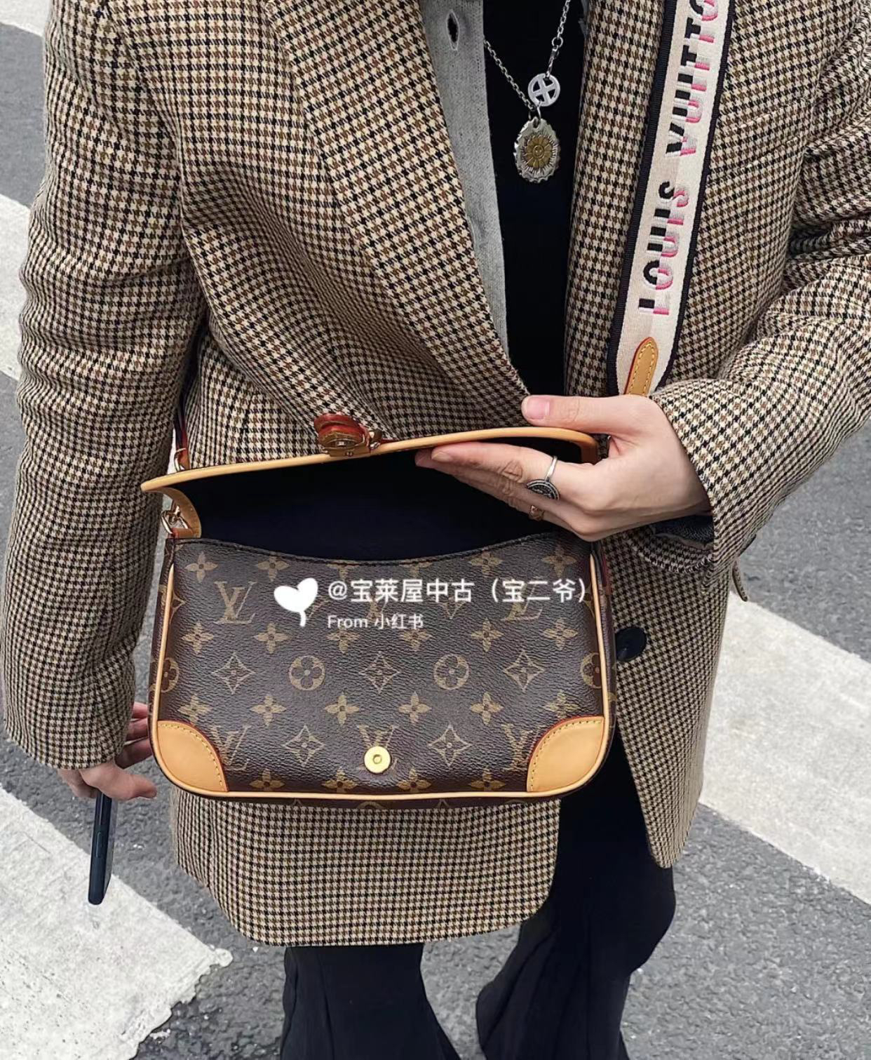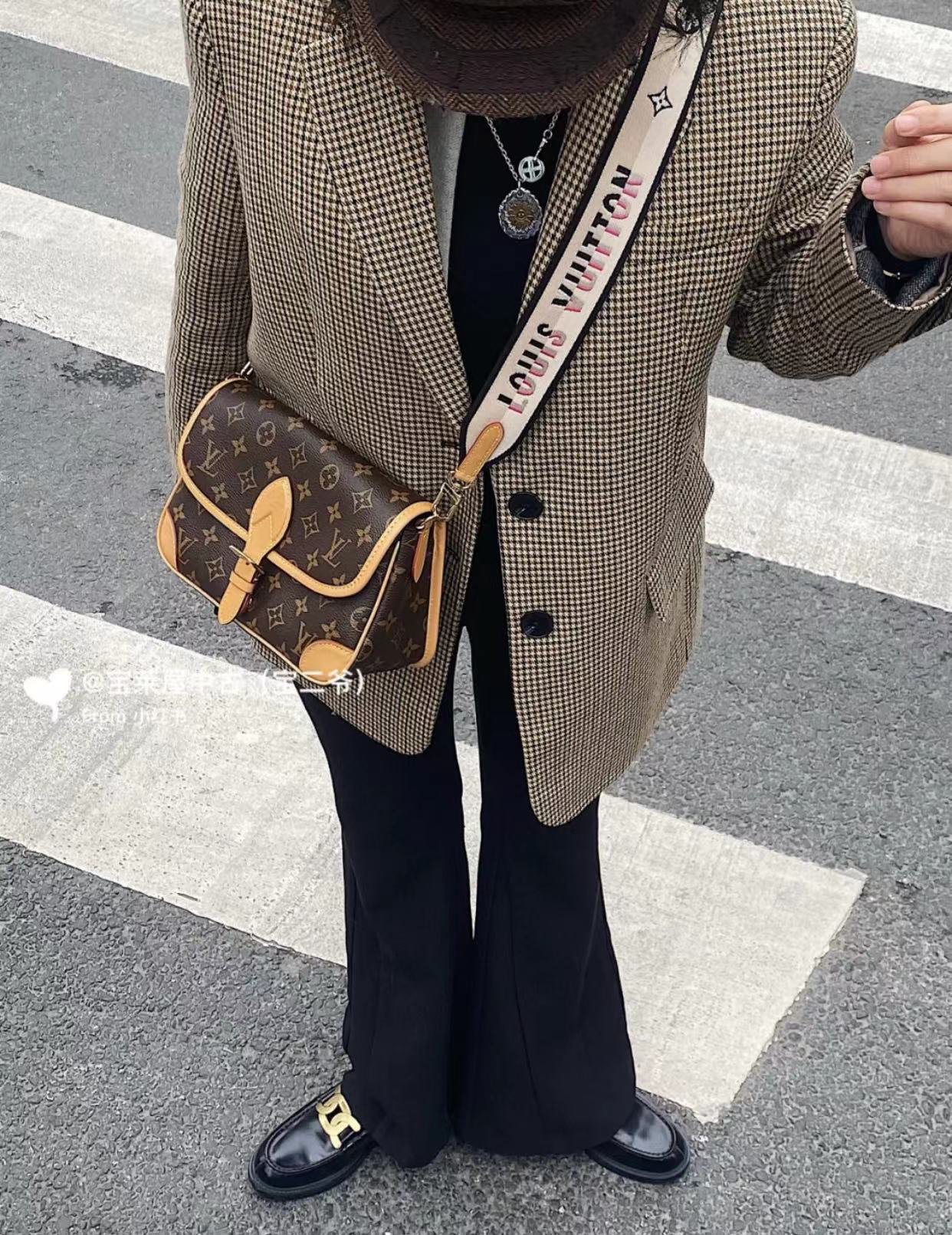 他的短带是皮的,斜挎是布料刺绣,既可以配得了你高贵的大衣,也可以搭配你甜美、休闲的。