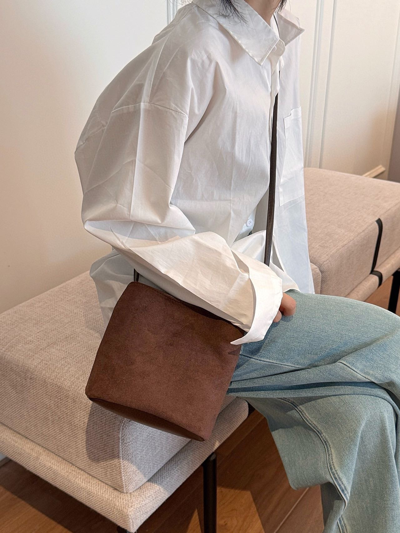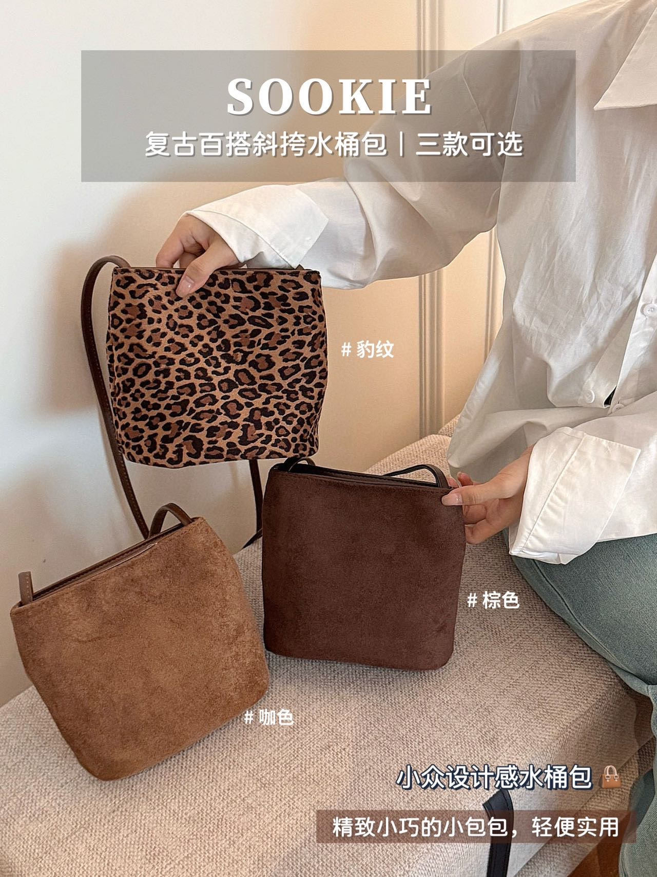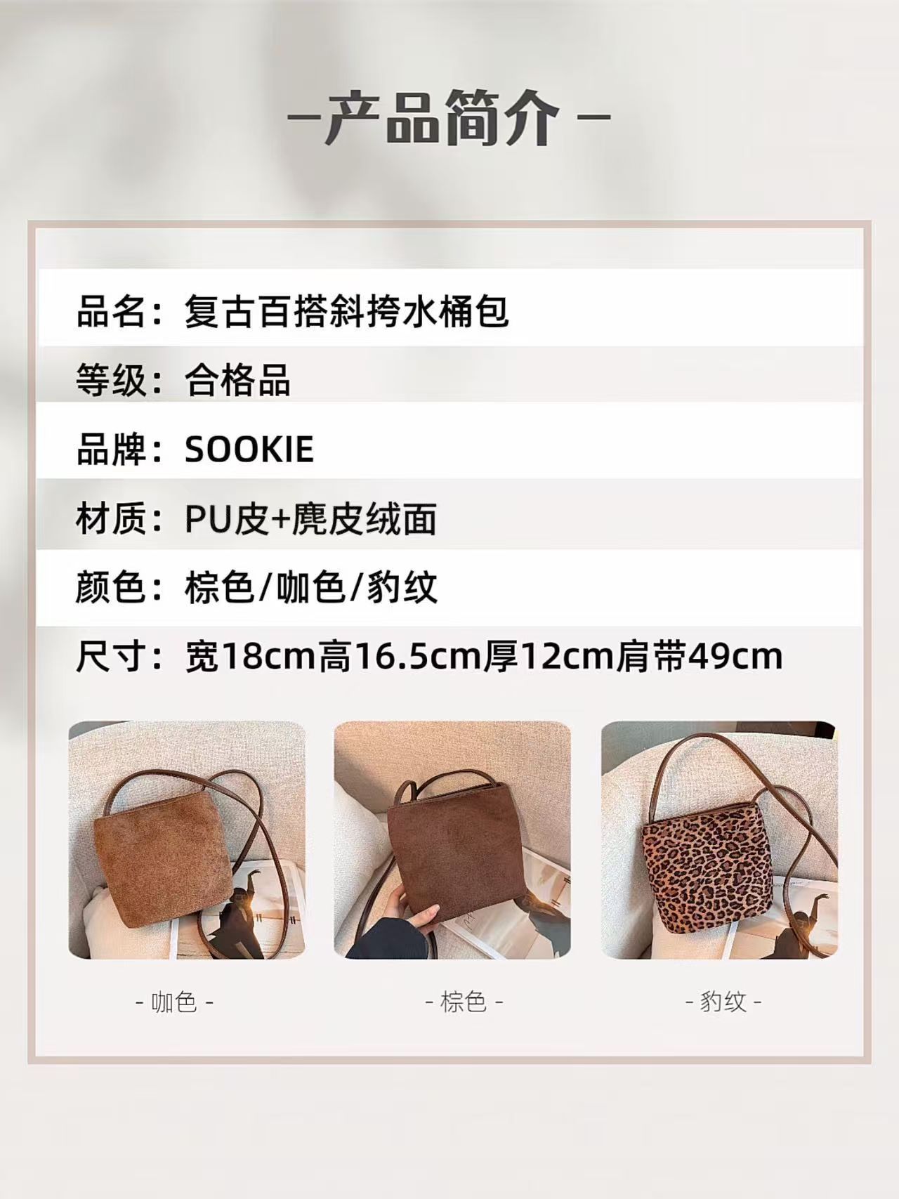 优选丨【捡漏福利款!】SOOKIE 复古麂皮绒水桶包 三色可选,复古经典,酷飒又时髦,出行百搭包;皮革+麂皮绒面料,品质感满满;磁吸扣设计,开合超方便;单肩斜挎都可以