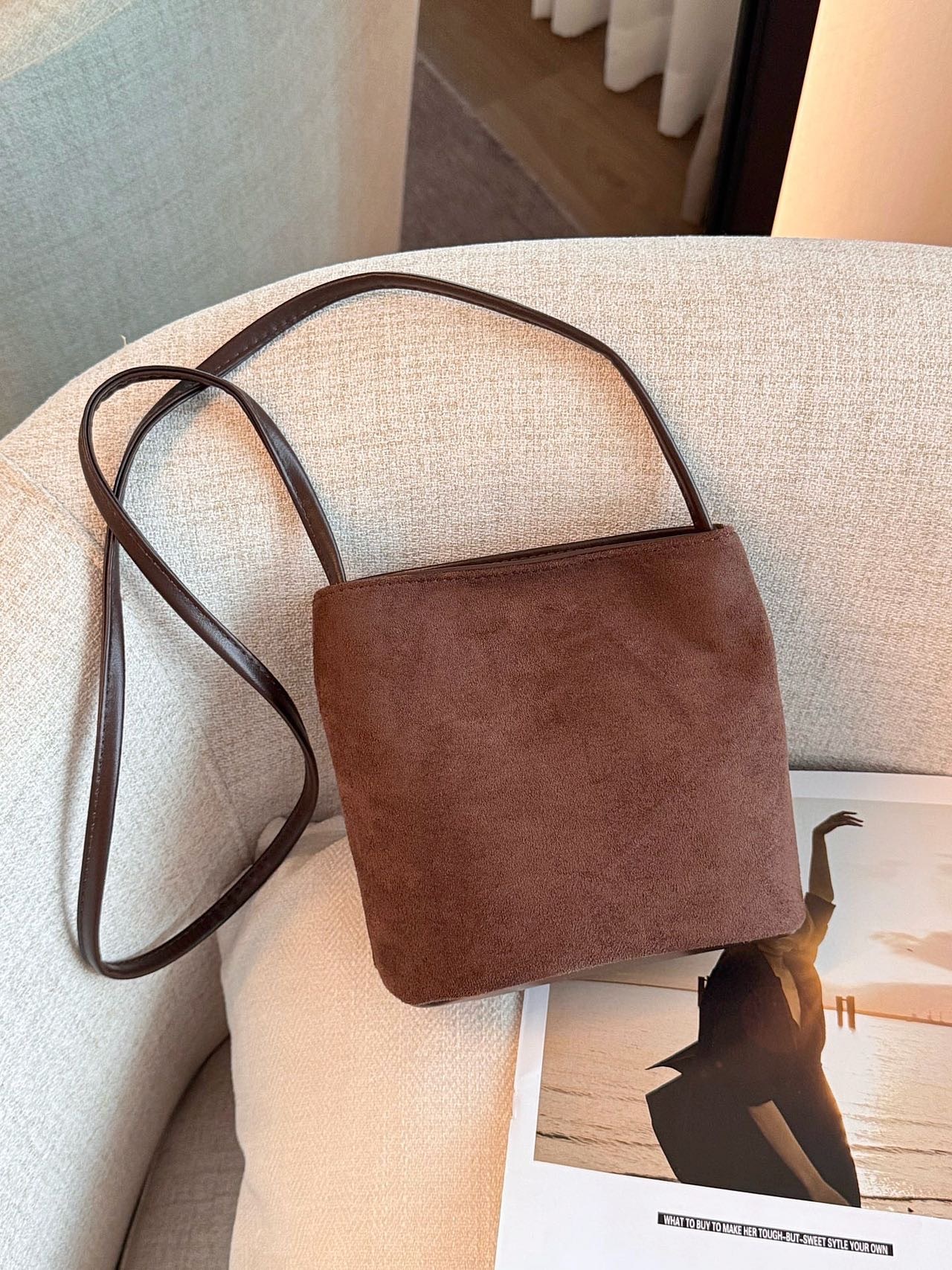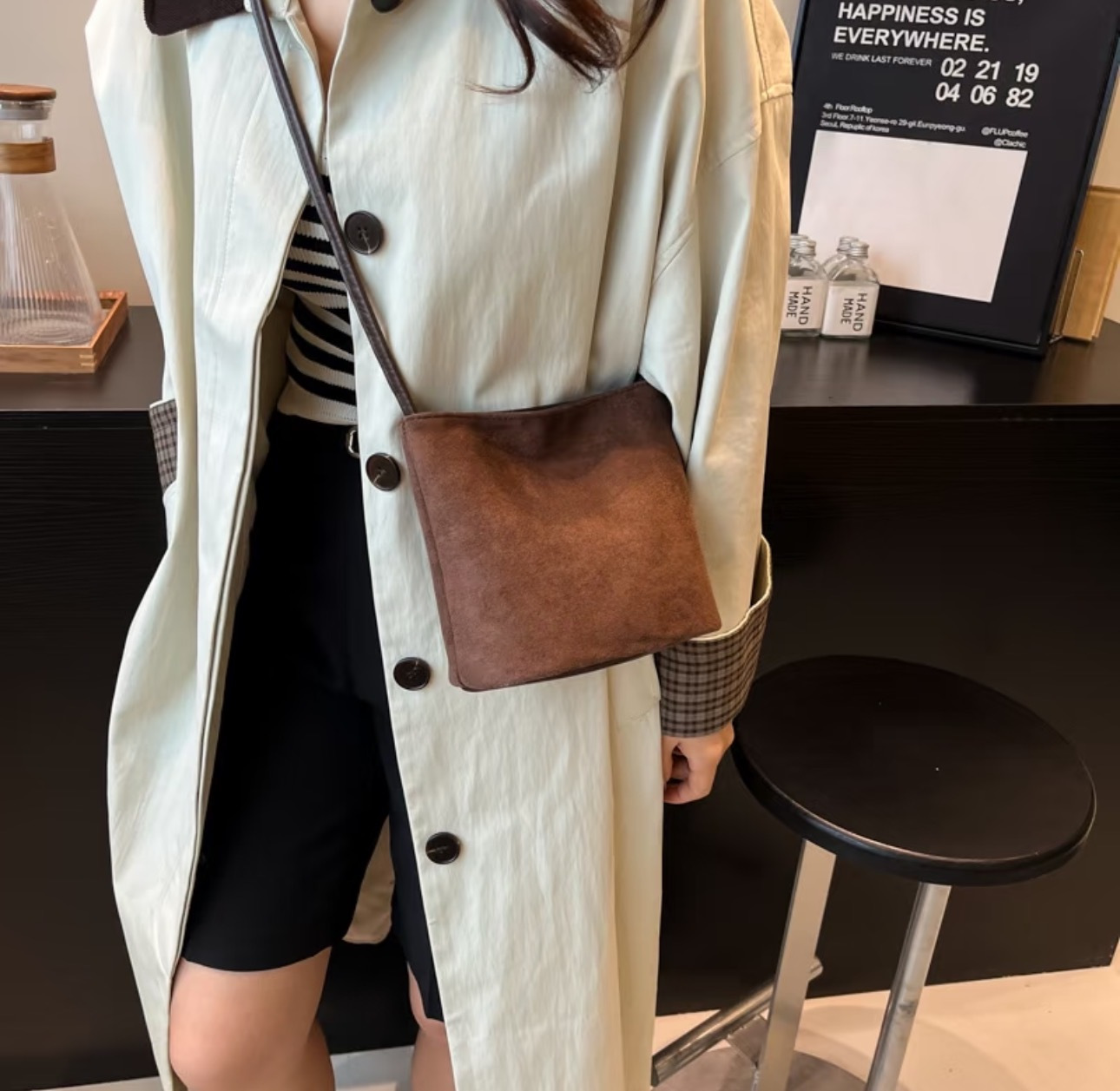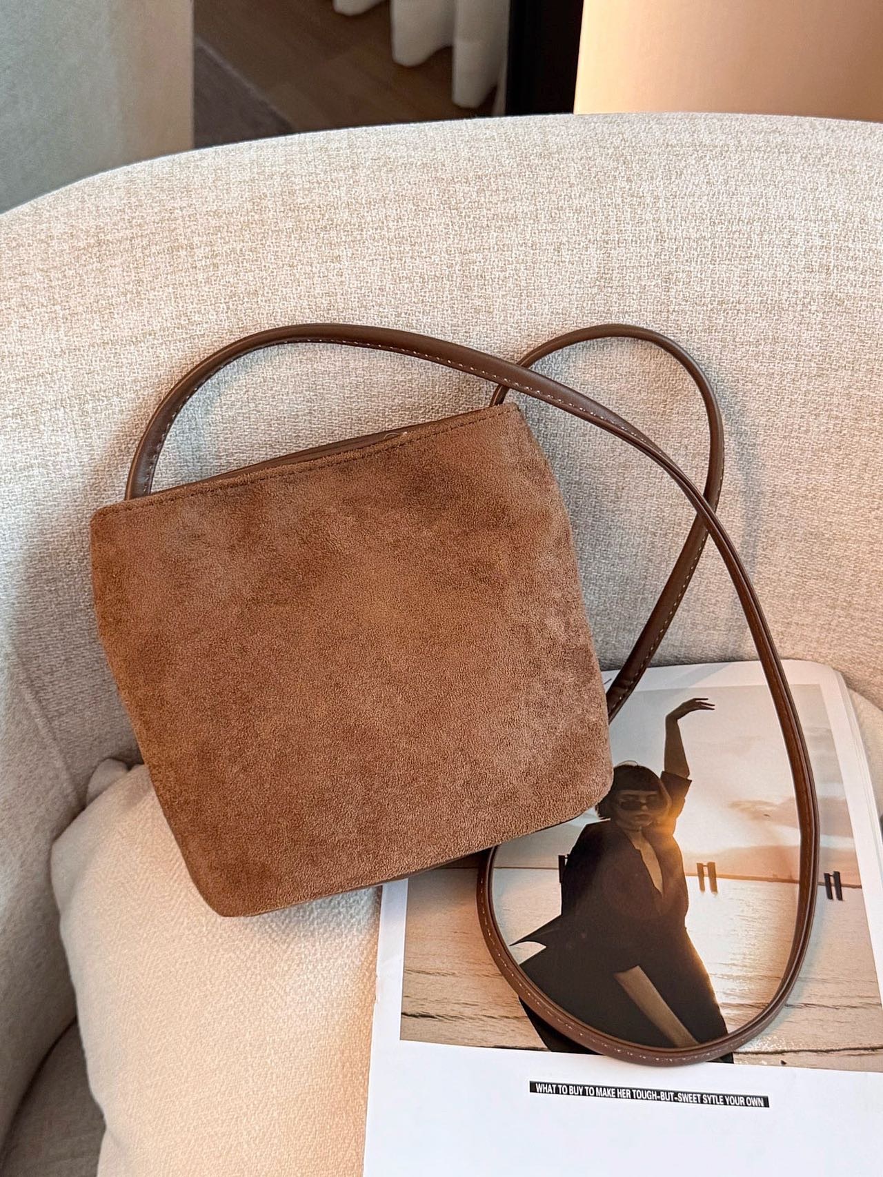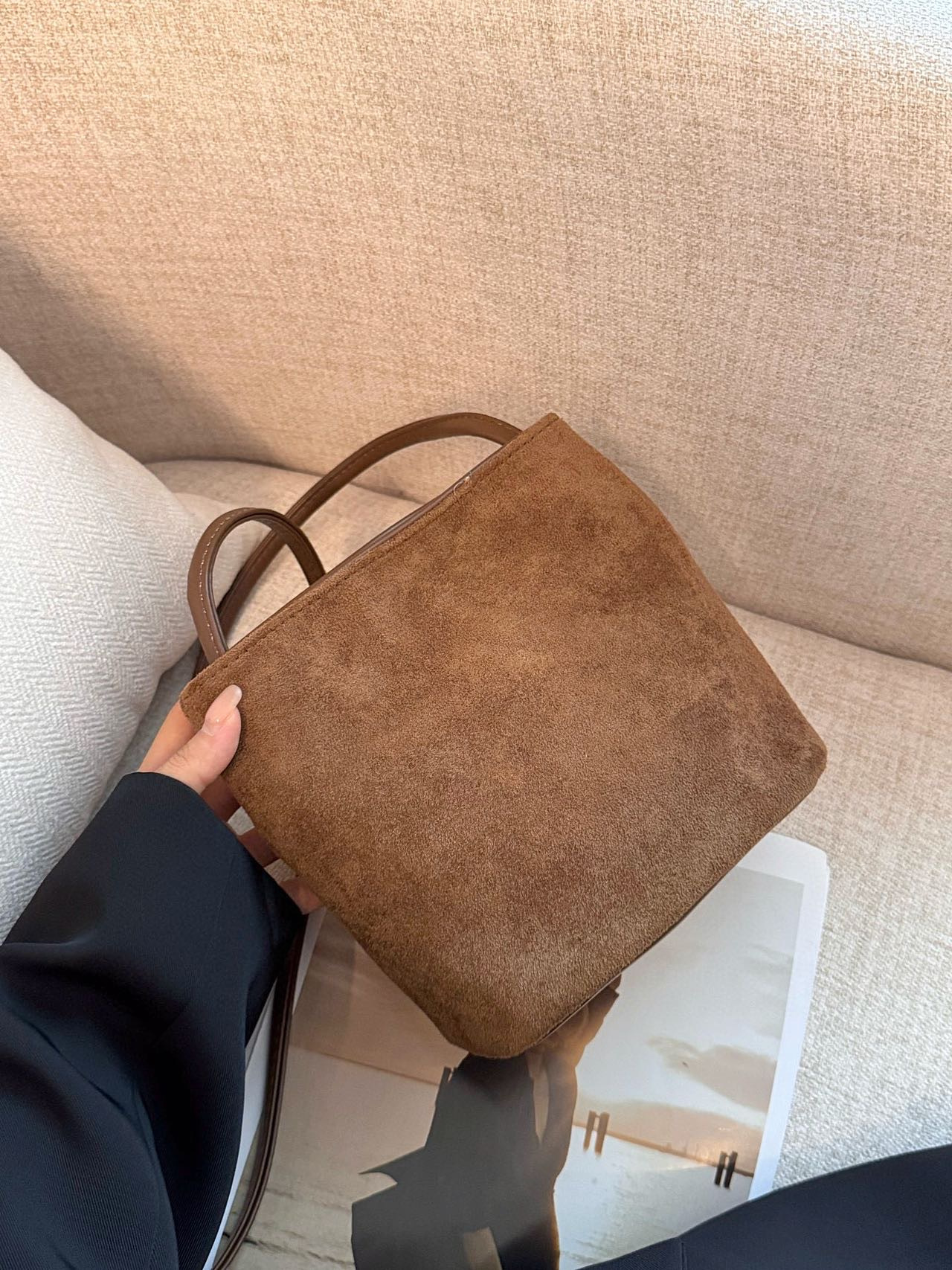 优选丨【捡漏福利款!】SOOKIE 复古麂皮绒水桶包 三色可选,复古经典,酷飒又时髦,出行百搭包;皮革+麂皮绒面料,品质感满满;磁吸扣设计,开合超方便;单肩斜挎都可以