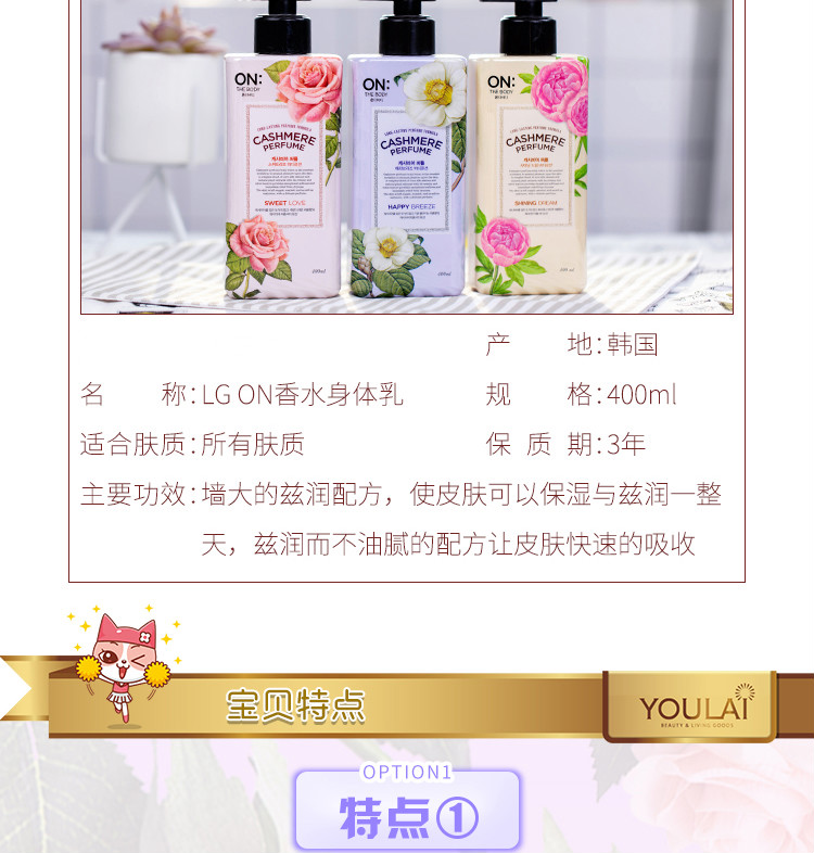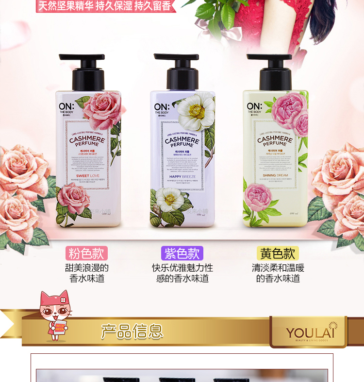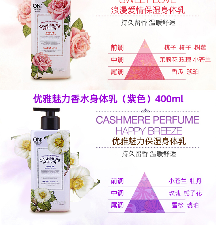ON THE BODY安宝笛韩国进口甜蜜爱恋香水润体乳花果香香氛身体乳400ml/瓶