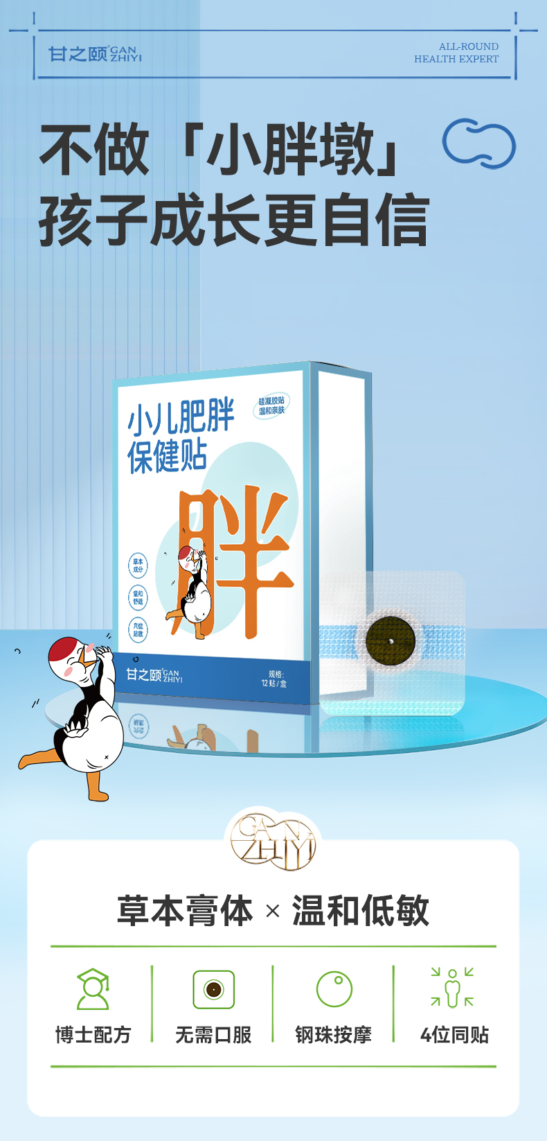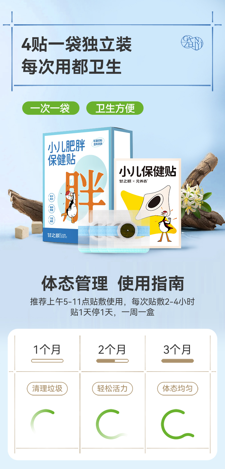 甘之颐 小儿肥胖贴 12贴(4贴/袋*3袋)/盒 儿童穴位贴生长贴草本原料非激素草本硅凝胶贴