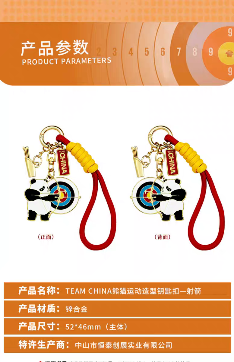 TEAM CHINA中国国家队官方旗舰店熊猫运动造型钥匙扣射箭