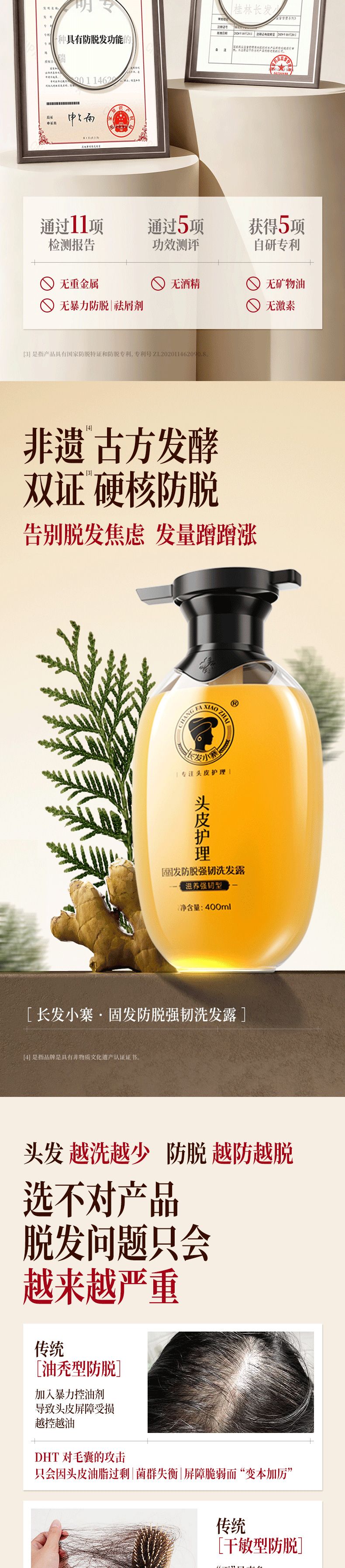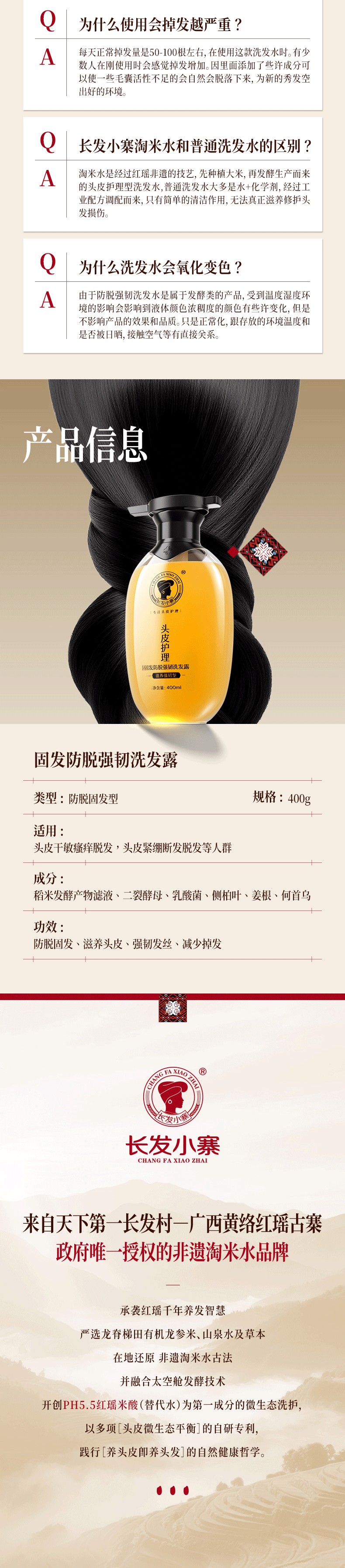 优选丨长发小寨淘米水防脱强韧控油去屑洗发水400ml蓬松生姜防掉发短发男女通用 【特证防脱】洗发水400g