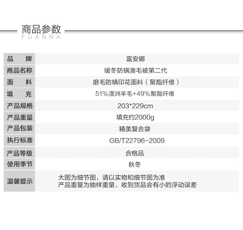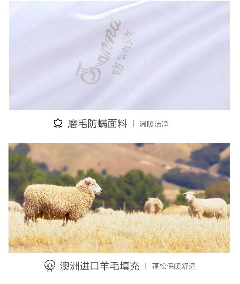富安娜(FUANNA)床上用品羊毛被芯暖冬澳毛被第二代\203*229cm\2000g