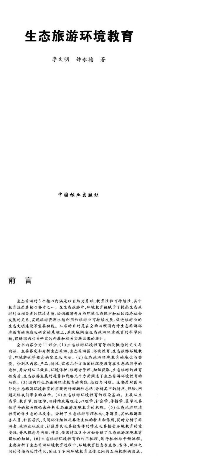 生态旅游环境教育 中国林业出版社