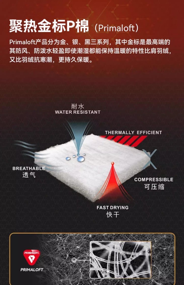 材料才是最为重要的,P棉(Primaloft棉)作为新的保暖材料