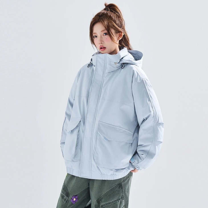 帽子做隐藏设计,天冷可以打开拉链就是帽子