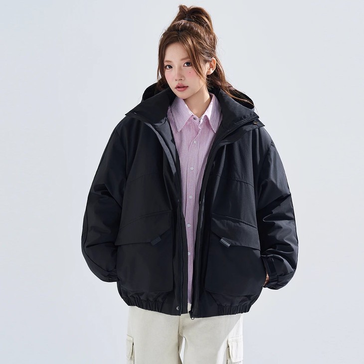 宝子们,黑色棉衣简直是冬天的绝佳选择
