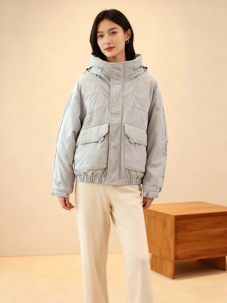 拥有灰白色棉衣,温暖又美丽地度过寒冬