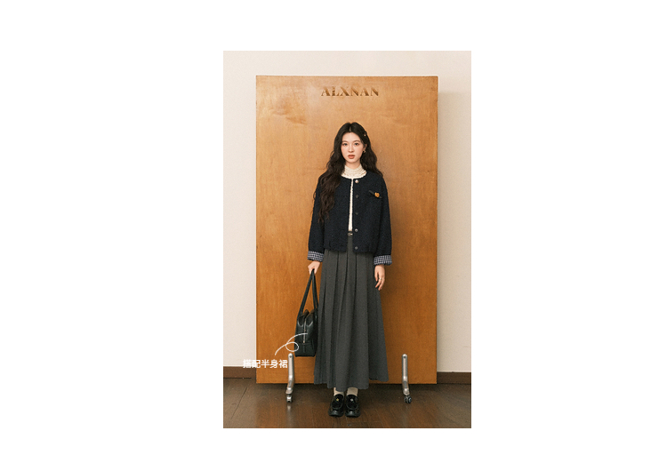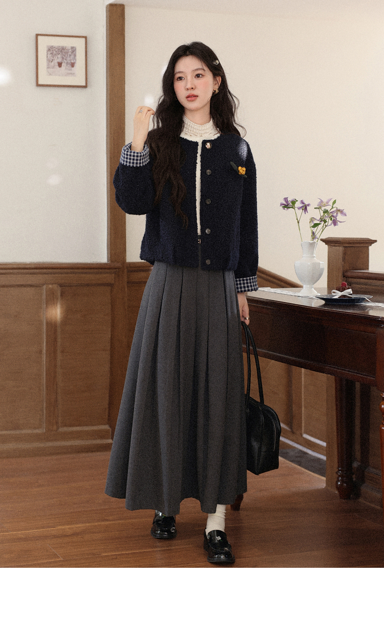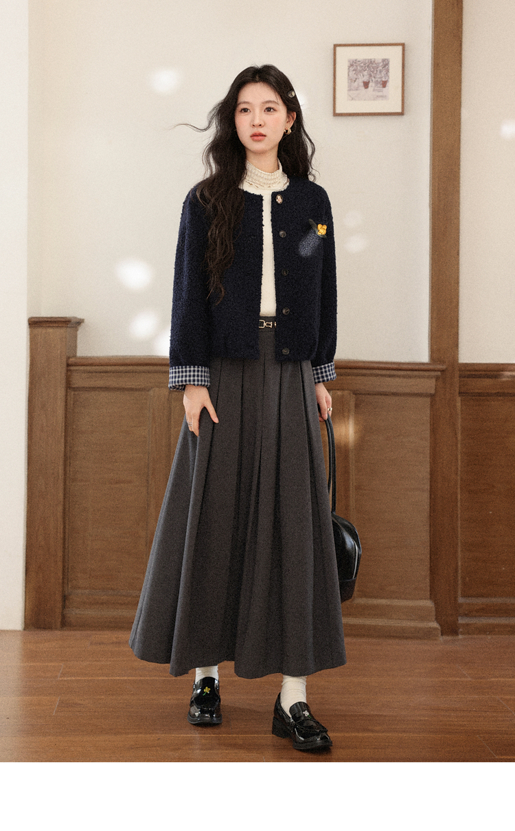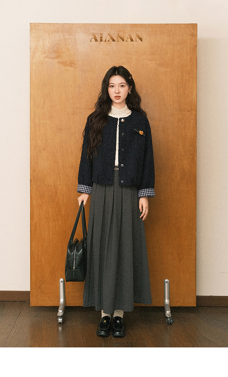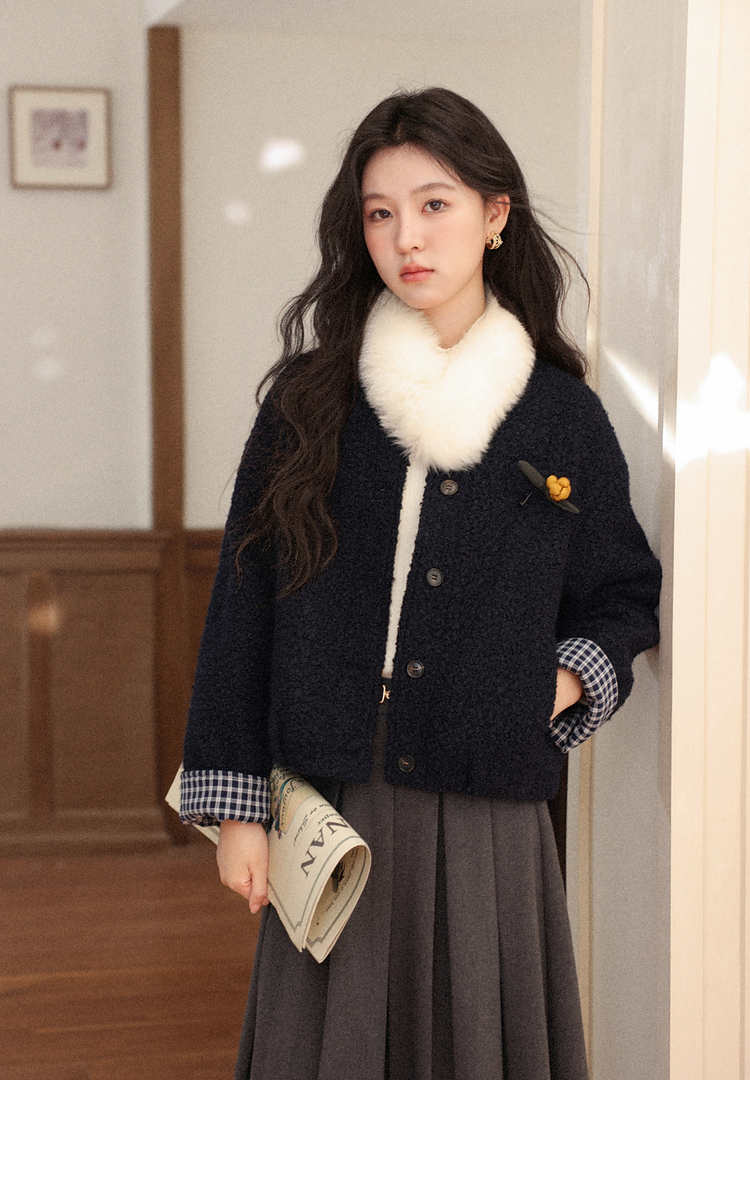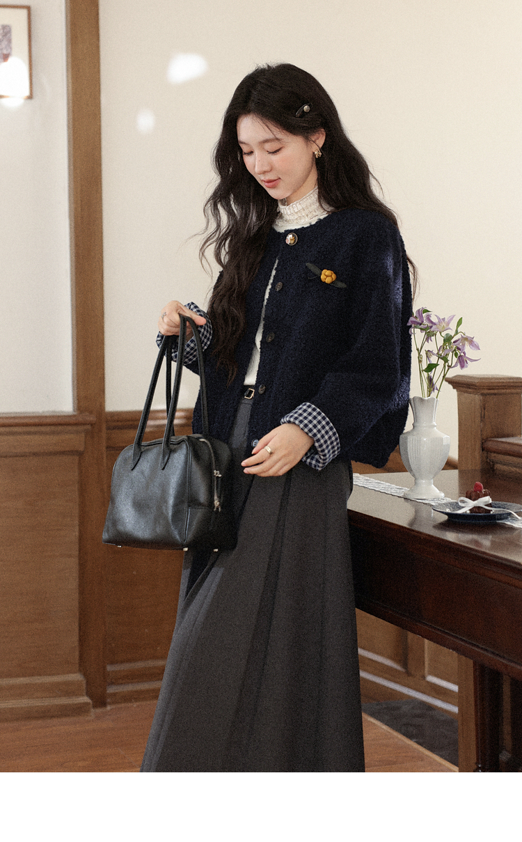 鹿向南「冬日恋岛」小个子藏蓝色短外套女秋冬高级小香风开衫上衣